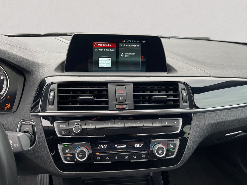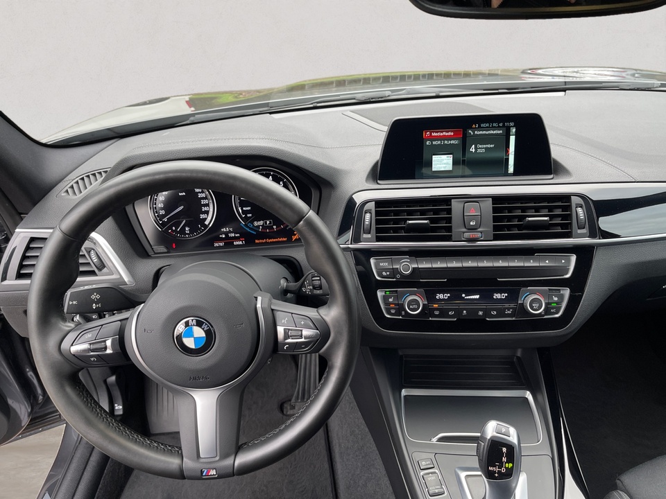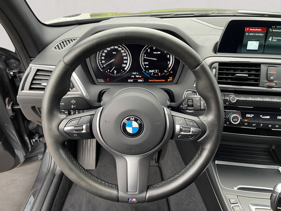 Business Package BMW Navigationssystem Business Edition Sport Line Shadow Metallic-Lackierung Klimaautomatik mit 2-Zonen-Regelung Innen- und Außenspiegelpaket Sitzheizung für Fahrer und Beifahrer Sonnenschutzverglasung HiFi Lautsprechersystem Lordosenstütze für Fahrer und Beifahrer Bereifung mit Notlaufeigenschaften BMW Individual Hochglanz Shadow Line BMW Individual Dachhimmel Anthrazit DAB-Tuner Durchladesystem Park Distance Control (PDC) vorn und hinten Innenspiegel, automatisch abblendend Instrumentenkombination mit erweiterten Umfängen M Lederlenkrad Spiegelkappen schwarz Modellschriftzug - Entfall am Heck Interieurleisten Schwarz hochglänzend mit Akzentleiste Perlglanz Chrom 17'' Leichtmetallräder Doppelspeiche 725 Orbitgrau, glanzgedreht mit NotlaufeigenschaftenSonderausstattung ab Werk Steptronic Getriebe Servotronic Radschraubensicherung Fußmatten in Velours Sportsitze für Fahrer und Beifahrer Ablagenpaket Geschwindigkeitsregelung mit Bremsfunktion Lichtpaket LED-Nebelscheinwerfer LED-Scheinwerfer Beifahrerairbag-DeaktivierungSerienaustattung Fünf Sitzplätze mit Sitzkonfiguration: 2+3 Sechs Lautsprecher 4 Scheibenbremsen (2 innenbelüftet) ABS Fernbedienbare Heckklappenfernentriegelung Geschwindigkeitsregelanlage Leseleuchten vorne und hinten Beleuchteter Make-up-Spiegel für Fahrer und Beifahrer Einparkhilfe hinten Radar Heckantrieb Sperrdifferential mit begrenztem Schlupf elektronisches und hinten Antriebs-Schlupf-Regelung Eins Turboaufladung Kraftstoffsystem mit direkter Benzineinspritzung Kraftstoff : bleifrei, 95 Oktan Tankinhalt 52 Liter Außentemperaturanzeige Bordcomputer mit Durchschnittsgeschwindigkeit, Durchschnittskraftstoffverbrauch, momentaner Kraftstoffverbrauch und Reichweite Tagfahrlicht Kopf-/Dach Airbag vorn und hinten Zentralverriegelung mit Schließung der elektr. Fenster Motorleistung nach EEC : Maximalleistung in KW: 135 , Maximalleistung in PS: 184 bei 5.000 U/min , Maximales Drehmoment in Nm: 270 bei 1.350 U/min Fahrer-Airbag intelligent, Beifahrer-Airbag mit Deaktivierung für Beifahrerairbag intelligent Seiten-Airbag vorne 2 höhenverstellbare Kopfstützen vorne und hinten Sicherheitsgurte vorn für Fahrer und Beifahrer , Gurtstraffer vorne Sicherheitsgurte hinten links, Sicherheitsgurte hinten rechts, Dreipunkt-Gurt hinten Mitte : Armlehne für Vordersitze Fahrersitz und Beifahrersitz Sportsitz mit einer elektr. Verstellmöglichkeit, mechanischer Lehnenneigungsverstellung, mechanischer Längsverstellung, mechanischer Höhenverstellung, mechanischer Sitzflächenneigungsverstellung und mechanischer Oberschenkelauflage Multifunktions-Alu & Lederlenkrad höhenverstellbar und längsverstellbar Unabhängige Ein-Gelenk-Federbeinachse mit Stabilisator und Schrauben-Federung vorne, Unabhängige Mehrlenkerachse mit Stabilisator und Schrauben-Federung hinten 8-Gang Automatikgetriebe mit manueller Gangwahl Automatik mit manuellem Modus Windschutzscheiben-Wisch-Wasch-Anlage mit Regensensor Elektrische Fensterheber mit Impulsschaltung für zwei Fenster vorn und hinten Gewichte: Zulässiges Gesamtgewicht (kg): 1.945, Leergewicht (kg): 1.455, Anhängelast gebremst (kg): 1.500 und Anhängelast ungebremst (kg): 670 Elektr. Bremskraftverteilung Isofix Telematik mit automatischem Notruf, mit SIM im Fahrzeug und Tracking System Partikelfilter Kraftstoffverbrauch ECE 99/100, 7,3 l/100 km Stadt, 5,1 l/100 km Überland, 5,9 l/100 km kombiniert und Euro 6d-temp Bluetooth inkl. Musik Streaming Start/Stop Multi-Funktions-Monitor mit 6,5 Zoll Bildschirm Armaturenbrett 1, Drehrad und Bildschirmgröße (cm): 16,5 Energie Rückgewinnung Motor Fahrereinstellungen Motorcharakteristik, Lenkung, Stabilitätskontrolle und Traktionskontrolle Fernbedienung Klimaanlage per Telefon Installierte Apps App-Steuerung Text - Sprache/Sprache - Text 6 Airbags Ambientelicht Media Control Drehrad Elektrisches System 12Weitere Ausstattung 12 Monate Gebrauchtwagengarantie inklusive!Irrtümer und Zwischenverkauf vorbehalten.(CRCO 09.12.2025 01.23)