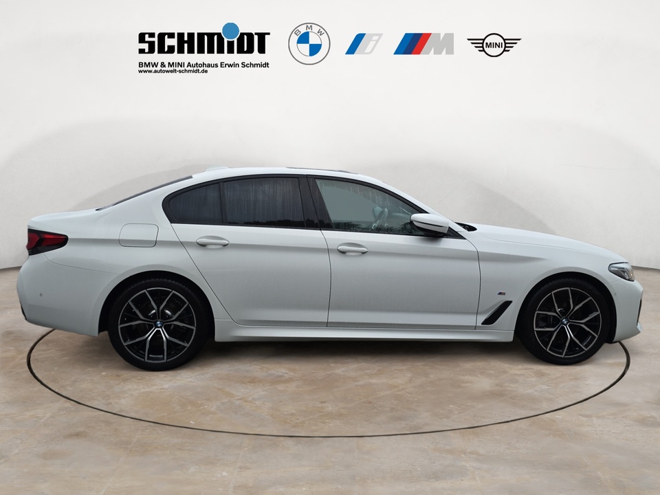 M Sportpaket Leder Dakota Business Paket Aktive Geschwindigkeitsregelung mit Stop&Go-Funktion (ACC) Glasdach Sitzverstellung, elektrisch, mit Memory für Fahrersitz Adaptives Fahrwerk Driving Assistant 19' M Leichtmetallräder Y-Speiche 845 M mit Mischbereifung Bicolor, jetblack, glanzgedreht Adaptiver LED-Scheinwerfer Sitzheizung vorn und hinten Parking Assistant Komfortzugang (Keyless Entry) Sportsitze für Fahrer und Beifahrer (nicht mit Leder Dakota Canberra beige LCCY) Klimaautomatik mit 4-Zonenregelung M Hochglanz Shadow Line HIFI Lautsprechersystem Sonnenschutzverglasung M Sportfahrwerk Erweitertes Außenspiegel Paket Sitzheizung für Fahrer und Beifahrer M Dachhimmel anthrazit BMW Display Key Ambientes Licht Active Protection - Sicherheitspaket zur Einleitung von Schutzmaßnahmen für die Insassen indrohenden Unfallsituationen Lenkradheizung M Lederlenkrad Fernlichtassistent Steptronic Getriebe mit Schaltwippen Reifenpannenset Raucherpaket M Interieurleisten Aluminium RauchgrauSonderausstattung ab Werk Radschraubensicherung Alarmanlage Fußmatten in Velours.anthrazit Durchladesystem BMW Connected Package Professional BMW Live Cockpit Professional WLAN Hotspot M AerodynamikpaketSerienaustattung Fünf Sitzplätze mit Sitzkonfiguration: 2+3 Sechs Lautsprecher Subwoofer 4 Scheibenbremsen (4 innenbelüftet) ABS Geschwindigkeitsregelanlage Beleuchteter Make-up-Spiegel für Fahrer und Beifahrer Einparkhilfe vorne, hinten Sensor Heckantrieb Antriebs-Schlupf-Regelung Turboaufladung Elektroantrieb-mit-Lithium-Ionen Batterie Reichweite: 0,00, Batteriespannung: 48,0, Batterie kWh: 0,50, Reichweite (Meilen): 0,00, eingeschlossene kW: 0 und Anzahl Monate Vertrag inklusive: 0 Kraftstoff : Diesel Tankinhalt 66 Liter Bordcomputer mit Durchschnittskraftstoffverbrauch Tagfahrlicht Kopf-/Dach Airbag vorn und hinten Zentralverriegelung Alarmanlage Motorleistung nach EEC : Maximalleistung in KW: 140 , Maximalleistung in PS: 190 bei 4.000 U/min , Maximales Drehmoment in Nm: 400 bei 1.750 U/min Maximalleistung Elektomotor in PS: 11 und Maximalleistung Elektomotor in kW: 8 Fahrer-Airbag, Beifahrer-Airbag mit Deaktivierung für Beifahrerairbag Seiten-Airbag vorne 2 höhenverstellbare Kopfstützen vorne, 3 höhenverstellbare Kopfstützen hinten Sicherheitsgurte vorn für Fahrer und Beifahrer Sicherheitsgurte hinten links, Sicherheitsgurte hinten rechts, Dreipunkt-Gurt hinten Mitte : Armlehne für Vordersitze Armlehne für Rücksitze Fahrersitz Einzelsitz mit drei elektr. Verstellmöglichkeiten, elektrischer Lehnenneigungsverstellung, mechanischer Längsverstellung, elektrischer Höhenverstellung und elektrischer Sitzflächenneigungsverstellung, Beifahrersitz Einzelsitz mit zwei elektr. Verstellmöglichkeiten, elektrischer Lehnenneigungsverstellung, mechanischer Längsverstellung und elektrischer Höhenverstellung Multifunktions-Lederlenkrad höhenverstellbar und längsverstellbar Unabhängige Doppel-Querlenkerachse mit Stabilisator und Schrauben-Federung vorne, Unabhängige Mehrlenkerachse mit Stabilisator und Schrauben-Federung hinten 8-Gang Automatikgetriebe mit manueller Gangwahl Automatik mit manuellem Modus Windschutzscheiben-Wisch-Wasch-Anlage mit Regensensor Elektrische Fensterheber mit Impulsschaltung für zwei Fenster vorn und hinten Gewichte: Zulässiges Gesamtgewicht (kg): 2.345, Leergewicht (kg): 1.750, Anhängelast gebremst (kg): 2.000 und Anhängelast ungebremst (kg): 750 Navigationssystem mit Bedienung über Touch Screen, Datenquelle: Internet 12,30 Zoll-Bildschirm, Verkehrsinformation und Verkehrsinfo Monate inklusive: 36 Sekundäre Motorleistung: Leistung max. in kW: 140, Leistung max. in PS: 190, Drehmoment max. in Nm: 400, 4.000 und 1.750 Isofix Sprachbedienung Alexa Telematik mit automatischem Notruf, mit SIM im Fahrzeug, Tracking System, Concierge Service, Concierge Service Monate inkl.: und Pannenhilfe Kraftstoffverbrauch ECE 99/100, 4,8 l/100 km Stadt, 3,7 l/100 km Überland, 4,1 l/100 km kombiniert und Euro 6d-ISC-FCM, Kraftstoffverbrauch WLTP HEV Charge Sustaining, 4,8 l/100 km kombiniert, 4,7, 5,6, 21,3, 17,9, 50 und 42 Lokale Sprache Deutsch, BMW, 5er-Reihe und 520d AWeitere Ausstattung SCHMIDT- Garantiepaket - 5 Jahre ab Erstzulassung! inkl. 24 Monate Euro Plus Garantie, ohne jegliche Selbstbeteiligung im Schadensfall!GarantieBMW Premium SelectionIrrtümer und Zwischenverkauf vorbehalten.(CRCO 25.11.2025 13.52)