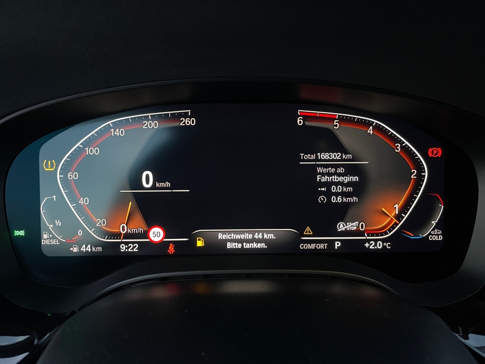 Innovationspaket Modellvariante Sport Line Driving Assistant Plus (inkl. Notbremsassistent) Komfortsitze vorn, elektrisch, mit Memory für Fahrer- und Beifahrersitz Entertainment Paket Winterfreude Paket Business Package BMW Live Cockpit ConnectedDrive Standheizung Adaptiver LED-Scheinwerfer Head-Up Display Aktive Geschwindigkeitsregelung mit Stop&Go-Funktion (ACC) Driving Assistant Harman Kardon Surround Sound System Komfortzugang (Keyless Entry) Aktive Sitzbelüftung vorn Parking Assistant Telefonie mit Wireless Charging BMW Individual Hochglanz Shadow Line Adaptives Kurvenlicht Sonnenschutzverglasung Erweitertes Außenspiegelpaket Sitzheizung für Fahrer und Beifahrer BMW Individual Dachhimmel anthrazit DAB-Tuner Klimaautomatik mit erweiterten Umfängen Ambientes Licht BMW Display Key Lenkradheizung Dachreling schwarz Steptronic Sport Getriebe mit Schaltwippen Interieurleisten schwarz hochglänzend Fernlichtassistent Reifenpannenset Modellschriftzug Entfall auf Heckklappe rechts 18' Leichtmetallräder Doppelspeiche 634Sonderausstattung ab Werk Alarmanlage Radschraubensicherung Fußmatten in Velours Sport-Lederlenkrad LED Nebelscheinwerfer BMW Connected Package Professional WLAN Hotspot BMW Live Cockpit ProfessionalSerienaustattung Fünf Sitzplätze mit Sitzkonfiguration: 2+3 Sechs Lautsprecher und Subwoofer 4 Scheibenbremsen (4 innenbelüftet) ABS Fernbedienbare Heckklappenfernentriegelung Elektrische Heckklappen-Zuziehhilfe Geschwindigkeitsregelanlage Leseleuchten vorne Beleuchteter Make-up-Spiegel für Fahrer und Beifahrer Einparkhilfe vorne, hinten Radar Heckantrieb Antriebs-Schlupf-Regelung Turboaufladung Kraftstoffsystem mit Common Rail Kraftstoff : Diesel Tankinhalt 66 Liter Außentemperaturanzeige Bordcomputer mit Durchschnittsgeschwindigkeit, Durchschnittskraftstoffverbrauch, momentaner Kraftstoffverbrauch und Reichweite Tagfahrlicht Kopf-/Dach Airbag vorn und hinten Zentralverriegelung mit Schließung der elektr. Fenster Alarmanlage mit Innenraumüberwachung Motorleistung nach EEC : Maximalleistung in KW: 195 , Maximalleistung in PS: 265 bei 4.000 U/min , Maximales Drehmoment in Nm: 620 bei 2.000 U/min Fahrer-Airbag intelligent, Beifahrer-Airbag mit Deaktivierung für Beifahrerairbag intelligent Seiten-Airbag vorne 2 höhenverstellbare Kopfstützen vorne, 3 höhenverstellbare Kopfstützen hinten Sicherheitsgurte vorn für Fahrer und Beifahrer , Gurtstraffer vorne Sicherheitsgurte hinten links, Sicherheitsgurte hinten rechts, Dreipunkt-Gurt hinten Mitte : Armlehne für Vordersitze Armlehne für Rücksitze Fahrersitz Einzelsitz mit drei elektr. Verstellmöglichkeiten, elektrischer Lehnenneigungsverstellung, mechanischer Längsverstellung, elektrischer Höhenverstellung und elektrischer Sitzflächenneigungsverstellung, Beifahrersitz Einzelsitz mit zwei elektr. Verstellmöglichkeiten, elektrischer Lehnenneigungsverstellung, mechanischer Längsverstellung und elektrischer Höhenverstellung Multifunktions-Lederlenkrad höhenverstellbar und längsverstellbar Unabhängige Doppel-Querlenkerachse mit Stabilisator und Schrauben-Federung vorne, Unabhängige Mehrlenkerachse mit Stabilisator und Luft-Federung hinten Niveauregulierung hintene 8-Gang Automatikgetriebe mit manueller Schalthebelbetätigung Automatik mit manuellem Modus Windschutzscheiben-Wisch-Wasch-Anlage mit Regensensor Elektrische Fensterheber mit Impulsschaltung für zwei Fenster vorn und hinten Gewichte: Zulässiges Gesamtgewicht (kg): 2.480, Leergewicht (kg): 1.835, Anhängelast gebremst (kg): 2.000 und Anhängelast ungebremst (kg): 750 Navigationssystem mit Bedienung über Touch Screen, Datenquelle: Internet (Farbe), 8,8 Zoll-Bildschirm, Verkehrsinformation und 22,4 Elektr. Bremskraftverteilung Isofix Sprachbedienung für Radio, für Telefon und für Navigationssystem Telematik mit automatischem Notruf, mit SIM im Fahrzeug, Tracking System und Concierge Service Partikelfilter Kraftstoffverbrauch ECE 99/100, 6,2 l/100 km Stadt, 4,7 l/100 km Überland, 5,2 l/100 km kombiniert und Euro 6d-TEMP, Kraftstoffverbrauch WLTP ICE und 6,1 l/100 km kombiniert Knie-Airbags Fahrer Crash Warnsystem aktiviert Bremslicht, Müdigkeitswarnung, automatisches Bremsen, Bremst bei niedriger Geschwindigkeit Mindestgeschw. Zur Aktivierung: 10 km/h Fußgängerschutz, visuelle/akustische Warnung Bluetooth inkl. Telefonbedienung und inkl. Musik Streaming Start/StopWeitere Ausstattung 12 Monate Gebrauchtwagengarantie inklusive!Irrtümer und Zwischenverkauf vorbehalten.(CRCO 06.01.2026 19.15)