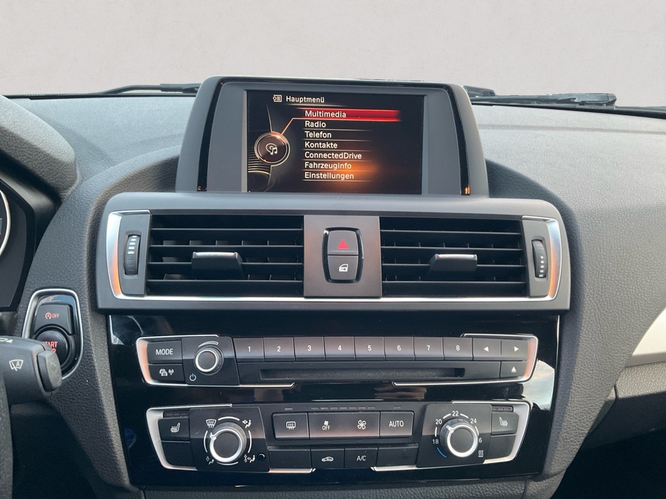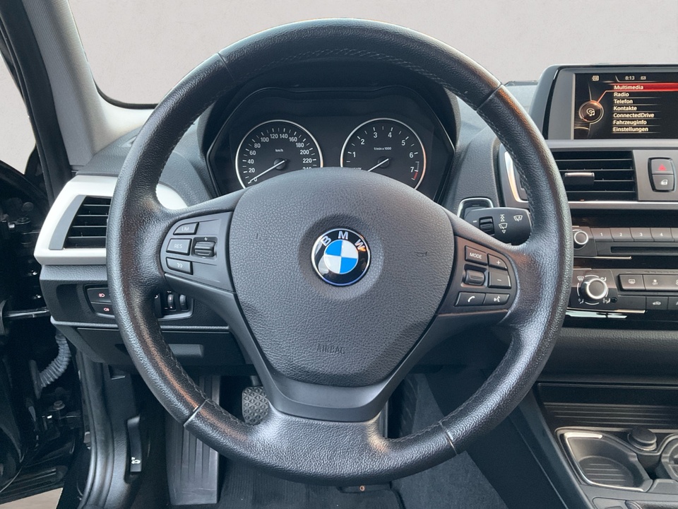 16'' Leichtmetallräder V-Speiche 378 Sitzheizung für Fahrer und BeifahrerSonderausstattung ab Werk Multifunktion für Lenkrad Fußmatten in Velours Ablagenpaket Armauflage vorn verschiebbar Interieurleisten Satinsilber matt Park Distance Control (PDC) hinten Nebelscheinwerfer Regensensor Geschwindigkeitsregelung mit Bremsfunktion Beifahrerairbag-Deaktivierung Radio BMW Professional Intelligenter Notruf inkl. TeleServices Freisprecheinrichtung mit USB-SchnittstelleSerienaustattung Fünf Sitzplätze mit Sitzkonfiguration: 2+3 Sechs Lautsprecher Antenne 4 Scheibenbremsen (2 innenbelüftet) ABS Fernbedienbare Heckklappenfernentriegelung Geschwindigkeitsregelanlage Make-up-Spiegel für Fahrer und Beifahrer Einparkhilfe hinten Radar Heckantrieb Antriebs-Schlupf-Regelung Turboaufladung Kraftstoffsystem mit direkter Benzineinspritzung Kraftstoff : bleifrei, 95 Oktan Tankinhalt 52 Liter Außentemperaturanzeige Bordcomputer mit Durchschnittsgeschwindigkeit, Durchschnittskraftstoffverbrauch, momentaner Kraftstoffverbrauch und Reichweite Tagfahrlicht Kopf-/Dach Airbag vorn und hinten Zentralverriegelung (mit Fernbedienung) mit Schließung der elektr. Fenster Motorleistung nach EEC : Maximalleistung in KW: 80 , Maximalleistung in PS: 109 bei 4.500 U/min , Maximales Drehmoment in Nm: 180 bei 1.250 U/min Fahrer-Airbag intelligent, Beifahrer-Airbag mit Deaktivierung für Beifahrerairbag intelligent Seiten-Airbag vorne 2 höhenverstellbare Kopfstützen vorne, 3 höhenverstellbare Kopfstützen hinten Sicherheitsgurte vorn für Fahrer und Beifahrer , Gurtstraffer vorne Sicherheitsgurte hinten links, Sicherheitsgurte hinten rechts, Dreipunkt-Gurt hinten Mitte : Armlehne für Vordersitze Fahrersitz und Beifahrersitz Einzelsitz mit mechanischer Lehnenneigungsverstellung, mechanischer Längsverstellung und mechanischer Höhenverstellung Multifunktions-Lederlenkrad höhenverstellbar und längsverstellbar Unabhängige Ein-Gelenk-Federbeinachse mit Stabilisator und Schrauben-Federung vorne, Unabhängige Mehrlenkerachse mit Stabilisator und Schrauben-Federung hinten 6-Gang Schaltgetriebe manuell Windschutzscheiben-Wisch-Wasch-Anlage mit Regensensor Elektrische Fensterheber mit Impulsschaltung für zwei Fenster vorn und hinten Gewichte: Zulässiges Gesamtgewicht (kg): 1.870, Leergewicht (kg): 1.380, Anhängelast gebremst (kg): 1.200 und Anhängelast ungebremst (kg): 650 Elektr. Bremskraftverteilung Isofix Telematik mit automatischem Notruf und mit SIM im Fahrzeug Kraftstoffverbrauch ECE 99/100, 6,7 l/100 km Stadt, 4,5 l/100 km Überland und 5,3 l/100 km kombiniert Autom. Warnblinker bei starker Bremsung Bluetooth inkl. Telefonbedienung und inkl. Musik Streaming Start/Stop Multi-Funktions-Monitor mit 6,5 Zoll Bildschirm Energie Rückgewinnung Fahrereinstellungen Motorcharakteristik und Lenkung 6 AirbagsWeitere Ausstattung kein Verkauf an privat in EU, NO SALE TO PRIVAT PEOPLE IN THE EUROPEAN UNIONIrrtümer und Zwischenverkauf vorbehalten.(CRCO 16.11.2025 02.05)