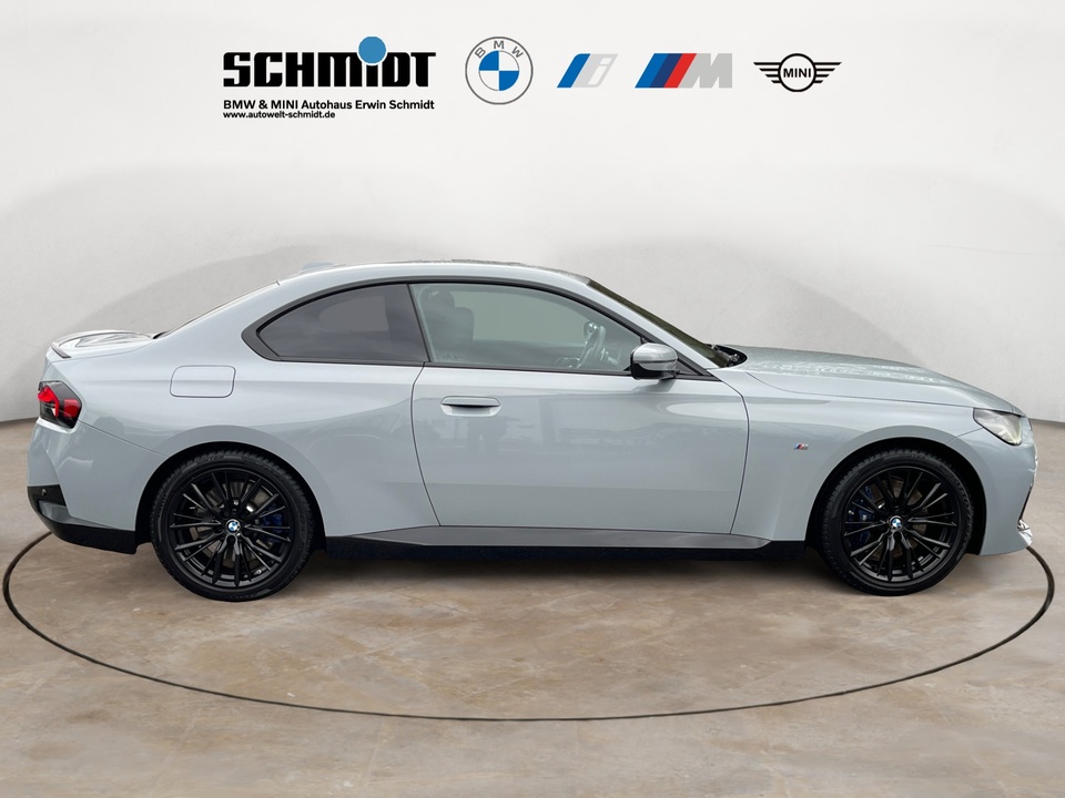 M Sport Paket M Sportpaket Pro BMW Live Cockpit Professional 19' M Leichtmetallräder Doppelspeiche 797 M Bicolor mit Mischbereifung Harman Kardon Surround Sound System Metallic-Lackierung Adaptiver LED-Scheinwerfer M Sportbremse, dunkelblau metallic M Sportfahrwerk Sitzheizung für Fahrer und Beifahrer Sonnenschutzverglasung Ambientes Licht Innen- und Außenspiegelpaket M Shadow Line mit erweiterten Umfängen M Dachhimmel Anthrazit M Heckspoiler M Akzentflächen, illuminiert Ablage für Wireless Charging Fernlichtassistent Interieurleisten Schwarz hochglänzend Lehnenbreitenverstellung für Fahrer BMW M 50 Jahre EmblemSonderausstattung ab Werk Radschraubensicherung Steptronic Sport Getriebe Variable Sportlenkung Modellschriftzug - Entfall am Heck M Leuchten Shadow Line Innenspiegel automatisch abblendend Ablagenpaket M Sicherheitsgurte Park Distance Control (PDC) vorne und hinten Klimaautomatik mit 2-Zonen-Regelung Geschwindigkeitsregelung mit Bremsfunktion BMW Connected Package Professional M Lederlenkrad M Aerodynamikpaket M Hochglanz Shadow LineSerienaustattung Vier Sitzplätze mit Sitzkonfiguration: 2+2 Sechs Lautsprecher und Subwoofer 4 Scheibenbremsen (4 innenbelüftet) ABS Fernbedienbare Heckklappenfernentriegelung Geschwindigkeitsregelanlage Make-up-Spiegel für Fahrer und Beifahrer Einparkhilfe vorne, hinten Sensor Heckantrieb Sperrdifferential mit begrenztem Schlupf elektronisches und hinten Antriebs-Schlupf-Regelung Turboaufladung Kraftstoffsystem mit direkter Benzineinspritzung Kraftstoff : bleifrei, 95 Oktan Tankinhalt 52 Liter Bordcomputer mit Durchschnittskraftstoffverbrauch Tagfahrlicht Kopf-/Dach Airbag vorn und hinten Zentralverriegelung (mit Fernbedienung) mit Schließung der elektr. Fenster Motorleistung nach EEC : Maximalleistung in KW: 180 , Maximalleistung in PS: 245 bei 4.500 U/min , Maximales Drehmoment in Nm: 400 bei 1.600 U/min Fahrer-Airbag intelligent, Beifahrer-Airbag mit Deaktivierung für Beifahrerairbag intelligent Seiten-Airbag vorne 2 höhenverstellbare Kopfstützen vorne und hinten Sicherheitsgurte vorn für Fahrer und Beifahrer , Gurtstraffer vorne Sicherheitsgurte hinten links und rechts Armlehne für Vordersitze Fahrersitz und Beifahrersitz Sportsitz mit mechanischer Lehnenneigungsverstellung, mechanischer Längsverstellung und mechanischer Höhenverstellung Multifunktions-Alu & Lederlenkrad höhenverstellbar und längsverstellbar Unabhängige Ein-Gelenk-Federbeinachse mit Stabilisator und Schrauben-Federung vorne, Unabhängige Mehrlenkerachse mit Stabilisator und Schrauben-Federung hinten 8-Gang Automatikgetriebe mit manueller Gangwahl und Schalthebel am Lenkrad Automatik mit manuellem Modus und Schaltwippen Windschutzscheiben-Wisch-Wasch-Anlage mit Regensensor Elektrische Fensterheber mit Impulsschaltung für zwei Fenster vorn und hinten Gewichte: Zulässiges Gesamtgewicht (kg): 2.000, Leergewicht (kg): 1.600, Anhängelast gebremst (kg): 1.600 und Anhängelast ungebremst (kg): 750 Navigationssystem mit Bedienung über Touch Screen, Datenquelle: Internet (Farbe), 14,90 Zoll-Bildschirm, Verkehrsinformation und Verkehrsinfo Monate inklusive: 24 Isofix Sprachbedienung andere Telematik mit automatischem Notruf, mit SIM im Fahrzeug, Tracking System, Concierge Service Monate inkl.: und Pannenhilfe Partikelfilter Kraftstoffverbrauch WLTP ICE, 6,6 l/100 km kombiniert, 6,5, 7,2, 15,4, 13,9, 36 und 33 Crash Warnsystem aktiviert Bremslicht, Müdigkeitswarnung, automatische Notbremsung, Bremst bei niedriger Geschwindigkeit, Fußgängerschutz, visuelle/akustische Warnung, Funktion über 130 km/h 78 mph, Funktion über 50 km/h 30 mph und Funktion unter 50 km/h 30 mph Bluetooth Start/Stop Spurassistent 210 und 130 Multi-Funktions-Monitor mit 12,30 Zoll Bildschirm Instrumente 1 und Bildschirmgröße (cm): 31,2, Multi-Funktions-Monitor mit 14,90 Zoll Bildschirm und Touch-Bedienung Armaturenbrett 1 und Bildschirmgröße (cm): 37,8 Energie Rückgewinnung Motor Verkehrszeichenerkennung Interner Speicher/Festplatte Fahrereinstellungen Motorcharakteristik, Stabilitätskontrolle und Traktionskontrolle Fernbedienung Klimaanlage per Telefon, Zeitvorwahl, mit Heizen und mit Kühlen Installierte Apps App-Steuerung Text - Sprache/Sprache - Text 6 Airbags Mobiltelefonintegration Apple CarPlay, Android Auto, Apple Monate inklusive: 999, Android Monate inklusive: 999, Andere Monate inklusive: 0, MirrorLink Monate inklusive: 0, Apple drahtlos und Android drahtlosWeitere Ausstattung inkl. 24 Monate BMW Premium Selection Garantie, ohne jegliche Selbstbeteiligung im Schadensfall!GarantieBMW Premium SelectionIrrtümer und Zwischenverkauf vorbehalten.(CRCO 23.01.2026 12.26)