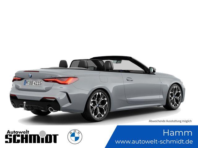 M Sportpaket Innovationspaket 19'' BMW Individual Leichtmetallräder Y-Speiche 1038 Bicolor mit Mischbereifung und Notlaufeigenschaften Driving Assistant Professional Anhängerkupplung Adaptives M Fahrwerk inkl. Variabler Sportlenkung Comfort Paket Nackenwärmer Instrumententafel Luxury Interieurleisten Edelholz Esche graublau, offenporig HiFi Lautsprechersystem Lenkradheizung Lehnenbreitenverstellung für Fahrer Bereifung mit Notlaufeigenschaften Aktive Geschwindigkeitsregelung mit Stop&Go-Funktion (ACC) Verdeck anthrazit SilbereffektSonderausstattung ab Werk Sitzheizung für Fahrer und Beifahrer Ablagenpaket Lordosenstütze für Fahrer und Beifahrer BMW Live Cockpit Professional Innen- und Außenspiegelpaket Ambientes Licht M Lederlenkrad M Hochglanz Shadow Line Parking Assistant Plus Wireless Charging Ablage Innenspiegel.automatisch abblendend Steptronic Sport Getriebe Variable Sportlenkung Komfortzugang Klimaautomatik Alarmanlage Vorbereitung Fahrerassistenz ISerienaustattung Elektr. Sitz-Memory für Außenspiegel Geschwindigkeitsregelanlage Einparkhilfe vorne Sensor, Einparkhilfe hinten Sensor & Kamera, Einparkhilfe seitlich Sensor Tagfahrlicht Kopf-/Dach Airbag vorn und hinten Elektrisch Softtopes mit Heckfenster aus Glas Fahrer-Airbag, Beifahrer-Airbag mit Deaktivierung für Beifahrerairbag Seiten-Airbag vorne Fahrersitz Sportsitz mit vier elektr. Verstellmöglichkeiten, Sitzheizung, Lehnenneigungsverstellung mit Memory, Längsverstellung mit Memory, Längsverstellung mit Memory, Sitzflächenneigungsverstellung mit Memory und mechanischer Oberschenkelauflage, Beifahrersitz Sportsitz mit drei elektr. Verstellmöglichkeiten, Sitzheizung, elektrischer Lehnenneigungsverstellung, elektrischer Längsverstellung, elektrischer Höhenverstellung und mechanischer Oberschenkelauflage Navigationssystem mit Bedienung über Touch Screen, Datenquelle: Internet 14,90 Zoll-Bildschirm, Verkehrsinformation und Verkehrsinfo Monate inklusive: 24 Windschott hinter Sitzen Vorbereitung Featrues on demand Sprachbedienung herstellereigen und KI unterstützt Telematik mit automatischem Notruf, mit SIM im Fahrzeug, Tracking System, Concierge Service Monate inkl.: und Pannenhilfe Knie-Airbags Fahrer Lokale Sprache Deutsch, BMW, 4er-Reihe, 420i Cabrio A und 420i Cabrio A Crash Warnsystem aktiviert Bremslicht, automatische Notbremsung, Front und Heck Mindestgeschw. Zur Aktivierung: 10 km/h Fußgängerschutz, visuelle/akustische Warnung, Funktion über 130 km/h 78 mph, Funktion über 50 km/h 30 mph, Funktion unter 50 km/h 30 mph und Überwachung Fahrstil Bluetooth Start/Stop Spurassistent aktiviert Lenkung Einparkassistent hinten, vollautomatisches Ein- und Ausparken 90° und autom. Bremsen während Parkvorgang Display mit 12,30 Zoll Bildschirm Kombiinstrument 1 und Bildschirmgröße (cm):, Display mit 14,90 Zoll Bildschirm und Touch-Bedienung Armaturenbrett 1, Bildschirmgröße (cm):, fix, Drehknopf, Touchpadsteuerung, nein und Energie Rückgewinnung Parkplatzinformation Verkehrszeichenerkennung Interner Speicher/Festplatte Fahrereinstellungen Motorcharakteristik Wifi Netzwerk Anzahl Monate Vertrag inkl.: 999 und Verbindungsart: SIM-Karte erforderlich Fernbedienung Klimaanlage per Telefon, mit Zeitschaltuhr, mit Heizen und mit Kühlen Installierte Apps App-Steuerung 7 Airbags Mobiltelefonintegration Apple CarPlay, Android Auto, Apple Monate inklusive: 999, Android Monate inklusive: 999, MirrorLink Monate inklusive: 0, Apple drahtlos und Android drahtlos Ambientelicht einhüllend, Farbauswahl und reaktives Licht WLTP Emissionen ICE, kombiniert: 152,0, kombiniert Fzg niedrig: 152,0 und kombiniert Fzg hoch: 169,0 Elektrisches System 12 Remote Services Fensterbruchwarnung, Fahrzeug finden, Ton/Blinken, 999 Monate inklusive, Zielübertragung, Position teilen, Fahrzeugdiagnose und Fahrhistorie & Analyse Over air updates OTA updates Alkoholsperre Unfalldatenschreiber Notruf Launch Control Optik Schwarz um Seitenfenster USB Ladeanschluss vorne Türschwellerschutz Aluminium Mehrere BenutzerprofileBemerkungM Sportpaket, Innovationspaket, 19'' BMW Individual Leichtmetallräder Y-Speiche 1038 Bicolor mit Mischbereifung und Notlaufeigenschaften, Driving Assistant Professional, Anhängerkupplung, Adaptives M Fahrwerk inkl. Variabler Sportlenkung, Comfort Paket, Aktive Geschwindigkeitsregelung mit Stop&Go-Funktion (ACC), Nackenwärmer, Instrumententafel Luxury, Interieurleisten Edelholz Esche graublau,offenporig, HiFi Lautsprechersystem, Verdeck anthrazit Silbereffekt, Lenkradheizung, Lehnenbreitenverstellung für Fahrer, Bereifung mit NotlaufeigenschaftenIrrtümer und Zwischenverkauf vorbehalten.(CRCO 24.04.2026 10.52)
