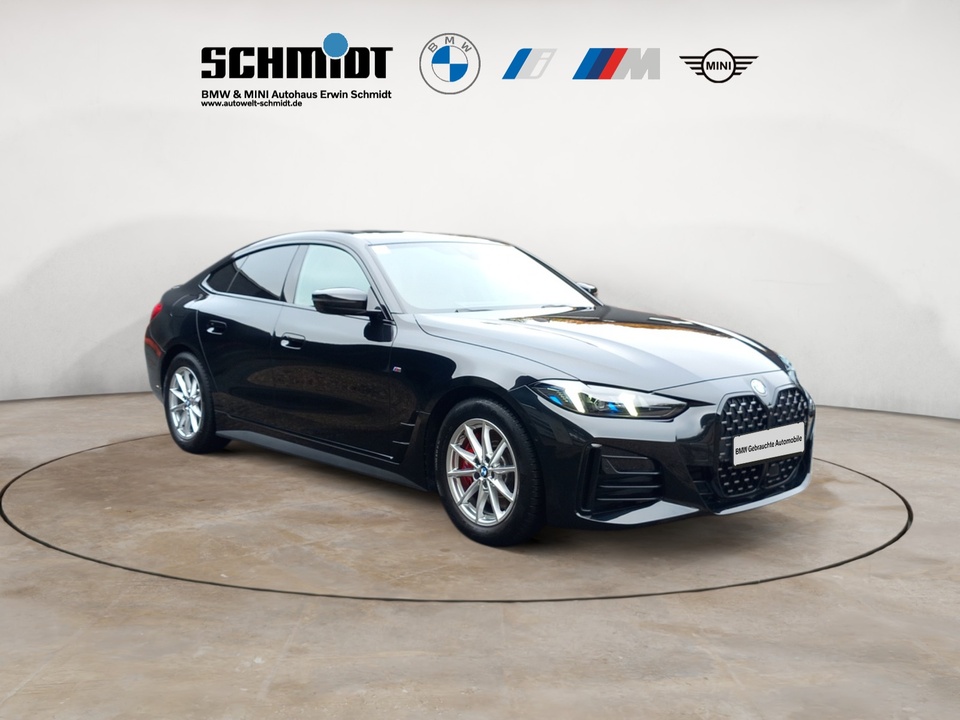 M Sportpaket Innovationspaket M Sportpaket Pro Adaptiver LED-Scheinwerfer Leder Vernasca mit Dekorsteppung Sitzverstellung elektrisch, mit Memory Glasdach, elektrisch Comfort Paket Metallic-Lackierung Driving Assistant Aktive Geschwindigkeitsregelung mit Stop&Go-Funktion (ACC) Sonnenschutzverglasung HiFi Lautsprechersystem M Interieurleisten Aluminium Rhombicle Antrazit Lordosenstütze für Fahrer und Beifahrer Lehnenbreitenverstellung für Fahrer FernlichtassistentSonderausstattung ab Werk Steptronic Sport Getriebe Reifenpannenset Variable Sportlenkung Alarmanlage Komfortzugang M Sportbremse rot.hochglänzend M Leuchten Shadow Line Innen- und Außenspiegelpaket Innenspiegel.automatisch abblendend Ablagenpaket M Sicherheitsgurte Ambientes Licht Klimaautomatik mit 2-Zonen-Regelung Parking Assistant Plus Wireless Charging Ablage BMW Live Cockpit Professional M Sportfahrwerk M Lederlenkrad M Heckspoiler M Hochglanz Shadow Line M Dachhimmel anthrazit BMW Individual Hochglanz Shadow Line mit erweiterten UmfängenSerienaustattung Fünf Sitzplätze mit Sitzkonfiguration: 2+3 Sechs Lautsprecher Subwoofer 4 Scheibenbremsen (4 innenbelüftet) ABS Elektrische Heckklappen-Zuziehhilfe Elektr. Sitz-Memory für Außenspiegel Geschwindigkeitsregelanlage Beleuchteter Make-up-Spiegel für Fahrer und Beifahrer Einparkhilfe vorne Sensor, Einparkhilfe hinten Sensor & Kamera, Einparkhilfe seitlich Sensor Permanenter Vierradantrieb Sperrdifferential mit begrenztem Schlupf elektronisches, vorne und hinten Antriebs-Schlupf-Regelung Turboaufladung Kraftstoff : bleifrei, 95 Oktan Tankinhalt 59 Liter Bordcomputer mit Durchschnittskraftstoffverbrauch Tagfahrlicht Kopf-/Dach Airbag vorn und hinten Zentralverriegelung (mit Fernbedienung) Alarmanlage Motorleistung nach EEC : Maximalleistung in KW: 180 , Maximalleistung in PS: 245 bei 4.500 U/min , Maximales Drehmoment in Nm: 400 bei 1.600 U/min Fahrer-Airbag, Beifahrer-Airbag mit Deaktivierung für Beifahrerairbag Seiten-Airbag vorne 2 höhenverstellbare Kopfstützen vorne, 3 höhenverstellbare Kopfstützen hinten Sicherheitsgurte vorn für Fahrer und Beifahrer Sicherheitsgurte hinten links, Sicherheitsgurte hinten rechts, Dreipunkt-Gurt hinten Mitte : Armlehne für Vordersitze Armlehne für Rücksitze Fahrersitz und Beifahrersitz Sportsitz mit Sitzheizung, mechanischer Lehnenneigungsverstellung, mechanischer Längsverstellung, mechanischer Höhenverstellung und mechanischer Oberschenkelauflage Multifunktions-Alu & Kunstlederlenkrad höhenverstellbar und längsverstellbar Unabhängige Ein-Gelenk-Federbeinachse mit Stabilisator und Schrauben-Federung vorne, Unabhängige Mehrlenkerachse mit Stabilisator und Schrauben-Federung hinten 8-Gang Automatikgetriebe mit manueller Gangwahl und Schalthebel am Lenkrad Automatik mit manuellem Modus, Schaltwippen und 0 Windschutzscheiben-Wisch-Wasch-Anlage mit Regensensor Elektrische Fensterheber mit Impulsschaltung für zwei Fenster vorn und hinten Gewichte: Zulässiges Gesamtgewicht (kg): 2.255, Leergewicht (kg): 1.775, Anhängelast gebremst (kg): 1.800 und Anhängelast ungebremst (kg): 750 Navigationssystem mit Bedienung über Touch Screen, Datenquelle: Internet 14,90 Zoll-Bildschirm, Verkehrsinformation und Verkehrsinfo Monate inklusive: 24 Vorbereitung Featrues on demand Isofix Sprachbedienung herstellereigen und KI unterstützt Telematik mit automatischem Notruf, mit SIM im Fahrzeug, Tracking System, Concierge Service Monate inkl.: und Pannenhilfe Kraftstoffverbrauch WLTP ICE, 7,1 l/100 km kombiniert, 7,1, 7,8, 14,1, 12,8, 9,9, 7,4, 6,2, 6,8, 33, 30, 24, 32, 38 und 35 Lokale Sprache Deutsch, BMW, 4er-Reihe, 430i xDrive Gran Coupé A und 430i xDrive Gran Coupé A Autom. Warnblinker bei starker Bremsung Crash Warnsystem aktiviert Bremslicht, automatische Notbremsung, Front und Heck Mindestgeschw. Zur Aktivierung: 10 km/h Fußgängerschutz, visuelle/akustische Warnung, Funktion über 130 km/h 78 mph, Funktion über 50 km/h 30 mph, Funktion unter 50 km/h 30 mph und Überwachung Fahrstil Bluetooth Start/Stop Spurassistent aktiviert LenkungWeitere Ausstattung Winterräder statt Sommerräder inkl. 24 Monate Euro Plus Garantie, ohne jegliche Selbstbeteiligung im Schadensfall!GarantieBMW Premium Selection
