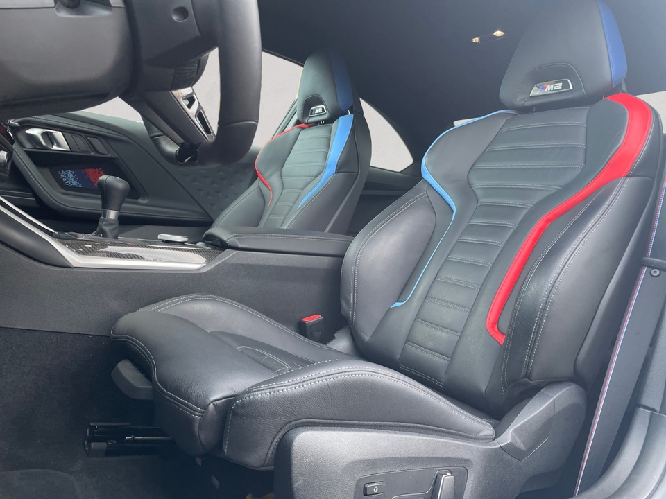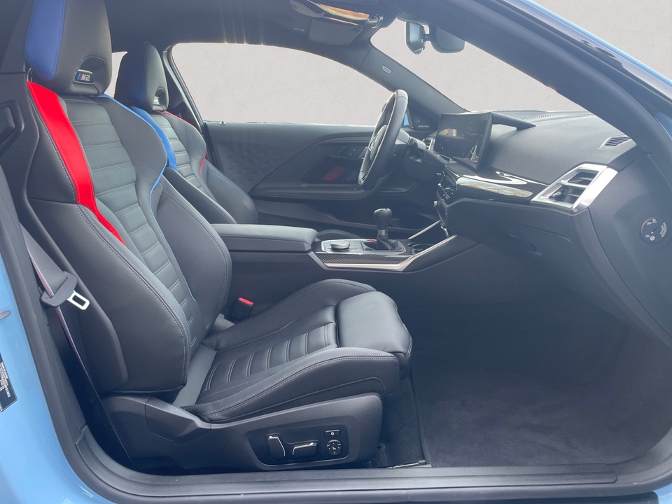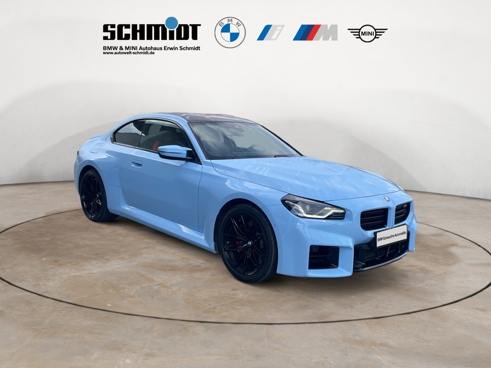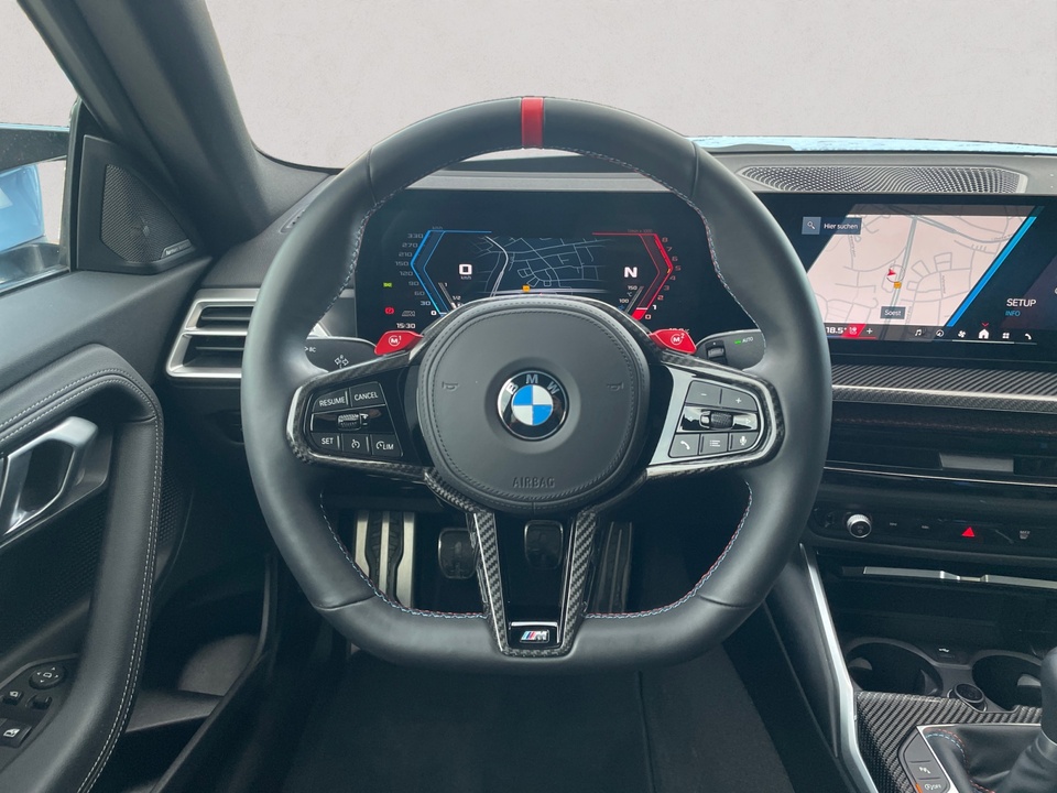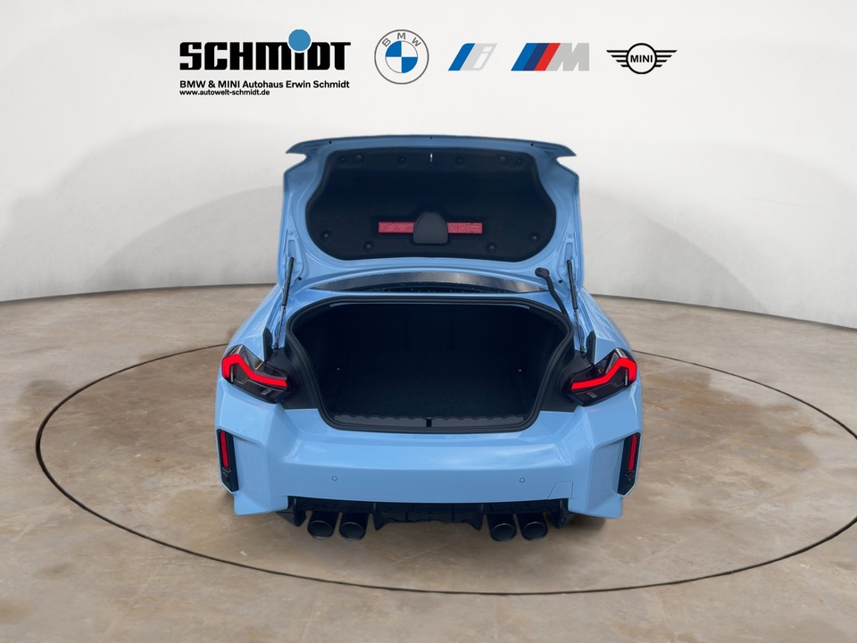M Carbondach Innovationspaket M Interieurleisten Carbon Fibre M Sportsitze Sitzverstellung, elektrisch, mit Memory-Funktion für Fahrersitz Driving Assistant Harman Kardon Surround Sound System M Combound-Bremse Rot hochglänzend Leder Vernasca Schwarz mit Exklusivakzent Lenkradheizung M Leuchten Shadow Line Lordosenstütze für Fahrer und Beifahrer FernlichtassistentSonderausstattung ab Werk M Sportdifferenzial Reifenpannenset Adaptives Fahrwerk Alarmanlage Komfortzugang Sonnenschutzverglasung Innen- und Außenspiegelpaket Innenspiegel.automatisch abblendend M Akzentflächen.illuminiert Ablagenpaket M Sicherheitsgurte Ambientes Licht Klimaautomatik mit 2-Zonen-Regelung Adaptiver LED-Scheinwerfer Parking Assistant Wireless Charging Ablage BMW Live Cockpit Professional M Hochglanz Shadow Line M Dachhimmel AnthrazitSerienaustattung Vier Sitzplätze mit Sitzkonfiguration: 2+2 Zehn Lautsprecher Subwoofer 4 Scheibenbremsen (4 innenbelüftet) und lackierte Bremssättel ABS Geschwindigkeitsregelanlage Make-up-Spiegel für Fahrer und Beifahrer Einparkhilfe vorne Sensor, Einparkhilfe hinten Sensor & Kamera, Einparkhilfe seitlich Sensor Heckantrieb Sperrdifferential mit begrenztem Schlupf elektronisches und hinten Antriebs-Schlupf-Regelung Turboaufladung Kraftstoff : bleifrei, 98 Oktan Tankinhalt 52 Liter Bordcomputer mit Durchschnittskraftstoffverbrauch Tagfahrlicht Kopf-/Dach Airbag vorn und hinten Zentralverriegelung (mit Fernbedienung) Alarmanlage Motorleistung nach EEC : Maximalleistung in KW: 353 , Maximalleistung in PS: 480 bei 6.250 U/min , Maximales Drehmoment in Nm: 600 bei 2.700 U/min Fahrer-Airbag, Beifahrer-Airbag mit Deaktivierung für Beifahrerairbag Seiten-Airbag vorne 2 höhenverstellbare Kopfstützen vorne und hinten Sicherheitsgurte vorn für Fahrer und Beifahrer Sicherheitsgurte hinten links und rechts Armlehne für Vordersitze Fahrersitz und Beifahrersitz Sportsitz mit Sitzheizung, mechanischer Lehnenneigungsverstellung, mechanischer Längsverstellung und mechanischer Höhenverstellung Multifunktions-Alu & Lederlenkrad höhenverstellbar und längsverstellbar Unabhängige Ein-Gelenk-Federbeinachse mit Stabilisator und Schrauben-Federung vorne, Unabhängige Mehrlenkerachse mit Stabilisator und Schrauben-Federung hinten Sportfahrwerk Aktive Radaufhängung mit wählbarer Einstellung elektronisch 8-Gang Automatikgetriebe mit manueller Gangwahl und Schalthebel am Lenkrad Automatik mit manuellem Modus, Schaltwippen und 0 Windschutzscheiben-Wisch-Wasch-Anlage mit Regensensor Elektrische Fensterheber mit Impulsschaltung für zwei Fenster vorn und hinten Gewichte: Zulässiges Gesamtgewicht (kg): 2.155, Leergewicht (kg): 1.805, Anhängelast gebremst (kg): 0 und Anhängelast ungebremst (kg): 0 Navigationssystem mit Bedienung über Touch Screen, Datenquelle: Internet 14,90 Zoll-Bildschirm, Verkehrsinformation und Verkehrsinfo Monate inklusive: 24 Vorbereitung Featrues on demand Isofix Sprachbedienung herstellereigen und KI unterstützt Telematik mit automatischem Notruf, mit SIM im Fahrzeug, Tracking System, Concierge Service Monate inkl.: und Pannenhilfe Kraftstoffverbrauch WLTP ICE, 9,7 l/100 km kombiniert, 9,6, 9,8, 10,4, 10,2, 25 und 24 Lokale Sprache Deutsch, BMW, 2er-Reihe, M2 Coupé und M2 Coupé Autom. Warnblinker bei starker Bremsung Crash Warnsystem aktiviert Bremslicht, automatische Notbremsung, Front und Heck, Fußgängerschutz, visuelle/akustische Warnung, Funktion über 130 km/h 78 mph, Funktion über 50 km/h 30 mph, Funktion unter 50 km/h 30 mph und Überwachung Fahrstil Bluetooth Start/Stop Spurassistent aktiviert Lenkung Sichtschutzglas hinten und Seite hinten Einparkassistent hinten, vollautomatisches Ein- und Ausparken 90° und autom. Bremsen während ParkvorgangWeitere Ausstattung SCHMIDT- Garantiepaket - 5 Jahre ab Erstzulassung! inkl. 24 Monate BMW Premium Selection Garantie, ohne jegliche Selbstbeteiligung im Schadensfall! Unsere Fahrzeuge werden nach Kauf umgehend in die jeweiligen Börsen eingestellt. Bitte informieren Sie sich vor Ihrem Besuch bei unseren Verkäufern, ob das von Ihnen ausgesuchte Fahrzeug bereits eingetroffen und in unserer Ausstellung ist.GarantieBMW Premium Selection