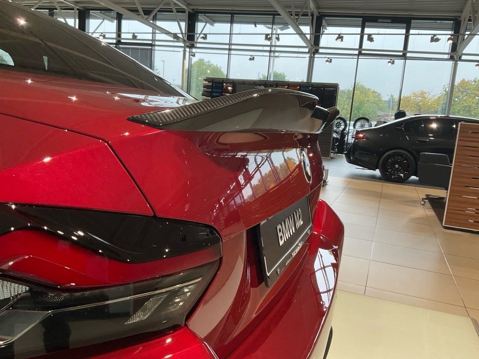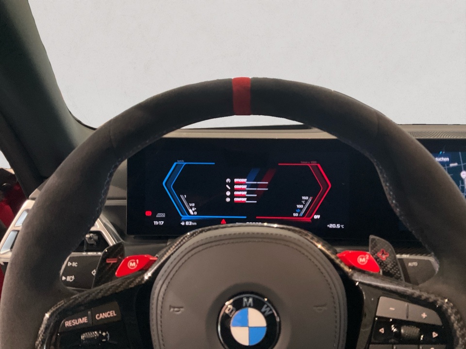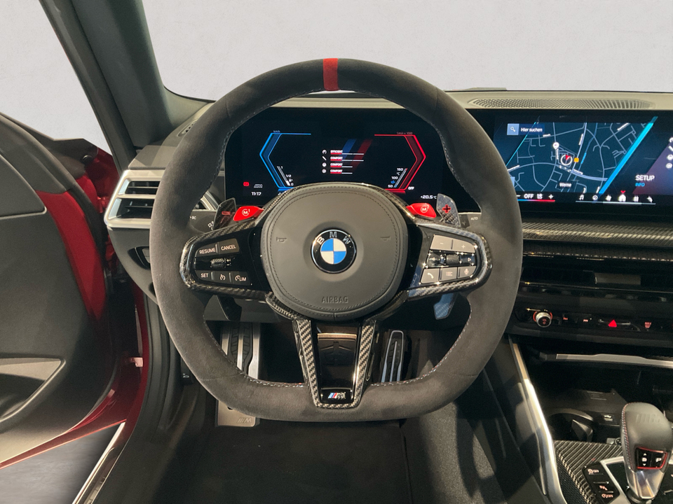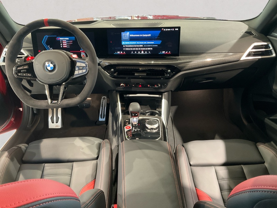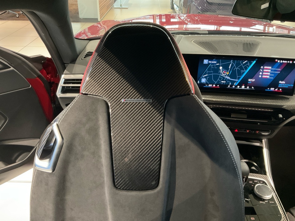 Plus Package M Carbondach M Driver?s Package M Interieurleisten Carbon Fibre M Sportsitze Sitzverstellung, elektrisch, mit Memory-Funktion für Fahrersitz Metallic-Lackierung Driving Assistant Harman Kardon Surround Sound System M Combound-Bremse Rot hochglänzend Leder Vernasca Schwarz/Rot M Leuchten Shadow Line Lordosenstütze für Fahrer und Beifahrer Lenkradheizung 19'/20' M Leichtmetallräder Doppelspeiche 930 M Bicolor mit Mischbereifung FernlichtassistentSerienaustattung Zehn Lautsprecher Subwoofer Einparkhilfe vorne Sensor, Einparkhilfe hinten Sensor & Kamera, Einparkhilfe seitlich Sensor Heckantrieb Sperrdifferential mit begrenztem Schlupf elektronisches und hinten Alarmanlage Motorleistung nach EEC : Maximalleistung in KW: 353 , Maximalleistung in PS: 480 bei 6.250 U/min , Maximales Drehmoment in Nm: 600 bei 2.700 U/min Sportfahrwerk Aktive Radaufhängung mit wählbarer Einstellung elektronisch 8-Gang Automatikgetriebe mit manueller Gangwahl und Schalthebel am Lenkrad Automatik mit manuellem Modus, Schaltwippen und 0 Navigationssystem mit Bedienung über Touch Screen, Datenquelle: Internet 14,90 Zoll-Bildschirm, Verkehrsinformation und Verkehrsinfo Monate inklusive: 24 Isofix Sprachbedienung herstellereigen und KI unterstützt Telematik mit automatischem Notruf, mit SIM im Fahrzeug, Tracking System, Concierge Service Monate inkl.: und Pannenhilfe Autom. Warnblinker bei starker Bremsung Bluetooth Start/Stop Spurassistent aktiviert Lenkung Sichtschutzglas hinten und Seite hinten Einparkassistent hinten, vollautomatisches Ein- und Ausparken 90° und autom. Bremsen während Parkvorgang Energie Rückgewinnung Parkplatzinformation Verkehrszeichenerkennung Interner Speicher/Festplatte Fahrereinstellungen Motorcharakteristik, Lenkung und Fahrwerk Wifi Netzwerk Anzahl Monate Vertrag inkl.: 999 und Verbindungsart: SIM-Karte erforderlich Fernbedienung Klimaanlage per Telefon, mit Zeitschaltuhr, mit Heizen und mit Kühlen Kabelloses Ladekissen Installierte Apps App-Steuerung Ambientelicht einhüllend, Farbauswahl und reaktives Licht Remote Services Fensterbruchwarnung, Fahrzeug finden, Ton/Blinken, 999 Monate inklusive, Zielübertragung, Position teilen, Fahrzeugdiagnose und Fahrhistorie & Analyse Over air updates OTA updates Alkoholsperre Unfalldatenschreiber Notruf Launch Control Optik Schwarz um Seitenfenster USB Ladeanschluss vorne, hinten Farbige Gurte Türschwellerschutz Aluminium Mehrere Benutzerprofile Integrierte Infotainmentnutzeroberfläche 24 Monate inkl. Hersteller DatenverbindungBemerkungFrontaufsatz Carbon / Frontaufsatz Carbon Rechts & Links / Blende Rechts & Links Bremslufteinlass / Schwelleraufsatz Carbon / Heckspoiler Carbon / Heckdiffusor Carbon / Tankverschlussklappe Carbon / M-Performance Fahrwerk / Rückwand Sitze Carbon / Sommerradsatz Goldbronze / TÜV Eintragung erfolgtIrrtümer und Zwischenverkauf vorbehalten.(CRCO 26.11.2025 16.58)