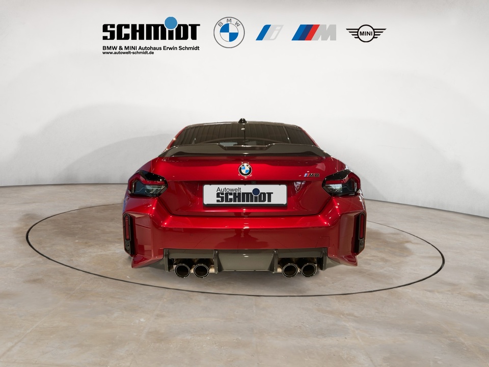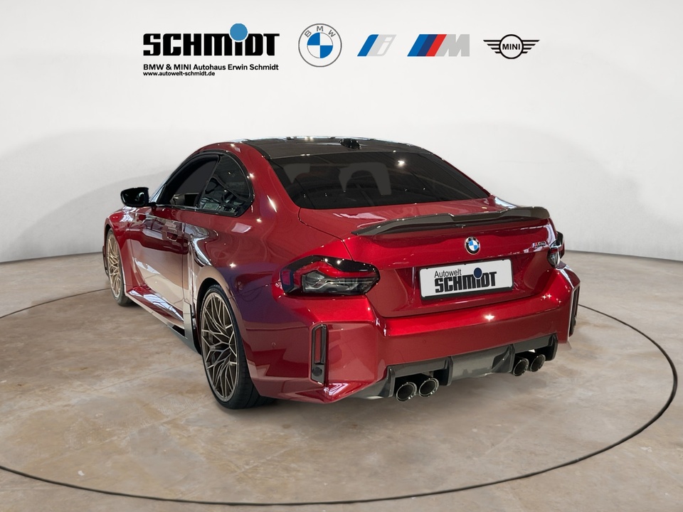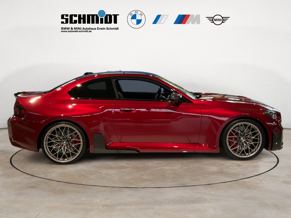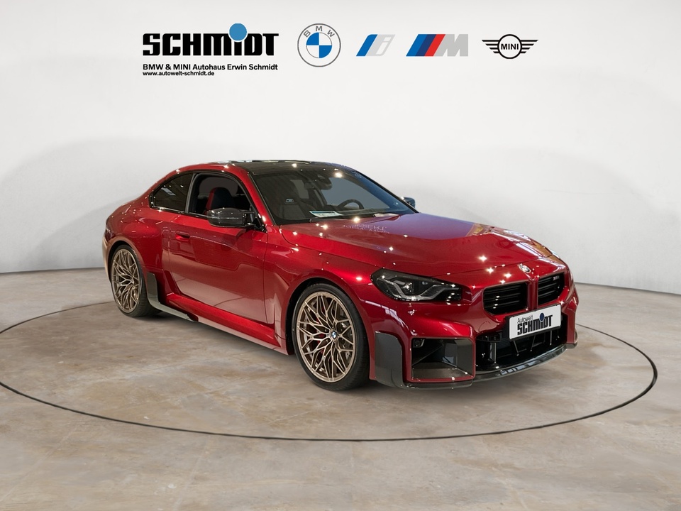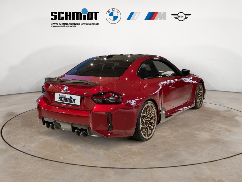 Plus Package M Carbondach M Driver?s Package M Interieurleisten Carbon Fibre M Sportsitze Sitzverstellung, elektrisch, mit Memory-Funktion für Fahrersitz Metallic-Lackierung Driving Assistant Harman Kardon Surround Sound System M Combound-Bremse Rot hochglänzend Leder Vernasca Schwarz/Rot M Leuchten Shadow Line Lordosenstütze für Fahrer und Beifahrer Lenkradheizung 19'/20' M Leichtmetallräder Doppelspeiche 930 M Bicolor mit Mischbereifung FernlichtassistentSerienaustattung Zehn Lautsprecher Subwoofer Einparkhilfe vorne Sensor, Einparkhilfe hinten Sensor & Kamera, Einparkhilfe seitlich Sensor Heckantrieb Sperrdifferential mit begrenztem Schlupf elektronisches und hinten Alarmanlage Motorleistung nach EEC : Maximalleistung in KW: 353 , Maximalleistung in PS: 480 bei 6.250 U/min , Maximales Drehmoment in Nm: 600 bei 2.700 U/min Sportfahrwerk Aktive Radaufhängung mit wählbarer Einstellung elektronisch 8-Gang Automatikgetriebe mit manueller Gangwahl und Schalthebel am Lenkrad Automatik mit manuellem Modus, Schaltwippen und 0 Navigationssystem mit Bedienung über Touch Screen, Datenquelle: Internet 14,90 Zoll-Bildschirm, Verkehrsinformation und Verkehrsinfo Monate inklusive: 24 Isofix Sprachbedienung herstellereigen und KI unterstützt Telematik mit automatischem Notruf, mit SIM im Fahrzeug, Tracking System, Concierge Service Monate inkl.: und Pannenhilfe Autom. Warnblinker bei starker Bremsung Bluetooth Start/Stop Spurassistent aktiviert Lenkung Sichtschutzglas hinten und Seite hinten Einparkassistent hinten, vollautomatisches Ein- und Ausparken 90° und autom. Bremsen während Parkvorgang Energie Rückgewinnung Parkplatzinformation Verkehrszeichenerkennung Interner Speicher/Festplatte Fahrereinstellungen Motorcharakteristik, Lenkung und Fahrwerk Wifi Netzwerk Anzahl Monate Vertrag inkl.: 999 und Verbindungsart: SIM-Karte erforderlich Fernbedienung Klimaanlage per Telefon, mit Zeitschaltuhr, mit Heizen und mit Kühlen Kabelloses Ladekissen Installierte Apps App-Steuerung Ambientelicht einhüllend, Farbauswahl und reaktives Licht Remote Services Fensterbruchwarnung, Fahrzeug finden, Ton/Blinken, 999 Monate inklusive, Zielübertragung, Position teilen, Fahrzeugdiagnose und Fahrhistorie & Analyse Over air updates OTA updates Alkoholsperre Unfalldatenschreiber Notruf Launch Control Optik Schwarz um Seitenfenster USB Ladeanschluss vorne, hinten Farbige Gurte Türschwellerschutz Aluminium Mehrere Benutzerprofile Integrierte Infotainmentnutzeroberfläche 24 Monate inkl. Hersteller DatenverbindungBemerkungFrontaufsatz Carbon / Frontaufsatz Carbon Rechts & Links / Blende Rechts & Links Bremslufteinlass / Schwelleraufsatz Carbon / Heckspoiler Carbon / Heckdiffusor Carbon / Tankverschlussklappe Carbon / M-Performance Fahrwerk / Rückwand Sitze Carbon / Sommerradsatz Goldbronze / TÜV Eintragung erfolgtIrrtümer und Zwischenverkauf vorbehalten.(CRCO 26.11.2025 16.58)