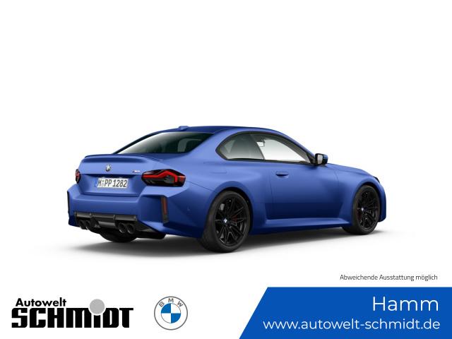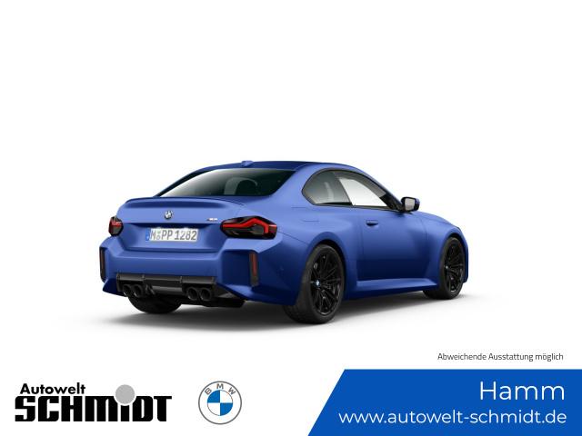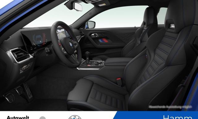 BMW Live Cockpit Professional inkl. BMW Head-Up Display M Sportsitze M Interieurleisten Carbon Fibre Sitzverstellung, elektrisch, mit Memory-Funktion für Fahrersitz Driving Assistant Adaptiver LED-Scheinwerfer Parking Assistant Komfortzugang (Keyless Entry) Harman Kardon Surround Sound System Manuelles Getriebe Sonnenschutzverglasung M Sicherheitsgurte M Combound-Bremse Rot hochglänzend M Leuchten Shadow Line Lordosenstütze für Fahrer und Beifahrer Fernlichtassistent M Shadow Line mit erweiterten Umfängen Reifenpannenset Leder VernascaSonderausstattung ab Werk Ablagenpaket Adaptives Fahrwerk Alarmanlage Ambientes Licht M Akzentflächen.illuminiert M Hochglanz Shadow Line M Dachhimmel Anthrazit Radschraubensicherung Geschwindigkeitsregelung mit Bremsfunktion Wireless Charging Ablage M Drive Professional Sitzheizung für Fahrer und Beifahrer Innen- und Außenspiegelpaket M Sportdifferenzial Klimaautomatik mit 2-Zonen-Regelung automatisch abblendendSerienaustattung Vier Sitzplätze mit Sitzkonfiguration: 2+2 Zehn Lautsprecher Subwoofer 4 Scheibenbremsen (4 innenbelüftet) und lackierte Bremssättel ABS Geschwindigkeitsregelanlage Make-up-Spiegel für Fahrer und Beifahrer Einparkhilfe vorne, hinten Sensor Heckantrieb Sperrdifferential mit begrenztem Schlupf elektronisches und hinten Antriebs-Schlupf-Regelung Turboaufladung Kraftstoffsystem mit direkter Benzineinspritzung Kraftstoff : bleifrei, 98 Oktan Tankinhalt 52 Liter Bordcomputer mit Durchschnittskraftstoffverbrauch Tagfahrlicht Kopf-/Dach Airbag vorn und hinten Zentralverriegelung (mit Fernbedienung) mit Schließung der elektr. Fenster Alarmanlage mit Innenraumüberwachung Motorleistung nach EEC : Maximalleistung in KW: 338 , Maximalleistung in PS: 460 bei 6.250 U/min , Maximales Drehmoment in Nm: 550 bei 2.650 U/min Fahrer-Airbag, Beifahrer-Airbag mit Deaktivierung für Beifahrerairbag Seiten-Airbag vorne 2 höhenverstellbare Kopfstützen vorne und hinten Sicherheitsgurte vorn für Fahrer und Beifahrer , Gurtstraffer vorne Sicherheitsgurte hinten links und rechts Armlehne für Vordersitze Fahrersitz und Beifahrersitz Sportsitz mit Sitzheizung, mechanischer Lehnenneigungsverstellung, mechanischer Längsverstellung und mechanischer Höhenverstellung Multifunktions-Alu & Lederlenkrad höhenverstellbar und längsverstellbar Unabhängige Ein-Gelenk-Federbeinachse mit Stabilisator und Schrauben-Federung vorne, Unabhängige Mehrlenkerachse mit Stabilisator und Schrauben-Federung hinten Sportfahrwerk Aktive Radaufhängung mit wählbarer Einstellung elektronisch 8-Gang Automatikgetriebe mit manueller Gangwahl und Schalthebel am Lenkrad Automatik mit manuellem Modus und Schaltwippen Windschutzscheiben-Wisch-Wasch-Anlage mit Regensensor Elektrische Fensterheber mit Impulsschaltung für zwei Fenster vorn und hinten Gewichte: Zulässiges Gesamtgewicht (kg): 2.155, Leergewicht (kg): 1.800, Anhängelast gebremst (kg): 0 und Anhängelast ungebremst (kg): 0 Navigationssystem mit Bedienung über Touch Screen, Datenquelle: Internet (Farbe), 14,90 Zoll-Bildschirm, Verkehrsinformation und Verkehrsinfo Monate inklusive: 24 Vorbereitung Featrues on demand Isofix Sprachbedienung herstellereigen Telematik mit automatischem Notruf, mit SIM im Fahrzeug, Tracking System, Concierge Service Monate inkl.: und Pannenhilfe Partikelfilter Kraftstoffverbrauch WLTP ICE, 9,7 l/100 km kombiniert, 14,7, 6,8, 9,6, 10,4, 8,3, 12,0, 9,1, 11,0, 16, 25, 28 und 26 Lokale Sprache Deutsch, BMW, 2er-Reihe, M2 Coupé und M2 Coupé Crash Warnsystem aktiviert Bremslicht, Müdigkeitswarnung, automatische Notbremsung, Bremst bei niedriger Geschwindigkeit, Fußgängerschutz, visuelle/akustische Warnung, Funktion über 130 km/h 78 mph, Funktion über 50 km/h 30 mph und Funktion unter 50 km/h 30 mph Bluetooth Start/Stop Spurassistent Multi-Funktions-Monitor mit 12,30 Zoll Bildschirm Kombi-Instrumente 1 und Bildschirmgröße (cm):, Multi-Funktions-Monitor mit 14,90 Zoll Bildschirm und Touch-Bedienung Armaturenbrett 1, Bildschirmgröße (cm):, fix, Drehknopf, Touchpadsteuerung und nein Energie Rückgewinnung Verkehrszeichenerkennung Interner Speicher/Festplatte Fahrereinstellungen Motorcharakteristik, Lenkung, Fahrwerk, Stabilitätskontrolle und Traktionskontrolle Fernbedienung Klimaanlage per Telefon, mit Zeitschaltuhr, mit Heizen und mit Kühlen Kabelloses Ladekissen Installierte Apps App-Steuerung Text - Sprache/Sprache - Text 6 AirbagsWeitere Ausstattung inkl. 24 Monate Euro Plus Garantie, ohne jegliche Selbstbeteiligung im Schadensfall!GarantieBMW Premium SelectionIrrtümer und Zwischenverkauf vorbehalten.(CRCO 22.10.2025 10.34)