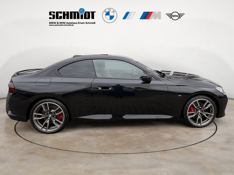Leder Vernasca mit Dekorsteppung Cognac M Sportpaket Pro BMW Live Cockpit Professional M Sportsitze Sitzverstellung, elektrisch, mit Memory-Funktion für Fahrersitz Metallic-Lackierung Driving Assistant Anhängerkupplung mit abnehmbarem Kugelkopf Adaptiver LED-Scheinwerfer Parking Assistant Aktive Geschwindigkeitsregelung mit Stop&Go-Funktion (ACC) Alarmanlage Sonnenschutzverglasung Sitzheizung für Fahrer und Beifahrer Innen- und Außenspiegelpaket Personal eSIM M Hochglanz Shadow Line mit erweiterten Umfängenname Lordosenstütze für Fahrer und Beifahrer Ablage für Wireless Charging M Akzentflächen, illuminiert Lenkradheizung Fernlichtassistent Reifenpannenset Modellschriftzug ? EntfallSonderausstattung ab Werk Ablagenpaket M Aerodynamikpaket Ambientes Licht M Hochglanz Shadow Line M Dachhimmel Anthrazit Steptronic Sport Getriebe M Heckspoiler HIFI Lautsprechersystem Interieurleisten Schwarz hochglänzend automatisch abblendend Klimaautomatik mit 2-Zonen-Regelung M Lederlenkrad M Sportfahrwerk M Sportdifferenzial Variable Sportlenkung M Leuchten Shadow Line M Sicherheitsgurte M Sportbremse rot.hochglänzend RadschraubensicherungSerienaustattung Vier Sitzplätze mit Sitzkonfiguration: 2+2 Zehn Lautsprecher Subwoofer 4 Scheibenbremsen (4 innenbelüftet) und lackierte Bremssättel ABS Geschwindigkeitsregelanlage Make-up-Spiegel für Fahrer und Beifahrer Einparkhilfe vorne, hinten Sensor Permanenter Vierradantrieb xDrive Sperrdifferential mit begrenztem Schlupf elektronisches, vorne und hinten Antriebs-Schlupf-Regelung Turboaufladung Kraftstoffsystem mit direkter Benzineinspritzung Kraftstoff : bleifrei, 95 Oktan Tankinhalt 52 Liter Bordcomputer mit Durchschnittskraftstoffverbrauch Tagfahrlicht Kopf-/Dach Airbag vorn und hinten Zentralverriegelung (mit Fernbedienung) mit Schließung der elektr. Fenster Motorleistung nach EEC : Maximalleistung in KW: 275 , Maximalleistung in PS: 374 bei 5.500 U/min , Maximales Drehmoment in Nm: 500 bei 1.900 U/min Fahrer-Airbag, Beifahrer-Airbag mit Deaktivierung für Beifahrerairbag Seiten-Airbag vorne 2 höhenverstellbare Kopfstützen vorne und hinten Sicherheitsgurte vorn für Fahrer und Beifahrer , Gurtstraffer vorne Sicherheitsgurte hinten links und rechts Armlehne für Vordersitze Fahrersitz und Beifahrersitz Sportsitz mit mechanischer Lehnenneigungsverstellung, mechanischer Längsverstellung und mechanischer Höhenverstellung Multifunktions-Alu & Lederlenkrad höhenverstellbar und längsverstellbar Unabhängige Ein-Gelenk-Federbeinachse mit Stabilisator und Schrauben-Federung vorne, Unabhängige Mehrlenkerachse mit Stabilisator und Schrauben-Federung hinten Sportfahrwerk 8-Gang Automatikgetriebe mit manueller Gangwahl und Schalthebel am Lenkrad Automatik mit manuellem Modus und Schaltwippen Windschutzscheiben-Wisch-Wasch-Anlage mit Regensensor Elektrische Fensterheber mit Impulsschaltung für zwei Fenster vorn und hinten Gewichte: Zulässiges Gesamtgewicht (kg): 2.165, Leergewicht (kg): 1.765, Anhängelast gebremst (kg): 1.600 und Anhängelast ungebremst (kg): 750 Navigationssystem mit Bedienung über Touch Screen, Datenquelle: Internet (Farbe), 14,90 Zoll-Bildschirm, Verkehrsinformation und Verkehrsinfo Monate inklusive: 24 Vorbereitung Featrues on demand Isofix Sprachbedienung herstellereigen Telematik mit automatischem Notruf, mit SIM im Fahrzeug, Tracking System, Concierge Service Monate inkl.: und Pannenhilfe Partikelfilter Kraftstoffverbrauch WLTP ICE, 8,1 l/100 km kombiniert, 8,1, 8,8, 12,3, 11,4, 12,3, 8,1, 8,3, 12,0, 6,9, 14,5, 7,6, 13,2, 29, 27, 19, 28, 34 und 31 Lokale Sprache Deutsch, BMW, 2er-Reihe, M240i xDrive Steptronic Coupé und M240i xDrive Steptronic Coupé Crash Warnsystem aktiviert Bremslicht, Müdigkeitswarnung, automatische Notbremsung, Bremst bei niedriger Geschwindigkeit, Fußgängerschutz, visuelle/akustische Warnung, Funktion über 130 km/h 78 mph, Funktion über 50 km/h 30 mph und Funktion unter 50 km/h 30 mph Bluetooth Start/Stop SpurassistentWeitere Ausstattung inkl. 24 Monate Euro Plus Garantie, ohne jegliche Selbstbeteiligung im Schadensfall!GarantieBMW Premium Selection