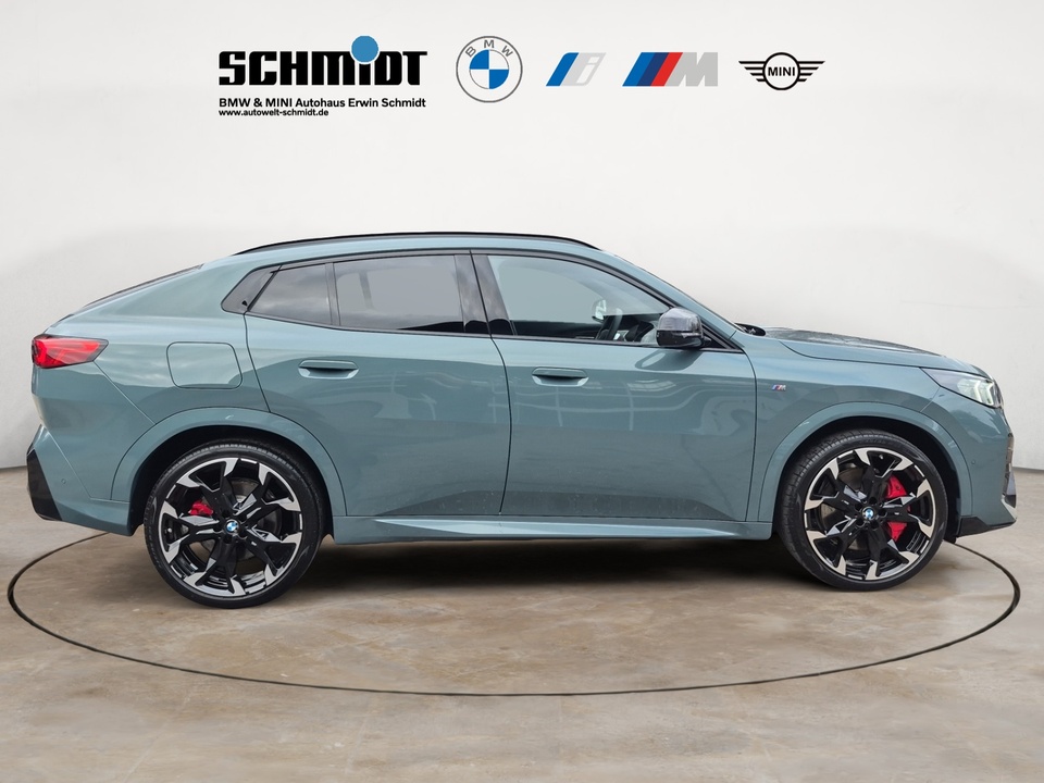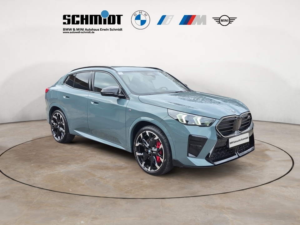 Innovations Paket M Sportpaket Pro Driving Assistant Professional Metallic-Lackierung 21' M Leichtmetallräder Y-Speiche 874 M Bicolor M Sportsitze für Fahrer und Beifahrer M Dachreling Hochglanz Shadow Line Adaptiver LED-Scheinwerfer M Leuchten Shadow Line M Hochglanz Shadow Line mit erweiterten Umfängen M Sportbremse, rot hochglänzend M Sicherheitsgurte Innen- und Außenspiegelpaket Parking Assistant Plus Außenspiegelpaket Innenspiegel, automatisch abblendend Komfortzugang (Keyless Entry) Wireless Charging Ablage Akustikverglasung BMW Head-Up Display BMW Live Cockpit Professional BMW Niere 'Inconic Glow'Sonderausstattung ab Werk Steptronic Getriebe mit Doppelkupplung und Schaltwippen Reifenreparatur Set Adaptives Fahrwerk Alarmanlage Modellschriftzug - Entfall am Heck Sonnenschutzverglasung Sitzheizung für Fahrer und Beifahrer Interieurleisten Aluminium Hexacube hell Instrumententafel Luxury Fernlichtassistent HiFi Lautsprechersystem harman kardon M Heckspoiler M Hochglanz Shadow Line M Dachhimmel Anthrazit M Sport Exterieurumfänge M Sport Interieurumfänge Spezifische Zusatzumfänge M Sportpaket Spezifische Zusatzumfänge M Sportpaket ProSerienaustattung Fünf Sitzplätze mit Sitzkonfiguration: 2+3 Zwölf Lautsprecher (Harman/Kardon) und Subwoofer 4 Scheibenbremsen (4 innenbelüftet) und lackierte Bremssättel ABS Elektrische Heckklappen-Zuziehhilfe Geschwindigkeitsregelanlage Beleuchteter Make-up-Spiegel für Fahrer und Beifahrer Einparkhilfe vorne Sensor, Einparkhilfe hinten Sensor & Kamera, Einparkhilfe seitlich Sensor Geregelter Vierradantrieb mit Bergabfahrhilfe xDrive Sperrdifferential mit begrenztem Schlupf elektronisches, vorne und hinten Antriebs-Schlupf-Regelung Turboaufladung Kraftstoff : bleifrei, 95 Oktan Tankinhalt 54 Liter Bordcomputer mit Durchschnittskraftstoffverbrauch Tagfahrlicht Kopf-/Dach Airbag vorn und hinten Zentralverriegelung (mit Fernbedienung) Alarmanlage Motorleistung nach EEC : Maximalleistung in KW: 221 , Maximalleistung in PS: 300 bei 5.750 U/min , Maximales Drehmoment in Nm: 400 bei 2.000 U/min Fahrer-Airbag, Beifahrer-Airbag mit Deaktivierung für Beifahrerairbag Seiten-Airbag vorne 2 höhenverstellbare Kopfstützen vorne, 3 höhenverstellbare Kopfstützen hinten Sicherheitsgurte vorn für Fahrer und Beifahrer Sicherheitsgurte hinten links, Sicherheitsgurte hinten rechts, Dreipunkt-Gurt hinten Mitte : Armlehne für Vordersitze Armlehne für Rücksitze Fahrersitz und Beifahrersitz Sportsitz mit Sitzheizung, mechanischer Lehnenneigungsverstellung, mechanischer Längsverstellung, mechanischer Höhenverstellung, mechanischer Sitzflächenneigungsverstellung und mechanischer Oberschenkelauflage Multifunktions-Alu & Lederlenkrad höhenverstellbar und längsverstellbar Unabhängige Ein-Gelenk-Federbeinachse mit Stabilisator und Schrauben-Federung vorne, Unabhängige Mehrlenkerachse mit Stabilisator und Schrauben-Federung hinten Sportfahrwerk Aktive Radaufhängung mechanisch 7-Gang Automatikgetriebe mit manueller Gangwahl und Schalthebel am Lenkrad sequentiell-manuell, Doppelkupplung sequenziell mit Autom., Schaltwippen und 0 Windschutzscheiben-Wisch-Wasch-Anlage mit Regensensor Elektrische Fensterheber mit Impulsschaltung für zwei Fenster vorn und hinten Gewichte: Zulässiges Gesamtgewicht (kg): 2.270, Leergewicht (kg): 1.770, Anhängelast gebremst (kg): 0 und Anhängelast ungebremst (kg): 0 Navigationssystem mit Bedienung über Touch Screen, Datenquelle: Internet 10,70 Zoll-Bildschirm, Verkehrsinformation und Verkehrsinfo Monate inklusive: 0 Vorbereitung Featrues on demand Isofix Sprachbedienung herstellereigen und KI unterstützt Telematik mit automatischem Notruf, mit SIM im Fahrzeug, Tracking System, Concierge Service Monate inkl.: und Pannenhilfe Kraftstoffverbrauch WLTP ICE, 7,8 l/100 km kombiniert, 7,7, 8,1, 13,0, 12,3, 31 und 29 Lokale Sprache Deutsch, BMW, X2, M35i xDrive Steptronic DCT und M35i xDrive Steptronic DCT Autom. Warnblinker bei starker BremsungWeitere Ausstattung inkl. 24 Monate BMW Premium Selection Garantie, ohne jegliche Selbstbeteiligung im Schadensfall!GarantieBMW Premium Selection