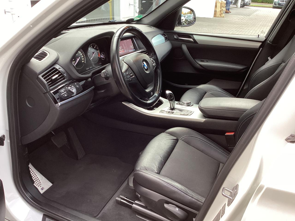 Comfort Paket in Verbindung mit M Sportpaket M Sportpaket Navigationspaket ConnectedDrive Navigationssystem Professional 8-Gang Steptronic Getriebe mit Schaltwippen Panorama-Glasdach Anhängerkupplung mit elektrisch schwenkbarem Kugelkopf Head-Up Display Xenon-Licht Park Distance Control (PDC) BMW Individual Hochglanz Shadow Line Klimaautomatik, 2-Zonenregelung Stoff-/Lederkombination Pearlpoint Komfortzugang (Keyless Entry) Innen- und Außenspiegel automatisch abblendend Sportsitze für Fahrer und Beifahrer Komforttelefonie mit erweiterter Smartphone-Anbindung Automatische Heckklappenbetätigung Geschwindigkeitsregelung mit Bremsfunktion Rückfahrkamera HiFi Lautsprechersystem Sitzheizung für Fahrer und Beifahrer ConnectedDrive Services Sportliche Fahrwerksabstimmung Interieurleiste Aluminium Längsschliff fein Speed Limit Info inklusive Überholverbotsanzeige Bereifung mit Notlaufeigenschaften Variable Sportlenkung Multifunktion für Lenkrad LED-Nebelscheinwerfer M Lederlenkrad BMW Individual Dachhimmel anthrazit Innenspiegel automatisch abblendend Performance Control Regensensor und automatische Fahrlichtsteuerung BMW Individual Dachreling Hochglanz Shadow Line 18' M Leichtmetallräder Sternspeiche 368 MSonderausstattung ab Werk Servotronic Gepäckraumtrennnetz Fußmatten in Velours Durchladesystem ECO PRO Modus Scheinwerfer-Waschanlage Lichtpaket Beifahrerairbag-Deaktivierung Intelligenter Notruf inkl. TeleServices Real Time Traffic Information (RTTI) Concierge Services Remote Services M AerodynamikpaketSerienaustattung Fünf Sitzplätze mit Sitzkonfiguration: 2+3 Sechs Lautsprecher 4 Scheibenbremsen (4 innenbelüftet) ABS Beleuchteter Make-up-Spiegel für Fahrer und Beifahrer Permanenter Vierradantrieb mit Bergabfahrhilfe Antriebs-Schlupf-Regelung Turboaufladung Kraftstoffsystem mit Common Rail Kraftstoff : Diesel Tankinhalt 67 Liter Bordcomputer mit Durchschnittskraftstoffverbrauch Tagfahrlicht Kopf-/Dach Airbag vorn und hinten Zentralverriegelung (mit Fernbedienung) mit Schließung der elektr. Fenster Motorleistung nach EEC : Maximalleistung in KW: 140 , Maximalleistung in PS: 190 bei 4.000 U/min , Maximales Drehmoment in Nm: 400 bei 1.750 U/min Fahrer-Airbag, Beifahrer-Airbag mit Deaktivierung für Beifahrerairbag Seiten-Airbag vorne 2 höhenverstellbare aktive Kopfstützen vorne, 3 höhenverstellbare Kopfstützen hinten Sicherheitsgurte vorn für Fahrer und Beifahrer , Gurtstraffer vorne Sicherheitsgurte hinten links, Sicherheitsgurte hinten rechts, Dreipunkt-Gurt hinten Mitte : Armlehne für Vordersitze Armlehne für Rücksitze Fahrersitz und Beifahrersitz Einzelsitz mit mechanischer Lehnenneigungsverstellung, mechanischer Längsverstellung und mechanischer Höhenverstellung Lederlenkrad höhenverstellbar und längsverstellbar Unabhängige Ein-Gelenk-Federbeinachse mit Stabilisator und Schrauben-Federung vorne, Unabhängige Mehrlenkerachse mit Stabilisator und Schrauben-Federung hinten 6-Gang Schaltgetriebe manuell Windschutzscheiben-Wisch-Wasch-Anlage Elektrische Fensterheber mit Impulsschaltung für zwei Fenster vorn und hinten Gewichte: Zulässiges Gesamtgewicht (kg): 2.350, Leergewicht (kg): 1.805, Anhängelast gebremst (kg): 2.000 und Anhängelast ungebremst (kg): 750 Isofix Telematik mit automatischem Notruf Partikelfilter Kraftstoffverbrauch ECE 99/100, 6,2 l/100 km Stadt, 5,0 l/100 km Überland und 5,4 l/100 km kombiniert Lokale Sprache Deutsch, BMW, X3 und xDrive20d Autom. Warnblinker bei starker Bremsung Bluetooth Start/Stop Energie Rückgewinnung Fahrereinstellungen Motorcharakteristik, Lenkung, Stabilitätskontrolle und Traktionskontrolle Katalytische Reduktion 6 Airbags Energieeffizienzklasse: AWeitere Ausstattung 12 Monate Gebrauchtwagengarantie inklusive!Irrtümer und Zwischenverkauf vorbehalten.(CRCO 27.11.2025 19.51)