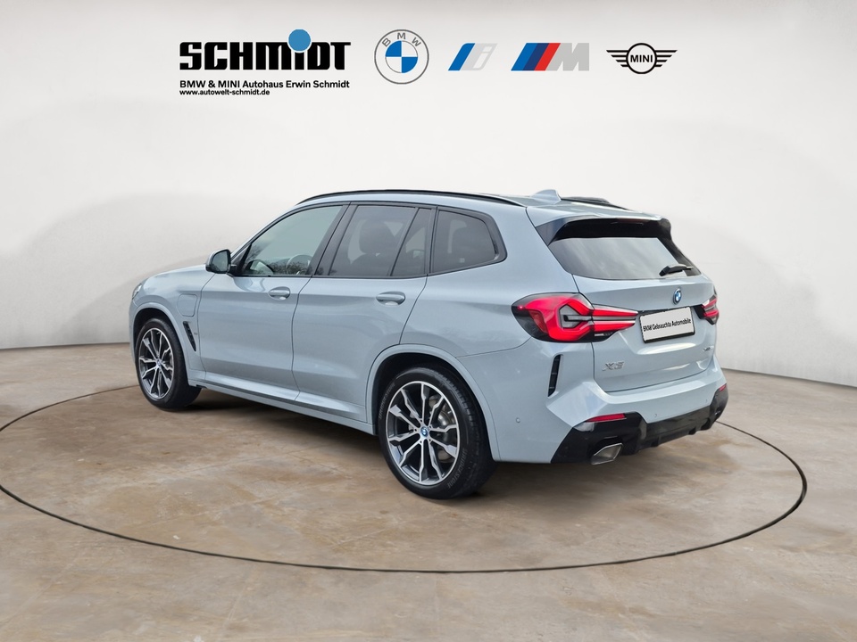 M Sportpaket 20' M Leichtmetallräder Doppelspeiche 699 M, Orbitgrau mit Mischbereifung und Notlaufeigenschaften Panorama-Glasdach BMW Live Cockpit Professional Sitzverstellung elektrisch mit Memory Anhängerkupplung mit elektrisch schwenkbarem Kugelkopf Komfortzugang (Keyless Entry) Sonnenschutzverglasung HiFi Lautsprechersystem Ambientes Licht M Dachhimmel Anthrazit Ablagenpaket Lenkradheizung Variable Sportlenkung M Hochglanz Shadow Line mit erweiterten Umfängen M Lederlenkrad M Hochglanz Shadow Line 8-Gang Steptronic Sport Getriebe Fernlichtassistent Performance Control M Dachreling Hochglanz Shadow Line Bereifung mit Notlaufeigenschaften M Interieurleisten Aluminium Rhombicle dunkel mit Akzentleiste Perlglanz ChromeSonderausstattung ab Werk Radschraubensicherung Gepäckraum-Trennnetz Innen- und Außenspiegelpaket Innenspiegel automatisch abblendend Sportsitze für Fahrer und Beifahrer Sitzheizung für Fahrer und Beifahrer Klimaautomatik Adaptive LED-Scheinwerfer Parking Assistant BMW Connected Package Professional M AerodynamikpaketSerienaustattung Elektrische Heckklappen-Zuziehhilfe Geschwindigkeitsregelanlage Einparkhilfe vorne Sensor, Einparkhilfe hinten Sensor & Kamera, Einparkhilfe seitlich Sensor Elektroantrieb-mit-Lithium-Ionen Batterie Batteriespannung: 354,0, Batterie Ah: 34,0, Batterie kWh: 12,00, Onboard Charger (kW): 3,7, eingeschlossene kW: 0 und Anzahl Monate Vertrag inklusive: 0 Tagfahrlicht Kopf-/Dach Airbag vorn und hinten Dachreling Chrom/silber Fahrer-Airbag, Beifahrer-Airbag mit Deaktivierung für Beifahrerairbag Seiten-Airbag vorne Armlehne für Rücksitze Fahrersitz und Beifahrersitz Sportsitz mit Sitzheizung, mechanischer Lehnenneigungsverstellung, mechanischer Längsverstellung und mechanischer Höhenverstellung Navigationssystem mit Bedienung über Touch Screen, Datenquelle: Internet (Farbe), 12,30 Zoll-Bildschirm, Verkehrsinformation und Verkehrsinfo Monate inklusive: 24 Sekundäre Motorleistung: Leistung max. in kW: 135, Leistung max. in PS: 184, Drehmoment max. in Nm: 300, 5.000 und 1.350 Sekundäre Leistungsdaten: höchstgeschwindigkeit (km/h) 210 Sekundärer Kraftstoffverbrauch Sprachbedienung Alexa Telematik mit automatischem Notruf, mit SIM im Fahrzeug, Tracking System, Concierge Service Monate inkl.: und Pannenhilfe Partikelfilter Knie-Airbags Fahrer Lokale Sprache Deutsch, BMW, X3 und xDrive30e AT Crash Warnsystem aktiviert Bremslicht, Müdigkeitswarnung, automatische Notbremsung, Front und Heck Mindestgeschw. Zur Aktivierung: 10 km/h Fußgängerschutz, visuelle/akustische Warnung, Funktion über 130 km/h 78 mph, Funktion über 50 km/h 30 mph und Funktion unter 50 km/h 30 mph Bluetooth Start/Stop Einparkassistent hinten, vollautomatisches Einparken 90° und autom. Bremsen während Parkvorgang Display mit 12,30 Zoll Bildschirm Kombiinstrument 1 und Bildschirmgröße (cm):, Display mit 10,30 Zoll Bildschirm und Touch-Bedienung Armaturenbrett 1 und Bildschirmgröße (cm): Energie Rückgewinnung Parkplatzinformation Zusätzliche Kraftstoffart bleifrei Hybridart Aktiv-Hybrid Plug-in Elektrisch angetriebene Räder 4x4 Interner Speicher/Festplatte Fahrereinstellungen Motorcharakteristik, Lenkung, Stabilitätskontrolle und Traktionskontrolle Ladeinformation mode 2, 6,00, 13, Angabe bereitgestellte kW, Ladezustand beginnt bei %: und Ladezustand endet bei %:, Ladeinformation mode 3, 3,70, 10, 3,70, Angabe bereitgestellte kW, Ladezustand beginnt bei %: und Ladezustand endet bei %: Elektromotor 1, 108,8 PS, 80,0 kW, 265 Nm und AC permanent Magnet synchron Fernbedienung Klimaanlage per Telefon, mit Zeitschaltuhr, mit Heizen und mit Kühlen Energieverbrauch Installierte Apps App-Steuerung Text - Sprache/Sprache - Text Akustisches Fußgänger-Warnsystem 7 Airbags Mobiltelefonintegration Apple CarPlay, Android Auto, Apple Monate inklusive: 999, Android Monate inklusive: 999, MirrorLink Monate inklusive: 0, Apple drahtlos und Android drahtlos WLTP Emissionen HEV Charge Sustaining und kombiniert: 179,0, WLTP Emissionen HEV Charge Depleting und kombiniert: 23,0, WLTP Emissionen HEV UF Weighted, kombiniert: 45,0, kombiniert Fzg niedrig: 45,0 und kombiniert Fzg hoch: 59,0 Elektrisches System 12 Ladestecker Type 2 (Mennekes) und Ladeanschluss AC 1 Position Anschluss DC3: vorne seitlich WLTP Stromverbrauch BEV/HEV electric energy consumption und 258,0, WLTP Stromverbrauch HEV electric energy cons-Chrg Depl und 249,0, WLTP Stromverbrauch HEV electric energy cons-UF Wtd, 189,0, 189,0 und 205,0Weitere Ausstattung inkl. 24 Monate Euro Plus Garantie, ohne jegliche Selbstbeteiligung im Schadensfall!GarantieBMW Premium SelectionIrrtümer und Zwischenverkauf vorbehalten.(CRCO 04.12.2025 16.51)