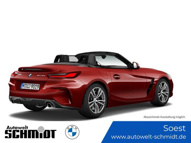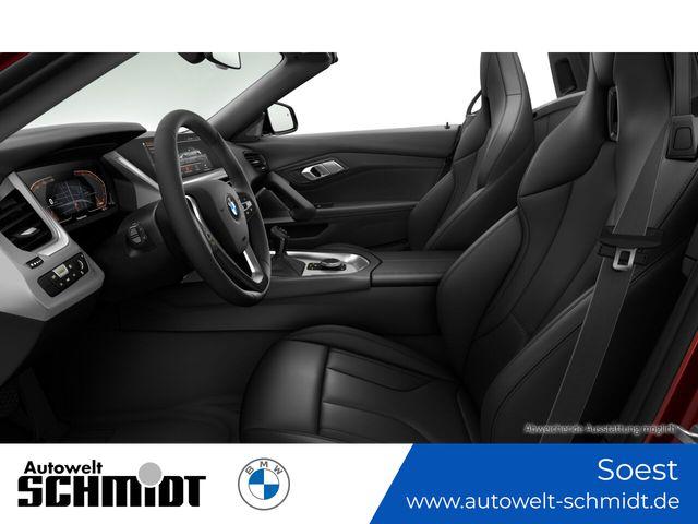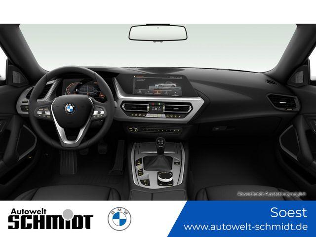 Metallic-Lackierung Driving Assistant Komfortzugang (Keyless Entry) Innen- und Außenspiegelpaket Fernlichtassistent ReifenpannensetSonderausstattung ab Werk Alarmanlage Innenspiegel.automatisch abblendend Durchladesystem: Fondsitzlehne.Teilung 40:20:40 Ablagenpaket Sitzheizung für Fahrer und Beifahrer Klimaautomatik mit 2-Zonen-Regelung HiFi Lautsprechersystem BMW Live Cockpit ProfessionalSerienaustattung Zwei Sitzplätze mit Sitzkonfiguration: 2+0 Zehn Lautsprecher Subwoofer 4 Scheibenbremsen (4 innenbelüftet) ABS Geschwindigkeitsregelanlage Beleuchteter Make-up-Spiegel für Fahrer und Beifahrer Einparkhilfe vorne, hinten Sensor Heckantrieb Antriebs-Schlupf-Regelung Eins Turboaufladung Kraftstoff : bleifrei, 95 Oktan Tankinhalt 52 Liter Bordcomputer mit Durchschnittskraftstoffverbrauch Tagfahrlicht Zentralverriegelung (mit Fernbedienung) Alarmanlage Motorleistung nach EEC : Maximalleistung in KW: 145 , Maximalleistung in PS: 197 bei 4.500 U/min , Maximales Drehmoment in Nm: 320 bei 1.450 U/min Elektrisch Softtopes mit Heckfenster aus Glas Fahrer-Airbag, Beifahrer-Airbag mit Deaktivierung für Beifahrerairbag Seiten-Airbag vorne und Kopfschutz 2 integrierte Kopfstützen vorne Sicherheitsgurte vorn für Fahrer und Beifahrer Armlehne für Vordersitze Fahrersitz und Beifahrersitz Einzelsitz mit Sitzheizung, mechanischer Lehnenneigungsverstellung, mechanischer Längsverstellung und mechanischer Höhenverstellung Multifunktions-Alu & Lederlenkrad höhenverstellbar und längsverstellbar Unabhängige Ein-Gelenk-Federbeinachse mit Stabilisator und Schrauben-Federung vorne, Unabhängige Mehrlenkerachse mit Stabilisator und Schrauben-Federung hinten 6-Gang Schaltgetriebe manuell und 0 Windschutzscheiben-Wisch-Wasch-Anlage mit Regensensor Elektrische Fensterheber mit Impulsschaltung für zwei Fenster vorn Gewichte: Zulässiges Gesamtgewicht (kg): 1.725, Leergewicht (kg): 1.510, Anhängelast gebremst (kg): 0 und Anhängelast ungebremst (kg): 0 Navigationssystem mit Bedienung über Touch Screen, Datenquelle: Internet 10,30 Zoll-Bildschirm, Verkehrsinformation und Verkehrsinfo Monate inklusive: 24 Windschott hinter Sitzen Vorbereitung Featrues on demand Isofix Sprachbedienung herstellereigen und KI unterstützt Telematik mit automatischem Notruf, mit SIM im Fahrzeug, Tracking System, Concierge Service Monate inkl.: und Pannenhilfe Kraftstoffverbrauch WLTP ICE, 7,3 l/100 km kombiniert, 7,1, 7,4, 14,1, 13,5, 33 und 32 Lokale Sprache Deutsch, BMW, Z4, sDrive20i und sDrive20i Autom. Warnblinker bei starker Bremsung Crash Warnsystem aktiviert Bremslicht, automatische Notbremsung, Bremst bei niedriger Geschwindigkeit, Fußgängerschutz, visuelle/akustische Warnung, Funktion über 130 km/h 78 mph, Funktion über 50 km/h 30 mph, Funktion unter 50 km/h 30 mph und Überwachung Fahrstil Bluetooth Start/Stop Spurassistent aktiviert Lenkung Display mit 10,30 Zoll Bildschirm Kombiinstrument 1, Bildschirmgröße (cm):, Drehknopf und Wahlrad, Display mit 10,30 Zoll Bildschirm und Touch-Bedienung Armaturenbrett 1, Bildschirmgröße (cm):, fix, Drehknopf und nein Energie Rückgewinnung Verkehrszeichenerkennung Interner Speicher/Festplatte 320,00 GB Fahrereinstellungen Motorcharakteristik und Lenkung Wifi Netzwerk Fernbedienung Klimaanlage per Telefon, mit Zeitschaltuhr, mit Heizen und mit Kühlen Installierte Apps App-Steuerung 4 Airbags Mobiltelefonintegration Apple CarPlay, Android Auto, Apple Monate inklusive: 999, Android Monate inklusive: 999, MirrorLink Monate inklusive: 0, Apple drahtlos und Android drahtlos WLTP Emissionen ICE, kombiniert: 164,0, kombiniert Fzg niedrig: 159,0 und kombiniert Fzg hoch: 167,0 Elektrisches System 12 Remote Services Fensterbruchwarnung, Fahrzeug finden, Ton/Blinken, 999 Monate inklusive, Zielübertragung, Position teilen, Fahrzeugdiagnose und Fahrhistorie & Analyse Over air updates OTA updates Alkoholsperre Unfalldatenschreiber Notruf USB Ladeanschluss vorne Türschwellerschutz andere Mehrere Benutzerprofile Integrierte Infotainmentnutzeroberfläche 24 Monate inkl. Hersteller Datenverbindung GSR2 konformWeitere Ausstattung SCHMIDT- Garantiepaket - 5 Jahre ab Erstzulassung! inkl. 24 Monate BMW Premium Selection Garantie, ohne jegliche Selbstbeteiligung im Schadensfall!GarantieBMW Premium SelectionIrrtümer und Zwischenverkauf vorbehalten.(CRCO 12.02.2026 23.19)