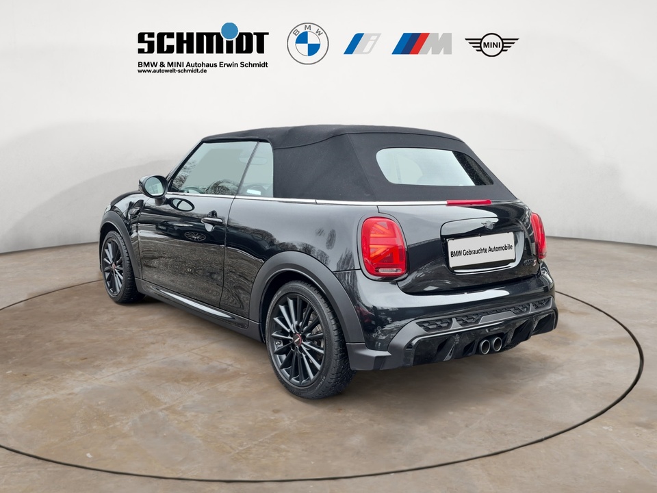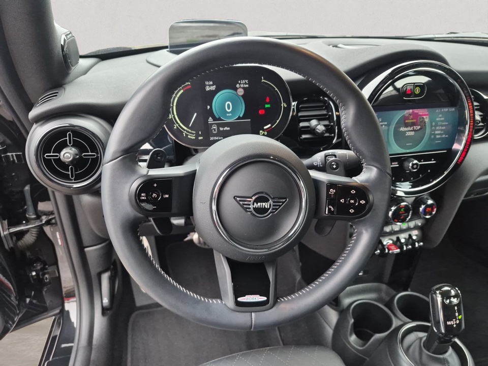 Sport-Automatikgetriebe Steptronic mit Doppelkupplung HiFi-Lautsprechersystem harman/kardon Driving Assistant 18' Leichtmetallräder Circuit Spoke 2-tone mit Notlaufeigenschaften Außenspiegelpaket Rückfahrkamera 2-Zonen-Klimaautomatik Parkassistent Komfortzugang (Keyless Entry) Sitzheizung für Fahrer und Beifahrer Windschutz Multifunktionales Instrumentendisplay Innenspiegel automatisch abblendend Ablagenpaket Armauflage vorn Außenspiegelkappen in Wagenfarbe Leder Cross PunchSonderausstattung ab Werk Adaptives Fahrwerk Bereifung mit Notlaufeigenschaften Sport-Lederlenkrad Nappa John Cooper Works Aerodynamic kit Piano Black Exterieur Fußmatten in Velours Interieuroberfläche Piano Black Ambientes Licht MINI Driving ModesSerienaustattung Vier Sitzplätze mit Sitzkonfiguration: 2+2 Sechs Lautsprecher und Subwoofer 4 Scheibenbremsen (2 innenbelüftet) ABS Fernbedienbare Heckklappenfernentriegelung Geschwindigkeitsregelanlage Leseleuchten vorne und hinten Beleuchteter Make-up-Spiegel für Fahrer und Beifahrer Einparkhilfe hinten Radar Frontantrieb Sperrdifferential mit begrenztem Schlupf elektronisches und vorne Antriebs-Schlupf-Regelung Eins Turboaufladung Kraftstoffsystem mit direkter Benzineinspritzung Kraftstoff : bleifrei, 95 Oktan Tankinhalt 44 Liter Außentemperaturanzeige Bordcomputer mit Durchschnittsgeschwindigkeit, Durchschnittskraftstoffverbrauch, momentaner Kraftstoffverbrauch und Reichweite Tagfahrlicht Zentralverriegelung mit Schließung der elektr. Fenster Motorleistung nach EEC : Maximalleistung in KW: 131 , Maximalleistung in PS: 178 bei 5.000 U/min , Maximales Drehmoment in Nm: 280 bei 1.350 U/min Elektrisch Softtopes mit Heckfenster aus Glas Fahrer-Airbag intelligent, Beifahrer-Airbag mit Deaktivierung für Beifahrerairbag intelligent Seiten-Airbag vorne 2 Kopfstützen vorne, 2 höhenverstellbare Kopfstützen hinten Sicherheitsgurte vorn für Fahrer und Beifahrer , Gurtstraffer vorne Sicherheitsgurte hinten links und rechts Fahrersitz und Beifahrersitz Sportsitz mit mechanischer Lehnenneigungsverstellung, mechanischer Längsverstellung, mechanischer Höhenverstellung und mechanischer Oberschenkelauflage Multifunktions-Lederlenkrad höhenverstellbar und längsverstellbar Unabhängige Ein-Gelenk-Federbeinachse mit Stabilisator und Schrauben-Federung vorne, Unabhängige Mehrlenkerachse mit Stabilisator und Schrauben-Federung hinten Aktive Radaufhängung mit wählbarer Einstellung elektronisch Windschutzscheiben-Wisch-Wasch-Anlage mit Regensensor Elektrische Fensterheber mit Impulsschaltung für zwei Fenster vorn Gewichte: Zulässiges Gesamtgewicht (kg): 1.745, Leergewicht (kg): 1.380, Anhängelast gebremst (kg): 0 und Anhängelast ungebremst (kg): 0 Elektr. Bremskraftverteilung Isofix Telematik mit automatischem Notruf, mit SIM im Fahrzeug, Tracking System und Concierge Service Monate inkl.: Partikelfilter Kraftstoffverbrauch ECE 99/100, 8,4 l/100 km Stadt, 5,4 l/100 km Überland und 6,5 l/100 km kombiniert, Kraftstoffverbrauch WLTP ICE, 6,6 l/100 km kombiniert, 6,5, 6,9, 15,4 und 14,5 Crash Warnsystem Müdigkeitswarnung, visuelle/akustische Warnung, Funktion über 130 km/h 78 mph und Funktion über 50 km/h 30 mph Bluetooth inkl. Musik Streaming Start/Stop Multi-Funktions-Monitor mit 8,8 Zoll Bildschirm und Touch-Bedienung Armaturenbrett 1, Drehrad und Bildschirmgröße (cm): 22,4 Energie Rückgewinnung Motor Fahrereinstellungen Motorcharakteristik, Lenkung und Fahrwerk Fernbedienung Klimaanlage per Telefon und mit Kühlen Installierte Apps 4 Airbags Ambientelicht Media Control Drehrad und Touch Screen WLTP Emissionen ICE, kombiniert: 149,0, kombiniert Fzg niedrig: 148,0 und kombiniert Fzg hoch: 157,0 Elektrisches System 12 Remote Services Fensterbruchwarnung, Fahrzeug finden, Ton/Blinken, 999 Monate inklusive Notruf Optik Schwarz USB Ladeanschluss vorne TürschwellerschutzWeitere Ausstattung inkl. 24 Monate BMW Premium Selection Garantie, ohne jegliche Selbstbeteiligung im Schadensfall!GarantieMINI NEXTIrrtümer und Zwischenverkauf vorbehalten.(CRCO 13.01.2026 18.21)