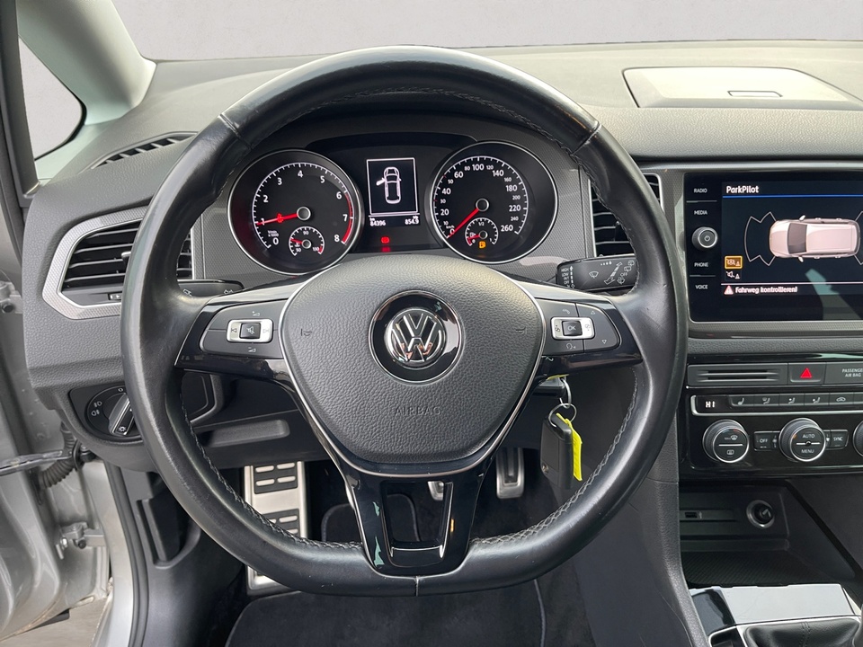 Lackierung Metallic Licht- und Sicht-Paket Dachreling schwarz Car-Net App-Connect und 'Volkswagen Media Control' Außenspiegel elektrisch einstell-, anklapp-, beheizbar, Umfeldbeleuchtung, Beifahrerspiegelabsenkung, Memory RaucherausführungSerienaustattung Fünf Sitzplätze mit Sitzkonfiguration: 2+3 Acht Lautsprecher 4 Scheibenbremsen (2 innenbelüftet) ABS Fernbedienbare Heckklappenfernentriegelung Leseleuchten vorne und hinten Beleuchteter Make-up-Spiegel für Fahrer und Beifahrer Einparkhilfe vorne, hinten Radar Frontantrieb Sperrdifferential mit begrenztem Schlupf elektronisches und vorne Antriebs-Schlupf-Regelung Eins Turboaufladung Kraftstoffsystem mit direkter Benzineinspritzung Kraftstoff : bleifrei, 95 Oktan Tankinhalt 50 Liter Außentemperaturanzeige Bordcomputer mit Durchschnittsgeschwindigkeit, Durchschnittskraftstoffverbrauch, momentaner Kraftstoffverbrauch und Reichweite Abbiegelicht Tagfahrlicht Kopf-/Dach Airbag vorn und hinten Zentralverriegelung (mit Fernbedienung) mit Schließung der elektr. Fenster Motorleistung nach EEC : Maximalleistung in KW: 81 , Maximalleistung in PS: 110 und Maximales Drehmoment in Nm: 200 bei 2.000 U/min Fahrer-Airbag, Beifahrer-Airbag mit Deaktivierung für Beifahrerairbag Seiten-Airbag vorne 2 höhenverstellbare Kopfstützen vorne, 3 höhenverstellbare Kopfstützen hinten Sicherheitsgurte vorn mit Gurthöhenverstellung für Fahrer und Beifahrer , Gurtstraffer vorne Sicherheitsgurte hinten links, Sicherheitsgurte hinten rechts, Dreipunkt-Gurt hinten Mitte : Armlehne für Vordersitze Armlehne für Rücksitze Fahrersitz und Beifahrersitz Einzelsitz mit Tisch an der Sitzrückseite, Sitzheizung, mechanischer Lehnenneigungsverstellung, mechanischer Längsverstellung, mechanischer Höhenverstellung und mechanischer Lordosenstütze Multifunktions-Lederlenkrad höhenverstellbar und längsverstellbar Kühlbox Handschuhfach Unabhängige Ein-Gelenk-Federbeinachse mit Stabilisator und Schrauben-Federung vorne, Halb unabhängige Verbundlenkerachse mit Schrauben-Federung hinten 6-Gang Schaltgetriebe manuell Windschutzscheiben-Wisch-Wasch-Anlage Elektrische Fensterheber mit Impulsschaltung für zwei Fenster vorn und hinten Gewichte: Zulässiges Gesamtgewicht (kg): 1.850, Leergewicht (kg): 1.340, Anhängelast gebremst (kg): 1.500 und Anhängelast ungebremst (kg): 670 Navigationssystem mit Bedienung über Touch Screen, Datenquelle: SD-Karte (Farbe), 8,0 Zoll-Bildschirm und 20,3 Elektr. Bremskraftverteilung Verkehrsinformationssystem Isofix CD Spieler im Handschuhfach, Kapazität: 1, Medienart: CD Kraftstoffverbrauch ECE 99/100, 6,0 l/100 km Stadt, 4,4 l/100 km Überland und 5,0 l/100 km kombiniert Knie-Airbags Fahrer Crash Warnsystem aktiviert Sicherheitsgurte, aktiviert Bremslicht, Müdigkeitswarnung, automatisches Bremsen, Bremst bei niedriger Geschwindigkeit, Fußgängerschutz Bluetooth inkl. Telefonbedienung und inkl. Musik Streaming Start/Stop Sichtschutzglas hinten und Seite hinten Multi-Funktions-Monitor mit 8,0 Zoll Bildschirm und Touch-Bedienung Armaturenbrett 1, Drehrad und 20,3 Energie Rückgewinnung Motor Wifi Netzwerk Dynamische Lenkung Installierte Apps 7 Airbags Media Control Touchscreen Elektrisches System 12Weitere Ausstattung kein Verkauf an privat in EU, NO SALE TO PRIVAT PEOPLE IN THE EUROPEAN UNIONIrrtümer und Zwischenverkauf vorbehalten.(CRCO 17.01.2026 04.25)