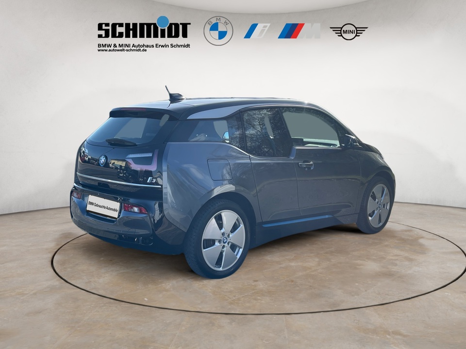 Comfort Paket Navigationssystem Business Parkassistenzpaket Metallic-Lackierung Sitzheizung für Fahrer und Beifahrer Fußmatten in Velours, anthrazit Reifenreparatur-Set GetränkehalterSonderausstattung ab Werk Radschraubensicherung Rückfahrkamera Innen- u. Außenspiegelpaket Armauflage vorne mit Innenfach Ablagenpaket Park Distance Control (PDC) vorn/hinten Klimaautomatik mit 2-Zonen-Regelung Geschwindigkeitsregelung mit Bremsfunktion ParkassistentSerienaustattung Vier Sitzplätze mit Sitzkonfiguration: 2+2 Vier Lautsprecher 4 Scheibenbremsen (4 innenbelüftet) ABS Make-up-Spiegel für Fahrer und Beifahrer Einparkhilfe hinten Sensor Heckantrieb Antriebs-Schlupf-Regelung Elektroantrieb Reichweite: 359,00, Batteriespannung: 352,0, Batterie kWh: 42,20, Reichweite (Meilen): 223,07, Schnelllader: Schnelllader, Onboard Charger (kW): 11,0, Batterie aktiv beheizt/gekühlt Batterie aktiv beheizt/gekühlt, Anzahl Batteriemodule: 8, Typ Batteriezelle: prismatisch und Batteriehersteller: Samsung SDI Kraftstoff : Elektro Bordcomputer mit Durchschnittskraftstoffverbrauch Tagfahrlicht Kopf-/Dach Airbag vorn und hinten Zentralverriegelung Motorleistung nach EEC : Maximalleistung in KW: 125 , Maximalleistung in PS: 170 bei 4.800 U/min , Maximales Drehmoment in Nm: 149 Maximalleistung Elektomotor in PS: 170, Maximalleistung Elektomotor in kW: 125 und Maximales Drehmoment Elektromotor in Nm: 149 Fahrer-Airbag, Beifahrer-Airbag mit Deaktivierung für Beifahrerairbag Seiten-Airbag vorne 2 Kopfstützen vorne, 2 höhenverstellbare Kopfstützen hinten Sicherheitsgurte vorn für Fahrer und Beifahrer Sicherheitsgurte hinten links und rechts Fahrersitz und Beifahrersitz Einzelsitz mit mechanischer Lehnenneigungsverstellung, mechanischer Längsverstellung und mechanischer Höhenverstellung Lederlenkrad höhenverstellbar und längsverstellbar Unabhängige Ein-Gelenk-Federbeinachse mit Stabilisator und Schrauben-Federung vorne, Unabhängige Mehrlenkerachse mit Stabilisator und Schrauben-Federung hinten 1-Gang Automatikgetriebe mit Schalthebel an der Lenksäule Automatik Windschutzscheiben-Wisch-Wasch-Anlage Elektrische Fensterheber mit Impulsschaltung für zwei Fenster vorn Gewichte: Zulässiges Gesamtgewicht (kg): 1.710, Leergewicht (kg): 1.345, Anhängelast gebremst (kg): 0 und Anhängelast ungebremst (kg): 0 Isofix Telematik mit automatischem Notruf und mit SIM im Fahrzeug Kraftstoffverbrauch ECE 99/100 Lokale Sprache Deutsch, BMW, i3 und i3 (120 Ah), 125kW Bluetooth Preis einschließlich Display mit 5,70 Zoll Bildschirm Kombiinstrument 1 und Bildschirmgröße (cm):, Display mit 6,50 Zoll Bildschirm Armaturenbrett 1 und Bildschirmgröße (cm): Energie Rückgewinnung Plug-in Elektrisch angetriebene Räder hinten Fahrereinstellungen Motorcharakteristik und Lenkung Ladeinformation mode 4, 0,70, 400 und 50,00, Ladeinformation mode 2, 15,00, 240 und 10, Ladeinformation mode 3 und 11,00 Elektromotor 1, 170,0 PS, 125,0 kW, 250 Nm und AC permanent Magnet synchron Batterie-Fernmanagement inklusive Batteriestatus, Fernaktivierung Ladefunktion, Fernaktivierung Ladefunktion Timer, Fern-Vorheizung Batterie und Information vollständige Ladung Fernbedienung Klimaanlage per Schlüssel, per Internet und per Telefon Energieverbrauch 13,1 Installierte Apps App-Steuerung Akustisches Fußgänger-Warnsystem 6 Airbags WLTP Emissionen ICE, kombiniert: 0,0, kombiniert Fzg niedrig: 0,0 und kombiniert Fzg hoch: 0,0 Elektrisches System Ladestecker Type 2 (Mennekes) und CCS (Combo) WLTP Stromverbrauch BEV/HEV electric energy consumption und 150,0 WLTP Elektroreichweite BEV Pure electric range, 307, 310 und 285 Energieeffizienzklasse: A+Weitere Ausstattung inkl. 24 Monate BMW Premium Selection Garantie, ohne jegliche Selbstbeteiligung im Schadensfall!BemerkungBehördenfahrzeug - Vorbesitz Bundeswehr