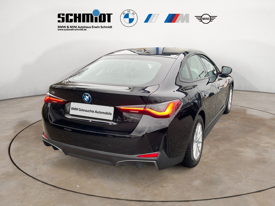 Driving Assistant Aktive Geschwindigkeitsregelung mit Stop&Go-Funktion (ACC) Sitzheizung für Fahrer und Beifahrer Innen- und Außenspiegel Paket Lenkradheizung Lordosenstütze für Fahrer und Beifahrer Ablage für Wireless Charging Modellschriftzug Entfall am Heck rechts Entfall spezifischer Designumfänge ExterieurSonderausstattung ab Werk Sport-Lederlenkrad Radschraubensicherung Innenspiegel.automatisch abblendend Ablagenpaket Interieurleisten Schwarz hochglänzend Ladekabel Professional (Mode 3) für öffentliches Laden Klimaautomatik Parking Assistant M Hochglanz Shadow Line Vorbereitung Fahrerassistenz ISerienaustattung Elektrische Heckklappen-Zuziehhilfe Geschwindigkeitsregelanlage Einparkhilfe vorne Sensor, Einparkhilfe hinten Sensor & Kamera, Einparkhilfe seitlich Sensor Elektroantrieb Batteriespannung: 353,0, Batterie Ah: 199,0, Batterie kWh: 70,20, Schnelllader: Schnelllader, Onboard Charger (kW): 11,0, Batterie aktiv beheizt/gekühlt Batterie aktiv beheizt/gekühlt, Typ Batteriezelle: prismatisch, eingeschlossene kW: 0, Anzahl Monate Vertrag inklusive: 0, 67,00, 0,0 kW maximales kabelloses Laden Tagfahrlicht Kopf-/Dach Airbag vorn und hinten Fahrer-Airbag, Beifahrer-Airbag mit Deaktivierung für Beifahrerairbag Seiten-Airbag vorne Armlehne für Rücksitze Fahrersitz und Beifahrersitz Sportsitz mit mechanischer Lehnenneigungsverstellung, mechanischer Längsverstellung, mechanischer Höhenverstellung und mechanischer Oberschenkelauflage Navigationssystem mit Bedienung über Touch Screen, Datenquelle: Internet (Farbe), 14,90 Zoll-Bildschirm, Verkehrsinformation und Verkehrsinfo Monate inklusive: 24 Vorbereitung Featrues on demand Sprachbedienung herstellereigen Telematik mit automatischem Notruf, mit SIM im Fahrzeug, Tracking System, Concierge Service Monate inkl.: und Pannenhilfe Lokale Sprache Deutsch, BMW, i4, eDrive35 und eDrive35 Crash Warnsystem aktiviert Bremslicht, Müdigkeitswarnung, automatische Notbremsung, Front und Heck Mindestgeschw. Zur Aktivierung: 10 km/h Fußgängerschutz, visuelle/akustische Warnung, Funktion über 130 km/h 78 mph, Funktion über 50 km/h 30 mph und Funktion unter 50 km/h 30 mph Bluetooth Spurassistent aktiviert Lenkung Einparkassistent hinten, vollautomatisches Einparken 90° und autom. Bremsen während Parkvorgang Multi-Funktions-Monitor mit 12,30 Zoll Bildschirm Kombi-Instrumente 1, Bildschirmgröße (cm): und Wahlrad, Multi-Funktions-Monitor mit 14,90 Zoll Bildschirm und Touch-Bedienung Armaturenbrett 1, Bildschirmgröße (cm):, fix, Drehknopf, Touchpadsteuerung und nein Energie Rückgewinnung Ein-Pedal Betrieb und Stufenauswahl Parkplatzinformation Plug-in Elektrisch angetriebene Räder hinten Verkehrszeichenerkennung Interner Speicher/Festplatte Fahrereinstellungen Motorcharakteristik, Stabilitätskontrolle und Traktionskontrolle Ladeinformation mode 4, 0,53, 180,00, Angabe bereitgestellte kW, Ladezustand beginnt bei %:, Ladezustand endet bei %:, berechnete Ladedauer (Std. 50 kW 10-80%):, berechnete Ladedauer (Std. 100 kW 10-80%): und berechnete Ladedauer (Std. max kW 10-80%):, Ladeinformation mode 2, 34,00, 230, 10, Angabe bereitgestellte kW, Ladezustand beginnt bei %: und Ladezustand endet bei %:, Ladeinformation mode 3, 7,00, 230, 16, 11,00, Angabe bereitgestellte kW, Ladezustand beginnt bei %:, Ladezustand endet bei %:, berechnete Ladedauer (Std. 3,7 kW 0-100%):, berechnete Ladedauer (Std. 7,4 kW 0-100%): und berechnete Ladedauer (Std. max kW 0-100%): Elektromotor 1, 286,0 PS, 210,0 kW, 400 Nm, AC permanent Magnet synchron und hinten Batterie-Fernmanagement inklusive Batteriestatus, Fernaktivierung Ladefunktion, Fernaktivierung Ladefunktion Timer, Fern-Vorheizung Batterie und Information vollständige Ladung Anzahl Monate Vertrag inklusive: 999 Fernbedienung Klimaanlage per Telefon, mit Zeitschaltuhr, mit Heizen und mit Kühlen Installierte Apps App-Steuerung Text - Sprache/Sprache - Text Akustisches Fußgänger-Warnsystem 6 Airbags Mobiltelefonintegration Apple CarPlay, Android Auto, Apple Monate inklusive: 999, Android Monate inklusive: 999, MirrorLink Monate inklusive: 0, Apple drahtlos und Android drahtlos WLTP Emissionen BEV und kombiniert: 0,0 Elektrisches System Ladestecker Type 2 (Mennekes) und Ladeanschluss AC 1 Position Anschluss DC3: hinten seitlich, Ladestecker CCS (Combo) und Ladeanschluss DC 1 Position Anschluss DC1: hinten seitlich WLTP Stromverbrauch BEV/HEV electric energy consumption, 159,0, 158,0 und 187,0Weitere Ausstattung SCHMIDT- Garantiepaket - 5 Jahre ab Erstzulassung! inkl. 24 Monate BMW Premium Selection Garantie, ohne jegliche Selbstbeteiligung im Schadensfall!GarantieBMW Premium SelectionIrrtümer und Zwischenverkauf vorbehalten.(CRCO 18.01.2026 12.03)
