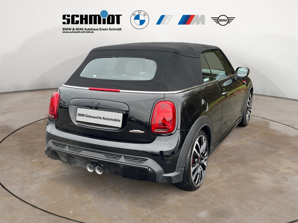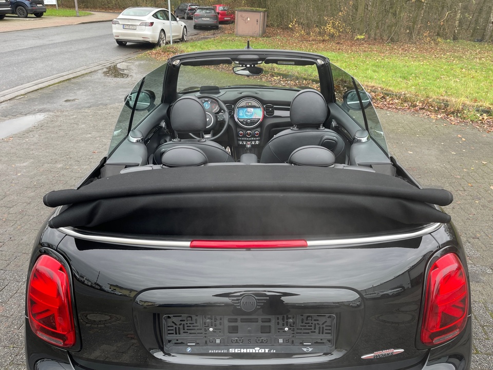 Connected Navigation Plus Komfortpaket Plus Fahrerassistenzpaket Plus Driving Assistant Außenspiegelpaket MINI Yours Leder Lounge Carbon Black Adaptive LED-Scheinwerfer mit Bi-LEDs für Abblend- und Fernlichtfunktion Parkassistent Rückfahrkamera 2-Zonen-Klimaautomatik Alarmanlage Sitzheizung für Fahrer und Beifahrer Windschutz Komfortzugang (Keyless Entry) Aktive Geschwindigkeitsregelung (ACC) (ACC) Lenkradheizung Multifunktionales Instrumentendisplay Innenspiegel automatisch abblendend Ablagenpaket Always Open Timer Armauflage vorn Außenspiegelkappen in Wagenfarbe Fußmatten in VeloursSonderausstattung ab Werk Adaptives Fahrwerk Bereifung mit Notlaufeigenschaften Sport-Lederlenkrad Nappa Piano Black Exterieur Sportsitze für Fahrer und Beifahrer Interieuroberfläche Piano Black Ambientes Licht MINI Driving Modes Lichtpaket MINI Head-Up Display Concierge Service John Cooper Works Trim PaketSerienaustattung Vier Sitzplätze mit Sitzkonfiguration: 2+2 Sechs Lautsprecher und Subwoofer 4 Scheibenbremsen (2 innenbelüftet) ABS Fernbedienbare Heckklappenfernentriegelung Geschwindigkeitsregelanlage Leseleuchten vorne und hinten Beleuchteter Make-up-Spiegel für Fahrer und Beifahrer Einparkhilfe hinten Radar Frontantrieb Sperrdifferential mit begrenztem Schlupf elektronisches und vorne Antriebs-Schlupf-Regelung Turboaufladung Kraftstoffsystem mit direkter Benzineinspritzung Kraftstoff : bleifrei, 95 Oktan Tankinhalt 44 Liter Außentemperaturanzeige Bordcomputer mit Durchschnittsgeschwindigkeit, Durchschnittskraftstoffverbrauch, momentaner Kraftstoffverbrauch und Reichweite Tagfahrlicht Zentralverriegelung (mit Fernbedienung) mit Schließung der elektr. Fenster Motorleistung nach EEC : Maximalleistung in KW: 170 , Maximalleistung in PS: 231 bei 5.200 U/min , Maximales Drehmoment in Nm: 320 bei 1.450 U/min Elektrisch Softtopes mit Heckfenster aus Glas Fahrer-Airbag intelligent, Beifahrer-Airbag mit Deaktivierung für Beifahrerairbag intelligent Seiten-Airbag vorne 2 Kopfstützen vorne, 2 höhenverstellbare Kopfstützen hinten Sicherheitsgurte vorn für Fahrer und Beifahrer , Gurtstraffer vorne Sicherheitsgurte hinten links und rechts Fahrersitz und Beifahrersitz Sportsitz mit mechanischer Lehnenneigungsverstellung, mechanischer Längsverstellung, mechanischer Höhenverstellung und mechanischer Oberschenkelauflage Multifunktions-Lederlenkrad höhenverstellbar und längsverstellbar Unabhängige Ein-Gelenk-Federbeinachse mit Stabilisator und Schrauben-Federung vorne, Unabhängige Mehrlenkerachse mit Stabilisator und Schrauben-Federung hinten Sportfahrwerk Aktive Radaufhängung mit wählbarer Einstellung elektronisch 6-Gang Schaltgetriebe manuell Windschutzscheiben-Wisch-Wasch-Anlage mit Regensensor Elektrische Fensterheber mit Impulsschaltung für zwei Fenster vorn Gewichte: Zulässiges Gesamtgewicht (kg): 1.770, Leergewicht (kg): 1.415, Anhängelast gebremst (kg): 0 und Anhängelast ungebremst (kg): 0 Sportauspuff Elektr. Bremskraftverteilung Isofix Telematik mit automatischem Notruf, mit SIM im Fahrzeug und Concierge Service Monate inkl.: Partikelfilter Kraftstoffverbrauch ECE 99/100, 9,4 l/100 km Stadt, 5,8 l/100 km Überland, 7,1 l/100 km kombiniert und EU6d, Kraftstoffverbrauch WLTP ICE, 7,1 l/100 km kombiniert, 7,1, 7,4, 14,1 und 13,5 Crash Warnsystem Müdigkeitswarnung, visuelle/akustische Warnung, Funktion über 130 km/h 78 mph und Funktion über 50 km/h 30 mph Bluetooth inkl. Musik Streaming Start/Stop Multi-Funktions-Monitor mit 8,8 Zoll Bildschirm und Touch-Bedienung Armaturenbrett 1, Drehrad und Bildschirmgröße (cm): 22,4 Energie Rückgewinnung Motor Fahrereinstellungen Motorcharakteristik, Lenkung und Fahrwerk 4 Airbags Ambientelicht Media Control Drehrad und Touch Screen WLTP Emissionen ICE, kombiniert: 161,0, kombiniert Fzg niedrig: 161,0 und kombiniert Fzg hoch: 167,0 Elektrisches System 12 Notruf Optik Schwarz USB Ladeanschluss vorne TürschwellerschutzWeitere Ausstattung inkl. 24 Monate BMW Premium Selection Garantie, ohne jegliche Selbstbeteiligung im Schadensfall!GarantieMINI NEXTIrrtümer und Zwischenverkauf vorbehalten.(CRCO 15.01.2026 19.35)
