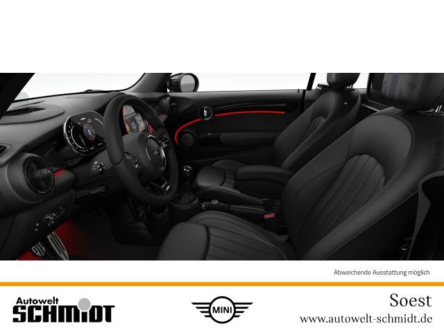 Connected Navigation Plus Komfortpaket Plus Fahrerassistenzpaket Plus Driving Assistant Außenspiegelpaket MINI Yours Leder Lounge Carbon Black Adaptive LED-Scheinwerfer mit Bi-LEDs für Abblend- und Fernlichtfunktion Parkassistent Rückfahrkamera 2-Zonen-Klimaautomatik Alarmanlage Sitzheizung für Fahrer und Beifahrer Windschutz Komfortzugang (Keyless Entry) Aktive Geschwindigkeitsregelung (ACC) (ACC) Lenkradheizung Multifunktionales Instrumentendisplay Innenspiegel automatisch abblendend Ablagenpaket Always Open Timer Armauflage vorn Außenspiegelkappen in Wagenfarbe Fußmatten in VeloursSonderausstattung ab Werk Adaptives Fahrwerk Bereifung mit Notlaufeigenschaften Sport-Lederlenkrad Nappa Piano Black Exterieur Sportsitze für Fahrer und Beifahrer Interieuroberfläche Piano Black Ambientes Licht MINI Driving Modes Lichtpaket MINI Head-Up Display Concierge Service John Cooper Works Trim PaketSerienaustattung Vier Sitzplätze mit Sitzkonfiguration: 2+2 Sechs Lautsprecher und Subwoofer 4 Scheibenbremsen (2 innenbelüftet) ABS Fernbedienbare Heckklappenfernentriegelung Geschwindigkeitsregelanlage Leseleuchten vorne und hinten Beleuchteter Make-up-Spiegel für Fahrer und Beifahrer Einparkhilfe hinten Radar Frontantrieb Sperrdifferential mit begrenztem Schlupf elektronisches und vorne Antriebs-Schlupf-Regelung Turboaufladung Kraftstoffsystem mit direkter Benzineinspritzung Kraftstoff : bleifrei, 95 Oktan Tankinhalt 44 Liter Außentemperaturanzeige Bordcomputer mit Durchschnittsgeschwindigkeit, Durchschnittskraftstoffverbrauch, momentaner Kraftstoffverbrauch und Reichweite Tagfahrlicht Zentralverriegelung (mit Fernbedienung) mit Schließung der elektr. Fenster Motorleistung nach EEC : Maximalleistung in KW: 170 , Maximalleistung in PS: 231 bei 5.200 U/min , Maximales Drehmoment in Nm: 320 bei 1.450 U/min Elektrisch Softtopes mit Heckfenster aus Glas Fahrer-Airbag intelligent, Beifahrer-Airbag mit Deaktivierung für Beifahrerairbag intelligent Seiten-Airbag vorne 2 Kopfstützen vorne, 2 höhenverstellbare Kopfstützen hinten Sicherheitsgurte vorn für Fahrer und Beifahrer , Gurtstraffer vorne Sicherheitsgurte hinten links und rechts Fahrersitz und Beifahrersitz Sportsitz mit mechanischer Lehnenneigungsverstellung, mechanischer Längsverstellung, mechanischer Höhenverstellung und mechanischer Oberschenkelauflage Multifunktions-Lederlenkrad höhenverstellbar und längsverstellbar Unabhängige Ein-Gelenk-Federbeinachse mit Stabilisator und Schrauben-Federung vorne, Unabhängige Mehrlenkerachse mit Stabilisator und Schrauben-Federung hinten Sportfahrwerk Aktive Radaufhängung mit wählbarer Einstellung elektronisch 6-Gang Schaltgetriebe manuell Windschutzscheiben-Wisch-Wasch-Anlage mit Regensensor Elektrische Fensterheber mit Impulsschaltung für zwei Fenster vorn Gewichte: Zulässiges Gesamtgewicht (kg): 1.770, Leergewicht (kg): 1.415, Anhängelast gebremst (kg): 0 und Anhängelast ungebremst (kg): 0 Sportauspuff Elektr. Bremskraftverteilung Isofix Telematik mit automatischem Notruf, mit SIM im Fahrzeug und Concierge Service Monate inkl.: Partikelfilter Kraftstoffverbrauch ECE 99/100, 9,4 l/100 km Stadt, 5,8 l/100 km Überland, 7,1 l/100 km kombiniert und EU6d, Kraftstoffverbrauch WLTP ICE, 7,1 l/100 km kombiniert, 7,1, 7,4, 14,1 und 13,5 Crash Warnsystem Müdigkeitswarnung, visuelle/akustische Warnung, Funktion über 130 km/h 78 mph und Funktion über 50 km/h 30 mph Bluetooth inkl. Musik Streaming Start/Stop Multi-Funktions-Monitor mit 8,8 Zoll Bildschirm und Touch-Bedienung Armaturenbrett 1, Drehrad und Bildschirmgröße (cm): 22,4 Energie Rückgewinnung Motor Fahrereinstellungen Motorcharakteristik, Lenkung und Fahrwerk 4 Airbags Ambientelicht Media Control Drehrad und Touch Screen WLTP Emissionen ICE, kombiniert: 161,0, kombiniert Fzg niedrig: 161,0 und kombiniert Fzg hoch: 167,0 Elektrisches System 12 Notruf Optik Schwarz USB Ladeanschluss vorne TürschwellerschutzWeitere Ausstattung inkl. 24 Monate Euro Plus Garantie, ohne jegliche Selbstbeteiligung im Schadensfall!GarantieMINI NEXTIrrtümer und Zwischenverkauf vorbehalten.(CRCO 25.11.2025 12.04)