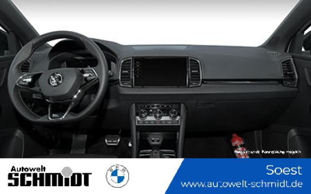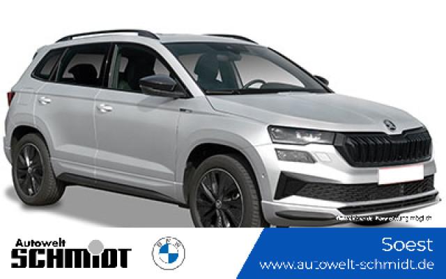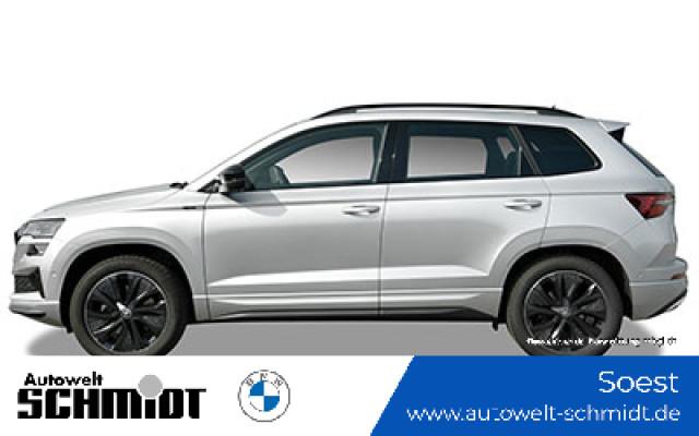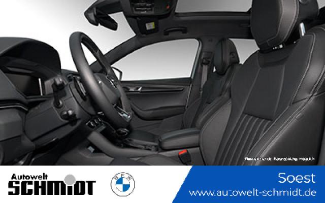 Lounge Innenausstattung Parken - Parksensoren vorne und hinten, RückfahrkameraSerienaustattung Fünf Sitzplätze mit Sitzkonfiguration: 2+3 Acht Lautsprecher Vorbereitung Anhängevorrichtung 4 Scheibenbremsen (2 innenbelüftet) ABS Geschwindigkeitsregelanlage Beleuchteter Make-up-Spiegel für Fahrer und Beifahrer Einparkhilfe hinten Sensor Frontantrieb Sperrdifferential mit begrenztem Schlupf elektronisches und vorne Antriebs-Schlupf-Regelung Eins Turboaufladung Kraftstoffsystem mit direkter Benzineinspritzung Kraftstoff : bleifrei, 95 Oktan Tankinhalt 50 Liter Bordcomputer mit Durchschnittskraftstoffverbrauch Abbiegelicht Tagfahrlicht Kopf-/Dach Airbag vorn und hinten Zentralverriegelung über Kartenschlüssel mit Schließung der elektr. Fenster Motorleistung nach EEC : Maximalleistung in KW: 110 , Maximalleistung in PS: 150 und Maximales Drehmoment in Nm: 250 bei 1.500 U/min Dachreling schwarz Fahrer-Airbag, Beifahrer-Airbag mit Deaktivierung für Beifahrerairbag Seiten-Airbag vorne 2 integrierte Kopfstützen vorne, 3 Kopfstützen hinten Sicherheitsgurte vorn mit Gurthöhenverstellung für Fahrer und Beifahrer , Gurtstraffer vorne Sicherheitsgurte hinten links, Sicherheitsgurte hinten rechts, Dreipunkt-Gurt hinten Mitte : Armlehne für Vordersitze Armlehne für Rücksitze Fahrersitz und Beifahrersitz Sportsitz mit Sitzheizung, mechanischer Lehnenneigungsverstellung, mechanischer Längsverstellung, mechanischer Höhenverstellung und mechanischer Lordosenstütze Multifunktions-Alu & Lederlenkrad beheizt, höhenverstellbar und längsverstellbar Kühlbox Handschuhfach Unabhängige Ein-Gelenk-Federbeinachse mit Stabilisator und Schrauben-Federung vorne, Unabhängige Mehrlenkerachse mit Stabilisator und Schrauben-Federung hinten Aktive Radaufhängung mit wählbarer Einstellung elektronisch 7-Gang Automatikgetriebe mit manueller Gangwahl und Schalthebel am Lenkrad sequentiell-manuell, Doppelkupplung sequenziell mit Autom. und Schaltwippen Windschutzscheiben-Wisch-Wasch-Anlage mit Regensensor Elektrische Fensterheber mit Impulsschaltung für zwei Fenster vorn und hinten Gewichte: Zulässiges Gesamtgewicht (kg): 1.940, Leergewicht (kg): 1.460, Anhängelast gebremst (kg): 1.500 und Anhängelast ungebremst (kg): 700 Vorbereitung Featrues on demand Isofix Sprachbedienung herstellereigen Telematik mit automatischem Notruf, mit SIM im Fahrzeug, Tracking System, Concierge Service Monate inkl.: und Pannenhilfe Zylinderabschaltung Partikelfilter Kraftstoffverbrauch WLTP ICE, 6,1 l/100 km kombiniert, EU6AP, 8,0, 12,5, 6,0, 16,7, 5,2, 19,2, 6,3, 15,9, 29, 39, 45 und 37 Knie-Airbags Fahrer Lokale Sprache Deutsch, ?KODA, Karoq, 1.5l TSI ACT DSG Sportline, Sportline und 1.5l TSI ACT DSG Sportline Autom. Warnblinker bei starker Bremsung Crash Warnsystem aktiviert Bremslicht, Müdigkeitswarnung, automatische Notbremsung, Bremst bei niedriger Geschwindigkeit Mindestgeschw. Zur Aktivierung: 5 km/h Fußgängerschutz, visuelle/akustische Warnung, Funktion über 130 km/h 78 mph, Funktion über 50 km/h 30 mph und Funktion unter 50 km/h 30 mph Bluetooth Start/Stop Spurassistent Doppelkupplung mit manuellem Modus Sichtschutzglas hinten und Seite hinten Multi-Funktions-Monitor mit 10,20 Zoll Bildschirm Kombi-Instrumente 1 und Bildschirmgröße (cm):, Multi-Funktions-Monitor mit 8,00 Zoll Bildschirm und Touch-Bedienung Armaturenbrett 1, Bildschirmgröße (cm):, fix und nein Energie Rückgewinnung Verkehrszeichenerkennung Fahrereinstellungen Motorcharakteristik, Lenkung, Fahrwerk, Stabilitätskontrolle und Traktionskontrolle Wifi Netzwerk Verbindungsart: eingebaute SIM-Karte Kabelloses Ladekissen Installierte Apps App-Steuerung Text - Sprache/Sprache - Text Multikollisionsbremse 7 Airbags Mobiltelefonintegration Apple CarPlay, Android Auto, Apple Monate inklusive: 999, Android Monate inklusive: 999, MirrorLink Monate inklusive: 0, Apple drahtlos und Android drahtlos Ambientelicht einhüllend und Farbauswahl WLTP Emissionen ICE, kombiniert: 140,0, Phase niedrig: 181,0, Phase mittel: 137,0, Phase hoch: 119,0 und Phase extra-hoch: 144,0 Elektrisches System 12 Torque vectoring Differential Remote Services Diebstahlwarnung, Fensterbruchwarnung, Fahrzeug finden, Ton/Blinken, 36 Monate inklusive, Geo Fencing und Geschwindigkeitswarnung Unfalldatenschreiber Notruf USB Ladeanschluss vorneWeitere Ausstattung 12 Monate Gebrauchtwagengarantie inklusive!Irrtümer und Zwischenverkauf vorbehalten.(CRCO 08.12.2025 18.40)
