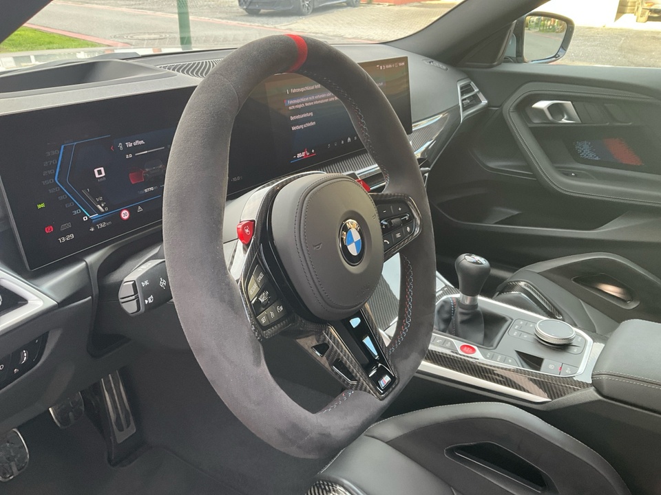 M Carbon Schalensitze M Carbondach Innovationspaket M Driver?s Package Vollleder Merino M Interieurleisten Carbon Fibre Sitzverstellung, elektrisch, mit Memory-Funktion für Fahrersitz M Alcantaralenkrad Manuelles Getriebe M Combound-Bremse Rot hochglänzend M Leuchten Shadow Line 19'/20' M Leichtmetallräder Doppelspeiche 930 M Silber mit Mischbereifung FernlichtassistentSonderausstattung ab Werk M Sportdifferenzial Reifenreparatur Set Adaptives Fahrwerk Alarmanlage Modellschriftzug - Entfall am Heck Komfortzugang Sonnenschutzverglasung Innen- und Außenspiegelpaket Innenspiegel.automatisch abblendend M Akzentflächen.illuminiert Ablagenpaket Sitzheizung für Fahrer und Beifahrer M Sicherheitsgurte Ambientes Licht Klimaautomatik mit 2-Zonen-Regelung Adaptiver LED-Scheinwerfer Parking Assistant HiFi Lautsprechersystem Wireless Charging Ablage BMW Live Cockpit Professional M Hochglanz Shadow Line M Dachhimmel AnthrazitSerienaustattung Vier Sitzplätze mit Sitzkonfiguration: 2+2 Zehn Lautsprecher Subwoofer 4 Scheibenbremsen (4 innenbelüftet) und lackierte Bremssättel ABS Geschwindigkeitsregelanlage Make-up-Spiegel für Fahrer und Beifahrer Einparkhilfe vorne Sensor, Einparkhilfe hinten Sensor & Kamera, Einparkhilfe seitlich Sensor Heckantrieb Sperrdifferential mit begrenztem Schlupf elektronisches und hinten Antriebs-Schlupf-Regelung Turboaufladung Kraftstoff : bleifrei, 98 Oktan Tankinhalt 52 Liter Bordcomputer mit Durchschnittskraftstoffverbrauch Tagfahrlicht Kopf-/Dach Airbag vorn und hinten Zentralverriegelung (mit Fernbedienung) Alarmanlage Motorleistung nach EEC : Maximalleistung in KW: 353 , Maximalleistung in PS: 480 bei 6.250 U/min , Maximales Drehmoment in Nm: 600 bei 2.700 U/min Fahrer-Airbag, Beifahrer-Airbag mit Deaktivierung für Beifahrerairbag Seiten-Airbag vorne 2 höhenverstellbare Kopfstützen vorne und hinten Sicherheitsgurte vorn für Fahrer und Beifahrer Sicherheitsgurte hinten links und rechts Armlehne für Vordersitze Fahrersitz und Beifahrersitz Sportsitz mit Sitzheizung, mechanischer Lehnenneigungsverstellung, mechanischer Längsverstellung und mechanischer Höhenverstellung Multifunktions-Alu & Lederlenkrad höhenverstellbar und längsverstellbar Unabhängige Ein-Gelenk-Federbeinachse mit Stabilisator und Schrauben-Federung vorne, Unabhängige Mehrlenkerachse mit Stabilisator und Schrauben-Federung hinten Sportfahrwerk Aktive Radaufhängung mit wählbarer Einstellung elektronisch Windschutzscheiben-Wisch-Wasch-Anlage mit Regensensor Elektrische Fensterheber mit Impulsschaltung für zwei Fenster vorn und hinten Gewichte: Zulässiges Gesamtgewicht (kg): 2.155, Leergewicht (kg): 1.805, Anhängelast gebremst (kg): 0 und Anhängelast ungebremst (kg): 0 Navigationssystem mit Bedienung über Touch Screen, Datenquelle: Internet 14,90 Zoll-Bildschirm, Verkehrsinformation und Verkehrsinfo Monate inklusive: 24 Vorbereitung Featrues on demand Isofix Sprachbedienung herstellereigen und KI unterstützt Telematik mit automatischem Notruf, mit SIM im Fahrzeug, Tracking System, Concierge Service Monate inkl.: und Pannenhilfe Kraftstoffverbrauch WLTP ICE, 9,7 l/100 km kombiniert, 9,6, 9,8, 10,4, 10,2, 25 und 24 Lokale Sprache Deutsch, BMW, 2er-Reihe, M2 Coupé und M2 Coupé Autom. Warnblinker bei starker Bremsung Crash Warnsystem aktiviert Bremslicht, automatische Notbremsung, Front und Heck, Fußgängerschutz, visuelle/akustische Warnung, Funktion über 130 km/h 78 mph, Funktion über 50 km/h 30 mph, Funktion unter 50 km/h 30 mph und Überwachung Fahrstil Bluetooth Start/Stop Spurassistent aktiviert Lenkung Sichtschutzglas hinten und Seite hinten Einparkassistent hinten, vollautomatisches Ein- und Ausparken 90° und autom. Bremsen während ParkvorgangWeitere Ausstattung SCHMIDT- Garantiepaket - 5 Jahre ab Erstzulassung! inkl. 24 Monate Euro Plus Garantie, ohne jegliche Selbstbeteiligung im Schadensfall! Unsere Fahrzeuge werden nach Kauf umgehend in die jeweiligen Börsen eingestellt. Bitte informieren Sie sich vor Ihrem Besuch bei unseren Verkäufern, ob das von Ihnen ausgesuchte Fahrzeug bereits eingetroffen und in unserer Ausstellung ist.BemerkungHANDSCHALTER !!!!