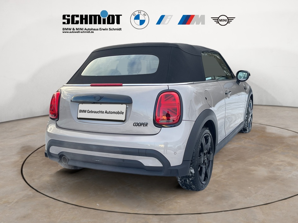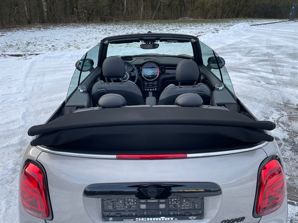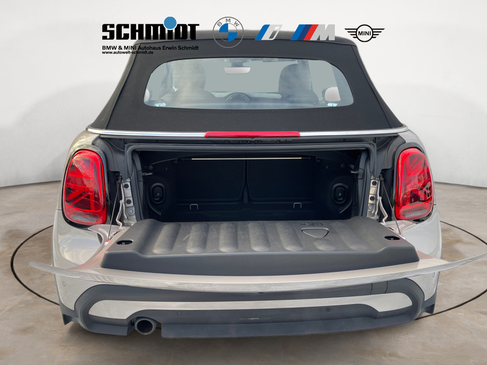 Ausstattungspaket Premium Plus 17' Leichtmetallräder Pedal Spoke Black MINI Navigationssystem MINI Head-Up Display Adaptives Fahrwerk Piano Black Exterieur Windschutz Multifunktionales Instrumentendisplay Motorhaubenstreifen schwarz Real-Time Traffic Information, RTTI Always Open Timer Reifenreparatur-SetSonderausstattung ab Werk Außenspiegelpaket Komfortzugang Rückfahrkamera Außenspiegelkappen schwarz Fußmatten in Velours Innenspiegel automatisch abblendend Armauflagen vorn Ablagepaket Sitzheizung für Fahrer und Beifahrer Interieuroberfläche Piano Black Ambientes Licht MINI Driving Modes Klimaautomatik Driving Assistant Parkassistent HiFi Lautsprechersystem Harman KardonSerienaustattung Vier Sitzplätze mit Sitzkonfiguration: 2+2 Sechs Lautsprecher Subwoofer 4 Scheibenbremsen (2 innenbelüftet) ABS Geschwindigkeitsregelanlage Beleuchteter Make-up-Spiegel für Fahrer und Beifahrer Einparkhilfe hinten Sensor Frontantrieb Sperrdifferential mit begrenztem Schlupf elektronisches und vorne Antriebs-Schlupf-Regelung Eins Turboaufladung Kraftstoffsystem mit direkter Benzineinspritzung Kraftstoff : bleifrei, 95 Oktan Tankinhalt 40 Liter Bordcomputer mit Durchschnittskraftstoffverbrauch Tagfahrlicht Zentralverriegelung über Kartenschlüssel mit Schließung der elektr. Fenster Motorleistung nach EEC : Maximalleistung in KW: 100 , Maximalleistung in PS: 136 bei 4.500 U/min , Maximales Drehmoment in Nm: 220 bei 1.500 U/min Elektrisch Softtopes mit Heckfenster aus Glas Fahrer-Airbag, Beifahrer-Airbag mit Deaktivierung für Beifahrerairbag Seiten-Airbag vorne 2 höhenverstellbare Kopfstützen vorne und hinten Sicherheitsgurte vorn für Fahrer und Beifahrer , Gurtstraffer vorne Sicherheitsgurte hinten links und rechts Armlehne für Vordersitze Fahrersitz und Beifahrersitz Sportsitz mit Sitzheizung, mechanischer Lehnenneigungsverstellung, mechanischer Längsverstellung, mechanischer Höhenverstellung und mechanischer Oberschenkelauflage Multifunktions-Lederlenkrad höhenverstellbar und längsverstellbar Unabhängige Ein-Gelenk-Federbeinachse mit Stabilisator und Schrauben-Federung vorne, Unabhängige Mehrlenkerachse mit Stabilisator und Schrauben-Federung hinten 7-Gang Automatikgetriebe mit manueller Gangwahl sequentiell-manuell und Doppelkupplung sequenziell mit Autom. Windschutzscheiben-Wisch-Wasch-Anlage mit Regensensor Elektrische Fensterheber mit Impulsschaltung für zwei Fenster vorn Gewichte: Zulässiges Gesamtgewicht (kg): 1.715, Leergewicht (kg): 1.360, Anhängelast gebremst (kg): 0 und Anhängelast ungebremst (kg): 0 Isofix Telematik mit automatischem Notruf, mit SIM im Fahrzeug, Tracking System und Concierge Service Monate inkl.: Partikelfilter Kraftstoffverbrauch WLTP ICE, 5,9 l/100 km kombiniert, 5,9, 6,4, 16,9, 15,6, 40 und 37 Lokale Sprache Deutsch, MINI, MINI, Cooper Cabrio Classic Trim Steptronic, Classic Trim und Cooper Cabrio Classic Trim Steptronic Crash Warnsystem aktiviert Bremslicht, Müdigkeitswarnung, automatische Notbremsung, Bremst bei niedriger Geschwindigkeit, Fußgängerschutz, visuelle/akustische Warnung, Funktion über 130 km/h 78 mph, Funktion über 50 km/h 30 mph und Funktion unter 50 km/h 30 mph Bluetooth Start/Stop Spurassistent Doppelkupplung mit manuellem Modus Multi-Funktions-Monitor mit 8,80 Zoll Bildschirm und Touch-Bedienung Armaturenbrett 1, Bildschirmgröße (cm):, fix, Drehknopf und nein Energie Rückgewinnung Verkehrszeichenerkennung Fahrereinstellungen Motorcharakteristik und Lenkung Fernbedienung Klimaanlage per Telefon und mit Kühlen Installierte Apps App-Steuerung Sensorsteuerung Heckklappe Text - Sprache/Sprache - Text 4 Airbags Mobiltelefonintegration Apple CarPlay, Apple Monate inklusive: 0, Android Monate inklusive: 0 und MirrorLink Monate inklusive: 0 Ambientelicht WLTP Emissionen ICE und kombiniert: 135,0 Elektrisches System 12 Remote Services Fensterbruchwarnung, Fahrzeug finden, Ton/Blinken, 999 Monate inklusive und Fahrzeugdiagnose Notruf USB Ladeanschluss vorne, hinten Türschwellerschutz Aluminium Mehrere BenutzerprofileWeitere Ausstattung inkl. 24 Monate BMW Premium Selection Garantie, ohne jegliche Selbstbeteiligung im Schadensfall!GarantieMINI NEXTIrrtümer und Zwischenverkauf vorbehalten.(CRCO 06.01.2026 17.35)