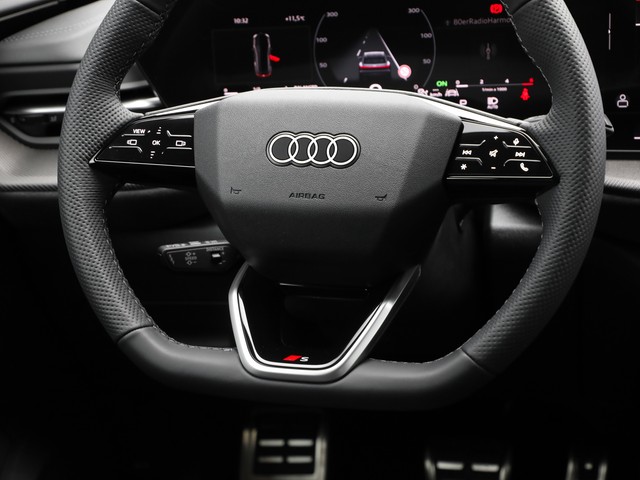 • Lenkradapplikation in Chromoptik, S Emblem, perforiertes Leder und Kontrastnaht
