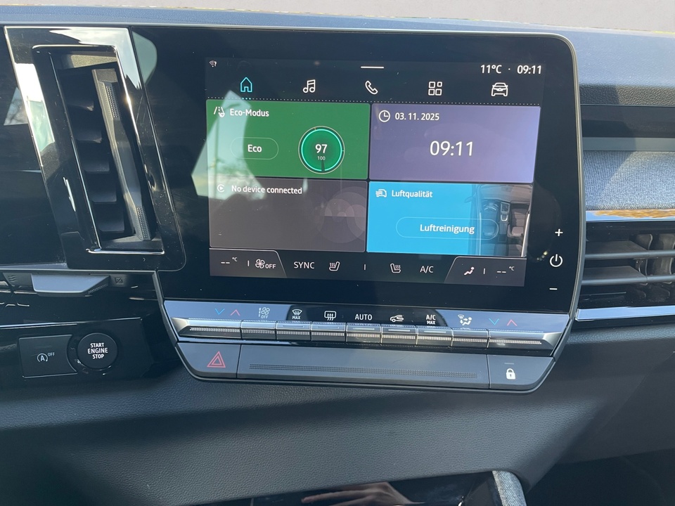 Dolomit-Grau Lackierung Vordersitze beheizbarSerienaustattung Fünf Sitzplätze mit Sitzkonfiguration: 2+3 Acht Lautsprecher 4 Scheibenbremsen (2 innenbelüftet) ABS Geschwindigkeitsregelanlage Beleuchteter Make-up-Spiegel für Fahrer und Beifahrer Einparkhilfe hinten Sensor Frontantrieb Antriebs-Schlupf-Regelung Eins Turboaufladung Elektroantrieb-mit-Lithium-Ionen Batterie Batteriespannung: 12,0, eingeschlossene kW: 0 und Anzahl Monate Vertrag inklusive: 0 Kraftstoff : bleifrei, 95 Oktan Tankinhalt 55 Liter Bordcomputer mit Durchschnittskraftstoffverbrauch Abbiegelicht Tagfahrlicht Kopf-/Dach Airbag vorn und hinten Zentralverriegelung über Kartenschlüssel Motorleistung nach EEC : Maximalleistung in KW: 103 , Maximalleistung in PS: 140 bei 4.500 U/min , Maximales Drehmoment in Nm: 260 bei 1.750 U/min Fahrer-Airbag, Beifahrer-Airbag mit Deaktivierung für Beifahrerairbag Seiten-Airbag vorne 2 höhenverstellbare Kopfstützen vorne, 3 höhenverstellbare Kopfstützen hinten Sicherheitsgurte vorn mit Gurthöhenverstellung für Fahrer und Beifahrer Sicherheitsgurte hinten links, Sicherheitsgurte hinten rechts, Dreipunkt-Gurt hinten Mitte : Armlehne für Vordersitze Fahrersitz Einzelsitz mit mechanischer Lehnenneigungsverstellung, mechanischer Längsverstellung und mechanischer Höhenverstellung, Beifahrersitz Einzelsitz mit mechanischer Lehnenneigungsverstellung und mechanischer Längsverstellung Multifunktions-Kunstlederlenkrad höhenverstellbar und längsverstellbar Unabhängige Ein-Gelenk-Federbeinachse mit Stabilisator und Schrauben-Federung vorne, Halb unabhängige Verbundlenkerachse mit Schrauben-Federung hinten Variables Automatikgetriebe mit Schalthebel am Lenkrad Stufenlose Automatik Windschutzscheiben-Wisch-Wasch-Anlage mit Regensensor Elektrische Fensterheber mit Impulsschaltung für zwei Fenster vorn und hinten Gewichte: Zulässiges Gesamtgewicht (kg): 2.008, Leergewicht (kg): 1.497, Anhängelast gebremst (kg): 1.800 und Anhängelast ungebremst (kg): 745 Sekundäre Motorleistung: Leistung max. in kW: 103, Leistung max. in PS: 140, Drehmoment max. in Nm: 260, 4.500 und 1.750 Isofix Sprachbedienung Kraftstoffverbrauch WLTP HEV Charge Sustaining, 6,2 l/100 km kombiniert, EU6 D, 6,2, 6,3, 16,1, 15,9, 38 und 37 Lokale Sprache Deutsch, Renault, Austral, Mild Hybrid 140 Equilibre Automatik und Equilibre Autom. Warnblinker bei starker Bremsung Crash Warnsystem aktiviert Bremslicht, Müdigkeitswarnung, automatische Notbremsung, Bremst bei niedriger Geschwindigkeit Mindestgeschw. Zur Aktivierung: 8 km/h Fußgängerschutz, visuelle/akustische Warnung, einstellbarer Abstand, Funktion über 130 km/h 78 mph, Funktion über 50 km/h 30 mph, Funktion unter 50 km/h 30 mph und Milderung Fußgängerkoll. Lenkung Bluetooth Start/Stop Spurassistent aktiviert Lenkung Display mit 12,30 Zoll Bildschirm Kombiinstrument 1 und Bildschirmgröße (cm):, Display mit 9,00 Zoll Bildschirm und Touch-Bedienung Armaturenbrett 1, Bildschirmgröße (cm):, fix und nein Energie Rückgewinnung Hybridart Mild-Hybrid Verkehrszeichenerkennung Fahrereinstellungen Motorcharakteristik Elektromotor 1 Frontairbag Mitte App-Steuerung 7 Airbags Mobiltelefonintegration Apple CarPlay, Android Auto, Apple Monate inklusive: 999, Android Monate inklusive: 999, MirrorLink Monate inklusive: 0, Apple drahtlos und Android drahtlos WLTP Emissionen HEV Charge Sustaining, kombiniert: 139,0, kombiniert Fzg niedrig: 139,0 und kombiniert Fzg hoch: 141,0 Elektrisches System 12 Notruf USB Ladeanschluss vorne, hintenWeitere Ausstattung 12 Monate Gebrauchtwagengarantie inklusive!Irrtümer und Zwischenverkauf vorbehalten.(CRCO 13.12.2025 01.21)
