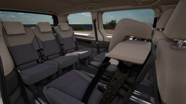 • 2 Einzelsitze entgegen der Fahrtrichtung (Vis-a-Vis-Ansicht) in der 2. Sitzreihe