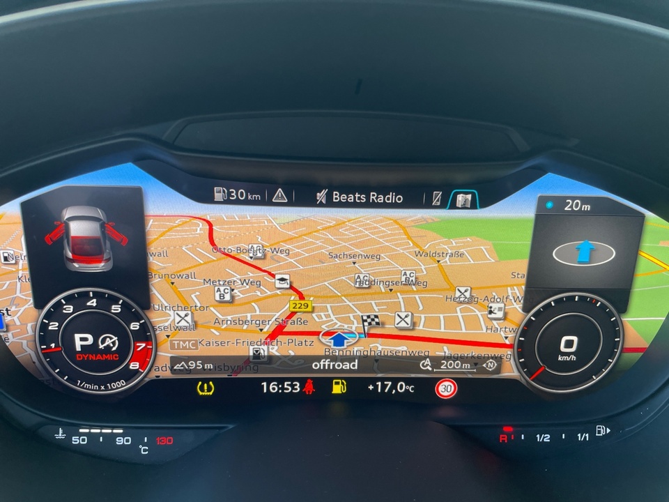 MMI Navigation plus mit MMI touch Audi Matrix LED-Scheinwerfer Audi design selection murillobraun Leder Feinnappa Bang & Olufsen Sound System Einparkhilfe plus mit selektiver Anzeige Sitzeinstellung, elektrisch mit pneumatischer Einstellung der Lehnenwangen für beide Vordersitze media sound Paket Komfortklimaautomatik Audi connect Optikpaket Schwarz Audi exclusive Außenspiegel beheizbar, elektrisch anklappbar und automatisch abblendend inkl. beheizbarer Scheibenwaschdüsen Komfortschlüssel Audi smartphone interface Audi Phone Box Digitaler Radioempfang Geschwindigkeitsregelanlage plus Speed-Limiter Scheinwerferreinigungsanlage Lichtpaket Innenspiegel, automatisch abblendend mit Licht- und Regensensor Mittelarmlehne vorn Ablage- und Gepäckraumpaket Kamerabasierende Verkehrszeichenerkennung Außenspiegelgehäuse in Schwarz glänzend Kindersitzverankerung Isofix für den BeifahrersitzSonderausstattung ab Werk Deaktivierungsschalter für Beifahrerairbag Audi drive select Audi active lane assist RS-Sportfahrwerk plus mit Audi magnetic ride Erweiterte Aluminiumoptik im Interieur Multifunktions-Sportlederlenkrad im 3-Speichen-Design unten abgeflacht Nichtraucherausführung S Sportsitze vorn Akustikfrontscheibe mit grauem Colorstreifen Innenspiegel automatisch abblendend Aluminium-Schmiederäder Audi Sport im 5-V-Speichen-Design in Titanoptik matt.glanzgedreht MMI Navigation plus mit MMI touch Leder Feinnappa für R8-Sportsitze Heckspoiler Licht-/Regensensor LED-Heckleuchten mit dynamischem Blinker Dekoreinlagen Aluminium Drift silber 4-Wege-Lendenwirbelstütze für die VordersitzeSerienaustattung Vier Sitzplätze mit Sitzkonfiguration: 2+2 Vier Lautsprecher Antenne 4 Scheibenbremsen (4 innenbelüftet) ABS Fernbedienbare Heckklappenfernentriegelung Leseleuchten vorne Beleuchteter Make-up-Spiegel für Fahrer und Beifahrer Geregelter Vierradantrieb Antriebs-Schlupf-Regelung Turboaufladung Kraftstoffsystem mit direkter Benzineinspritzung Kraftstoff : bleifrei, 95 Oktan Tankinhalt 55 Liter Außentemperaturanzeige Bordcomputer mit Durchschnittsgeschwindigkeit, Durchschnittskraftstoffverbrauch, momentaner Kraftstoffverbrauch und Reichweite Tagfahrlicht Kopf-/Dach Airbag vorn und hinten Zentralverriegelung (mit Fernbedienung) mit Schließung der elektr. Fenster Motorleistung nach EEC : Maximalleistung in KW: 228 , Maximalleistung in PS: 310 bei 5.800 U/min , Maximales Drehmoment in Nm: 380 bei 1.800 U/min Fahrer-Airbag, Beifahrer-Airbag mit Deaktivierung für Beifahrerairbag Seiten-Airbag vorne 2 Kopfstützen vorne und hinten Sicherheitsgurte vorn für Fahrer und Beifahrer , Gurtstraffer vorne Sicherheitsgurte hinten links und rechts Fahrersitz und Beifahrersitz Sportsitz mit zwei elektr. Verstellmöglichkeiten, Sitzheizung, mechanischer Lehnenneigungsverstellung, mechanischer Längsverstellung und mechanischer Höhenverstellung 2-Wege elektrisch mit mechanischer Sitzflächenneigungsverstellung und mechanischer Oberschenkelauflage Multifunktions-Lederlenkrad höhenverstellbar und längsverstellbar Unabhängige Ein-Gelenk-Federbeinachse mit Stabilisator und Schrauben-Federung vorne, Unabhängige Mehrlenkerachse mit Stabilisator und Schrauben-Federung hinten Sportfahrwerk Aktive Radaufhängung mit wählbarer Einstellung Windschutzscheiben-Wisch-Wasch-Anlage Elektrische Fensterheber mit Impulsschaltung für zwei Fenster vorn Gewichte: Zulässiges Gesamtgewicht (kg): 1.785, Leergewicht (kg): 1.460, Anhängelast gebremst (kg): 0 und Anhängelast ungebremst (kg): 0 Elektr. Bremskraftverteilung Isofix CD Spieler im Handschuhfach, Kapazität: 1, Medienart: CD Kraftstoffverbrauch ECE 99/100, 8,2 l/100 km Stadt, 5,8 l/100 km Überland und 6,7 l/100 km kombiniert Autom. Warnblinker bei starker Bremsung Crash Warnsystem Müdigkeitswarnung Start/Stop Spurassistent aktiviert Lenkung Doppelkupplung mit manuellem Modus Multi-Funktions-Monitor mit 12,3 Zoll Bildschirm Energie Rückgewinnung Fahrereinstellungen Motorcharakteristik, Lenkung und Fahrwerk Dynamische Lenkung Multikollisionsbremse 6 AirbagsWeitere Ausstattung 12 Monate Gebrauchtwagengarantie inklusive!Irrtümer und Zwischenverkauf vorbehalten.(CRCO 22.11.2025 02.06)