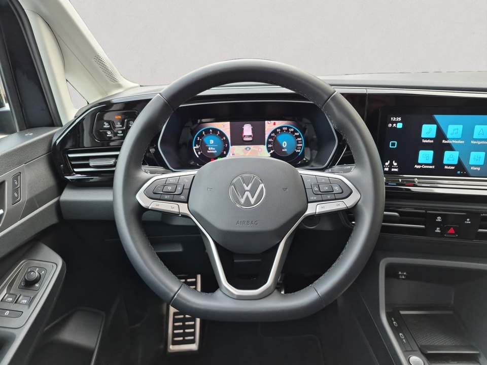 Navigationssystem 'Discover Pro' mit 25,4 cm (10 Zoll) Touch-Farbdisplay inkl. 'Streaming & Internet' und 6 Lautsprechern Standheizung mit Funkfernbedienung Fahrerassistenz-Paket 'Travel Assist' Festes Panoramadach (mit 2 Dachhaltegriffen im Fahrerhaus) Anhängevorrichtung, abnehm-/abschließbar (einschließlich Gespannstabilisierung) Anhängerrangierassistent 'Trailer Assist' mit Parklenkassistent 'Park Assist' und Einparkhilfe vorn und hinten Metallic-Lackierung Leichtmetallräder 'Monterosso' 7 J x 18, in Giallo Evros Schwarzglänzend Winterpaket Spurwechselassistent 'Side Assist' inkl. 'Blind Spot Detection' und Ausparkassistent Diebstahl-Alarmanlage mit Innenraumüberwachung, Back-up-Horn und Abschleppschutz Parklenkassistent 'Park Assist' und Einparkhilfe im Front- und Heckbereich LED-Hauptscheinwerfer inklusive Schlechtwetter- und Abbiegelicht und dynamischer Leuchtweitenregulierung Telefonschnittstelle 'Comfort' mit induktiver Ladefunktion Rückfahrkamera 'Rear View' Automatische Distanzregelung ACC (bei DSG mit 'follow to Stop') inklusive Geschwindigkeitsbegrenzer Sprachbedienung Verbundglas-Frontscheibe in Wärmeschutzglas, beheizbar Betriebsspannung 12 V mit 230-V-Steckdose (Schuko-Steckdose) App-Connect Ladekantenschutz in Schwarz, Kunststoffabdeckung vor der Hecköffnung als Schutzfunktion für lackierte Stoßfänger Fernlichtregulierung 'Light Assist' Schiebetür rechts im Lade-/Fahrgastraum mit Zuziehhilfe Schiebetür links im Lade-/Fahrgastraum mit Zuziehhilfe Feuerlöscher (Inhalt 1 kg) unter dem rechten Vordersitz Feuerlöscher (Inhalt 1 kg) unter dem rechten Vordersitz und Schublade unter dem linken Vordersitz Raucherausführung - 12-V-Steckdose mit Zigarettenanzünder und Aschenbecher Zentralverriegelung mit schlüssellosem Startsystem 'Keyless Start' und Safe-Sicherung Reifen 225/45 R 18 95 H XL, rollwiderstandsoptimiert Schublade unter dem linken Vordersitz Leichtmetall-Reserverad mit Fahrbereifung inkl. Bordwerkzeug und Wagenheber Textilfußmatten vorn und hintenSerienaustattung Sieben Sitzplätze mit Sitzkonfiguration: 2+3+2 Sechs Lautsprecher 4 Scheibenbremsen (2 innenbelüftet) ABS Mobiltelefonvorbereitung Ladefunktion Fernbedienbare Heckklappenfernentriegelung Geschwindigkeitsregelanlage Make-up-Spiegel für Fahrer und Beifahrer Einparkhilfe vorne, hinten Sensor Frontantrieb Antriebs-Schlupf-Regelung Eins Turboaufladung Kraftstoffsystem mit direkter Benzineinspritzung Kraftstoff : bleifrei, 95 Oktan Tankinhalt 50 Liter Bordcomputer mit Durchschnittskraftstoffverbrauch Tagfahrlicht Kopf-/Dach Airbag vorn und hinten Zentralverriegelung (mit Fernbedienung) mit Schließung der elektr. Fenster Motorleistung nach EEC : Maximalleistung in KW: 84 , Maximalleistung in PS: 114 bei 4.500 U/min , Maximales Drehmoment in Nm: 220 bei 1.750 U/min Dachreling Chrom/silber Fahrer-Airbag, Beifahrer-Airbag mit Deaktivierung für Beifahrerairbag Seiten-Airbag vorne 2 höhenverstellbare Kopfstützen vorne, 3 höhenverstellbare Kopfstützen hinten, 2 Kopfstützen 3. Reihe Sicherheitsgurte vorn mit Gurthöhenverstellung für Fahrer und Beifahrer , Gurtstraffer vorne Sicherheitsgurte hinten mit Gurtstraffer links, Sicherheitsgurte hinten mit Gurtstraffer rechts, Dreipunkt-Gurt hinten Mitte : Armlehne für Vordersitze Fahrersitz und Beifahrersitz Einzelsitz mit Tisch an der Sitzrückseite, mechanischer Lehnenneigungsverstellung, mechanischer Längsverstellung, mechanischer Höhenverstellung und mechanischer Lordosenstütze Herausnehmbare Einzelsitze 3.Sitzreihe mit zwei Sitzplätzen einzelne mit Anordnung nach vorne Multifunktions-Lederlenkrad höhenverstellbar und längsverstellbar Unabhängige Ein-Gelenk-Federbeinachse mit Stabilisator und Schrauben-Federung vorne, Feste Starrachse mit Stabilisator und Schrauben-Federung hinten 7-Gang Automatikgetriebe mit manueller Gangwahl und Schalthebel am Lenkrad sequentiell-manuell, Doppelkupplung sequenziell mit Autom. und Schaltwippen Windschutzscheiben-Wisch-Wasch-Anlage mit Regensensor Elektrische Fensterheber mit Impulsschaltung für zwei Fenster vorn Gewichte: Zulässiges Gesamtgewicht (kg): 2.350, Leergewicht (kg): 1.760, Anhängelast gebremst (kg): 1.500 und Anhängelast ungebremst (kg): 750 Isofix Zylinderabschaltung Partikelfilter Kraftstoffverbrauch ECE 99/100, 6,7 l/100 km Stadt, 5,3 l/100 km Überland und 5,8 l/100 km kombiniert, Kraftstoffverbrauch WLTP ICE, 6,9 l/100 km kombiniert, 6,7, 7,2, 14,9, 13,9, 8,8, 11,4, 6,9, 14,5, 5,8, 17,2, 7,1, 14,1, 35, 33, 27, 34, 41 und 33 Autom. Warnblinker bei starker BremsungWeitere Ausstattung 12 Monate Gebrauchtwagengarantie inklusive!Irrtümer und Zwischenverkauf vorbehalten.(CRCO 31.01.2026 00.06)