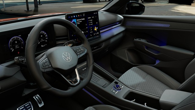 • Volkswagen Logo vorn und hinten, Leiste zwischen den Scheinwerfern/Rückleuchten beleuchtet, mit Anim