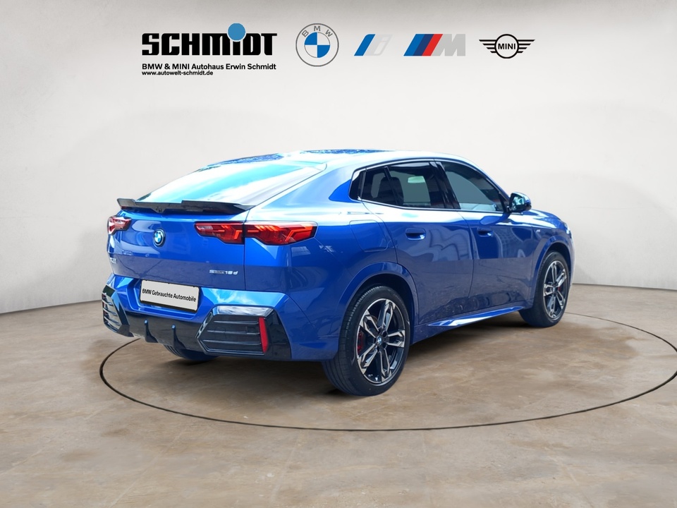 M Sport Paket M Sportpaket Pro Premium Paket Verganza perforiert Atlasgrau/Rauchweiß Hifi Harman Kardon Surround Sound System Driving Assistant Sonnenschutzverglasung Sportsitze für Fahrer und Beifahrer Lenkradheizung Reifenpannenset M Dachhimmel anthrazit Akustikverglasung 19' M Leichtmetallräder Doppelspeiche 871 M, Bicolor M Lederlenkrad Steptronic Getriebe mit Schaltwippen Vorbereitung Driving Assistant Plus (inkl. Notbremsassistent) Innen- und Außenspiegelpaket Außenspiegelpaket Innenspiegel, automatisch abblendend Komfortzugang (Keyless Entry) Wireless Charging Ablage Adaptives M Fahrwerk Instrumententafel Luxury Interieurleisten Aluminium Hexacube hell M Sport Exterieurumfänge M Sport Interieurumfänge Spezifische Zusatzumfänge M Sportpaket M Heckspoiler Spezifische Zusatzumfänge M Sportpaket Pro M Sicherheitsgurte M Sportbremse, rot hochglänzend M Hochglanz Shadow Line mit erweiterten Umfängen M Leuchten Shadow Line Adaptiver LED-ScheinwerferSonderausstattung ab Werk Sitzheizung für Fahrer und Beifahrer Fernlichtassistent Parking Assistant M Hochglanz Shadow LineSerienaustattung Fünf Sitzplätze mit Sitzkonfiguration: 2+3 Sechs Lautsprecher Subwoofer 4 Scheibenbremsen (4 innenbelüftet) ABS Elektrische Heckklappen-Zuziehhilfe Geschwindigkeitsregelanlage Beleuchteter Make-up-Spiegel für Fahrer und Beifahrer Einparkhilfe vorne Sensor, Einparkhilfe hinten Sensor & Kamera, Einparkhilfe seitlich Sensor Frontantrieb sDrive Sperrdifferential mit begrenztem Schlupf elektronisches und vorne Antriebs-Schlupf-Regelung Eins Turboaufladung Kraftstoffsystem mit Common Rail Kraftstoff : Diesel Tankinhalt 45 Liter Bordcomputer mit Durchschnittskraftstoffverbrauch Tagfahrlicht Kopf-/Dach Airbag vorn und hinten Zentralverriegelung (mit Fernbedienung) mit Schließung der elektr. Fenster Motorleistung nach EEC : Maximalleistung in KW: 110 , Maximalleistung in PS: 150 bei 3.750 U/min , Maximales Drehmoment in Nm: 360 bei 1.500 U/min Fahrer-Airbag, Beifahrer-Airbag mit Deaktivierung für Beifahrerairbag Seiten-Airbag vorne 2 höhenverstellbare Kopfstützen vorne, 3 höhenverstellbare Kopfstützen hinten Sicherheitsgurte vorn für Fahrer und Beifahrer , Gurtstraffer vorne Sicherheitsgurte hinten mit Gurtstraffer links, Sicherheitsgurte hinten mit Gurtstraffer rechts, Dreipunkt-Gurt hinten Mitte : Armlehne für Vordersitze Fahrersitz und Beifahrersitz Einzelsitz mit Sitzheizung, mechanischer Lehnenneigungsverstellung, mechanischer Längsverstellung und mechanischer Höhenverstellung Multifunktions-Alu & Lederlenkrad höhenverstellbar und längsverstellbar Unabhängige Ein-Gelenk-Federbeinachse mit Stabilisator und Schrauben-Federung vorne, Unabhängige Mehrlenkerachse mit Stabilisator und Schrauben-Federung hinten 7-Gang Automatikgetriebe mit manueller Gangwahl sequentiell-manuell, Doppelkupplung sequenziell mit Autom. und 0 Windschutzscheiben-Wisch-Wasch-Anlage mit Regensensor Elektrische Fensterheber mit Impulsschaltung für zwei Fenster vorn und hinten Gewichte: Zulässiges Gesamtgewicht (kg): 2.170, Leergewicht (kg): 1.675, Anhängelast gebremst (kg): 1.800 und Anhängelast ungebremst (kg): 750 Navigationssystem mit Bedienung über Touch Screen, Datenquelle: Internet (Farbe), 10,70 Zoll-Bildschirm, Verkehrsinformation und Verkehrsinfo Monate inklusive: 24 Vorbereitung Featrues on demand Isofix Sprachbedienung herstellereigen und KI unterstützt Telematik mit automatischem Notruf, mit SIM im Fahrzeug, Tracking System, Concierge Service Monate inkl.: und Pannenhilfe Partikelfilter Kraftstoffverbrauch WLTP ICE, 5,1 l/100 km kombiniert, 5,1, 5,5, 19,6, 18,2, 46 und 43 Lokale Sprache Deutsch, BMW, X2, sDrive18d Steptronic DCT und sDrive18d Steptronic DCT Autom. Warnblinker bei starker Bremsung Crash Warnsystem aktiviert Bremslicht, Müdigkeitswarnung, automatische Notbremsung, Front und Heck, Fußgängerschutz, visuelle/akustische Warnung, Funktion über 130 km/h 78 mph, Funktion über 50 km/h 30 mph, Funktion unter 50 km/h 30 mph, umfasst das Abbiegen an Kreuzungen und Überwachung Fahrstil Bluetooth Start/Stop Spurassistent aktiviert Lenkung Doppelkupplung mit manuellem Modus Einparkassistent hinten, vollautomatisches Ein- und Ausparken 90° und autom. Bremsen während Parkvorgang Display mit 10,25 Zoll Bildschirm Kombiinstrument 1 und Bildschirmgröße (cm):, Display mit 10,70 Zoll Bildschirm und Touch-Bedienung Armaturenbrett 1, Bildschirmgröße (cm):, fix und nein Energie RückgewinnungWeitere Ausstattung inkl. 24 Monate Euro Plus Garantie, ohne jegliche Selbstbeteiligung im Schadensfall!GarantieBMW Premium SelectionIrrtümer und Zwischenverkauf vorbehalten.(CRCO 12.10.2025 02.16)