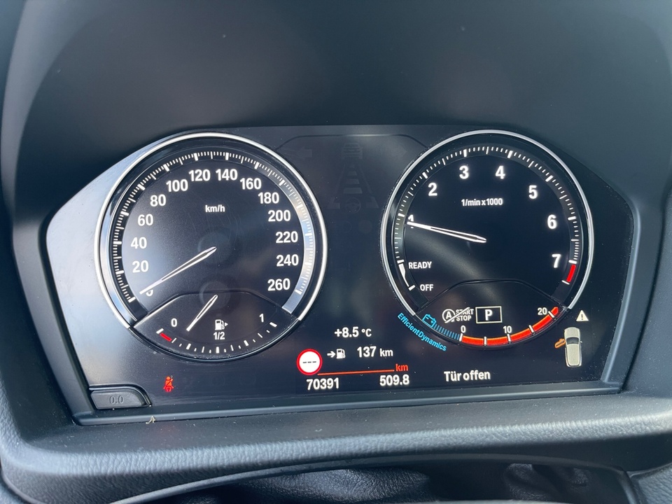7-Gang Steptronic Getriebe mit Doppelkupplung Business Package BMW Navigation Metallic-Lackierung Automatische Heckklappenbetätigung Park Distance Control (PDC) hinten Komfortzugang (Keyless Entry) Sonnenschutzverglasung Sitzheizung für Fahrer und Beifahrer Lichtpaket Lordosenstütze für Fahrer und Beifahrer Innenspiegel automatisch abblendend Real Time Traffic Information (RTTI) M Lederlenkrad Größerer Kraftstofftank - um 10 Liter vergrößertes Volumen des Kraftstofftanks Kindersitzbefestigung ISOFIXSonderausstattung ab Werk 17' Leichtmetallräder V-Speiche 560 Radschraubensicherung Fußmatten in Velours.anthrazit Beifahrersitz Höhenverstellung Armauflage vorne mit Innenfach Ablagenpaket LED Nebelscheinwerfer LED-Scheinwerfer mit erweiterten UmfängenSerienaustattung Fünf Sitzplätze mit Sitzkonfiguration: 2+3 Sechs Lautsprecher und Subwoofer 4 Scheibenbremsen (4 innenbelüftet) ABS Fernbedienbare Heckklappenfernentriegelung Make-up-Spiegel für Fahrer und Beifahrer Frontantrieb Sperrdifferential mit begrenztem Schlupf elektronisches und vorne Antriebs-Schlupf-Regelung Eins Turboaufladung Kraftstoffsystem mit direkter Benzineinspritzung Kraftstoff : bleifrei, 95 Oktan Tankinhalt 51 Liter Außentemperaturanzeige Bordcomputer mit Durchschnittsgeschwindigkeit, Durchschnittskraftstoffverbrauch, momentaner Kraftstoffverbrauch und Reichweite Abbiegelicht Tagfahrlicht Kopf-/Dach Airbag vorn und hinten Zentralverriegelung mit Schließung der elektr. Fenster Motorleistung nach EEC : Maximalleistung in KW: 103 , Maximalleistung in PS: 140 bei 4.600 U/min , Maximales Drehmoment in Nm: 220 bei 1.480 U/min Fahrer-Airbag intelligent, Beifahrer-Airbag mit Deaktivierung für Beifahrerairbag intelligent Seiten-Airbag vorne 2 höhenverstellbare Kopfstützen vorne, 3 höhenverstellbare Kopfstützen hinten Sicherheitsgurte vorn für Fahrer und Beifahrer , Gurtstraffer vorne Sicherheitsgurte hinten links, Sicherheitsgurte hinten rechts, Dreipunkt-Gurt hinten Mitte : Armlehne für Vordersitze Armlehne für Rücksitze Fahrersitz und Beifahrersitz Einzelsitz mit mechanischer Lehnenneigungsverstellung, mechanischer Längsverstellung und mechanischer Höhenverstellung Multifunktions-Alu & Lederlenkrad höhenverstellbar und längsverstellbar Unabhängige Ein-Gelenk-Federbeinachse mit Stabilisator und Schrauben-Federung vorne, Unabhängige Mehrlenkerachse mit Stabilisator und Schrauben-Federung hinten Windschutzscheiben-Wisch-Wasch-Anlage mit Regensensor Elektrische Fensterheber mit Impulsschaltung für zwei Fenster vorn und hinten Gewichte: Zulässiges Gesamtgewicht (kg): 1.985, Leergewicht (kg): 1.475, Anhängelast gebremst (kg): 1.700 und Anhängelast ungebremst (kg): 735 Elektr. Bremskraftverteilung Isofix Telematik mit automatischem Notruf, mit SIM im Fahrzeug und Tracking System Partikelfilter Kraftstoffverbrauch ECE 99/100, 6,9 l/100 km Stadt, 4,6 l/100 km Überland, 5,5 l/100 km kombiniert und Euro 6d-TEMP, Kraftstoffverbrauch WLTP ICE und 6,5 l/100 km kombiniert Crash Warnsystem aktiviert Bremslicht, Müdigkeitswarnung, automatisches Bremsen, Bremst bei niedriger Geschwindigkeit Mindestgeschw. Zur Aktivierung: 3 km/h visuelle/akustische Warnung Bluetooth inkl. Telefonbedienung und inkl. Musik Streaming Start/Stop Multi-Funktions-Monitor mit 6,5 Zoll Bildschirm Armaturenbrett 1, Drehrad und 16,5 Energie Rückgewinnung Motor Verkehrszeichenerkennung Fahrereinstellungen Motorcharakteristik und Lenkung Installierte Apps App-Steuerung Text - Sprache/Sprache - Text Multikollisionsbremse 6 Airbags Media Control Drehrad WLTP Emissionen ICE und 148 Elektrisches System 12Weitere Ausstattung inkl. 24 Monate Euro Plus Garantie, ohne jegliche Selbstbeteiligung im Schadensfall!GarantieBMW Premium SelectionIrrtümer und Zwischenverkauf vorbehalten.(CRCO 05.12.2025 13.08)