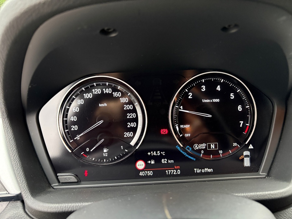 Navigation Plus inkl. BMW Head-Up Display Business Package LED-Scheinwerfer mit Abbiegelicht inkl. LED-Nebelscheinwerfer Metallic-Lackierung Sportsitze für Fahrer und Beifahrer Alarmanlage Park Distance Control (PDC) vorne und hinten inkl. Parkassistent Sitzheizung für Fahrer und Beifahrer Lordosenstütze für Fahrer und Beifahrer 17' Leichtmetallräder V-Speiche 560 mit Notlaufeigenschaften Außenspiegelpaket Innenspiegel automatisch abblendend CD-Laufwerk Größerer Kraftstofftank - um 10 Liter vergrößertes Volumen des Kraftstofftanks Stoff 'Race' Anthrazit/Akzent Grau / Schwarz Bereifung mit NotlaufeigenschaftenSonderausstattung ab Werk Ablagenpaket Beifahrerairbag-Deaktivierung Armauflage vorne mit Innenfach Radschraubensicherung Fußmatten in Velours Geschwindigkeitsregelung mit Bremsfunktion Automatische Heckklappenbetätigung Klimaautomatik mit erweiterten Umfängen LED-Nebelscheinwerfer BMW Head-Up Display Parkassistent Sport-LederlenkradSerienaustattung Fünf Sitzplätze mit Sitzkonfiguration: 2+3 Sechs Lautsprecher und Subwoofer 4 Scheibenbremsen (4 innenbelüftet) ABS Fernbedienbare Heckklappenfernentriegelung Elektrische Heckklappen-Zuziehhilfe Geschwindigkeitsregelanlage Make-up-Spiegel für Fahrer und Beifahrer Einparkhilfe hinten Radar Frontantrieb Sperrdifferential mit begrenztem Schlupf elektronisches und vorne Antriebs-Schlupf-Regelung Turboaufladung Kraftstoffsystem mit direkter Benzineinspritzung Kraftstoff : bleifrei, 95 Oktan Tankinhalt 51 Liter Außentemperaturanzeige Bordcomputer mit Durchschnittsgeschwindigkeit, Durchschnittskraftstoffverbrauch, momentaner Kraftstoffverbrauch und Reichweite Tagfahrlicht Kopf-/Dach Airbag vorn und hinten Zentralverriegelung mit Schließung der elektr. Fenster Motorleistung nach EEC : Maximalleistung in KW: 103 , Maximalleistung in PS: 140 bei 4.600 U/min , Maximales Drehmoment in Nm: 220 bei 1.480 U/min Fahrer-Airbag intelligent, Beifahrer-Airbag mit Deaktivierung für Beifahrerairbag intelligent Seiten-Airbag vorne 2 höhenverstellbare Kopfstützen vorne, 3 höhenverstellbare Kopfstützen hinten Sicherheitsgurte vorn für Fahrer und Beifahrer , Gurtstraffer vorne Sicherheitsgurte hinten links, Sicherheitsgurte hinten rechts, Dreipunkt-Gurt hinten Mitte : Armlehne für Vordersitze Armlehne für Rücksitze Fahrersitz und Beifahrersitz Einzelsitz mit mechanischer Lehnenneigungsverstellung, mechanischer Längsverstellung und mechanischer Höhenverstellung Multifunktions-Alu & Lederlenkrad höhenverstellbar und längsverstellbar Unabhängige Ein-Gelenk-Federbeinachse mit Stabilisator und Schrauben-Federung vorne, Unabhängige Mehrlenkerachse mit Stabilisator und Schrauben-Federung hinten Windschutzscheiben-Wisch-Wasch-Anlage mit Regensensor Elektrische Fensterheber mit Impulsschaltung für zwei Fenster vorn und hinten Gewichte: Zulässiges Gesamtgewicht (kg): 1.985, Leergewicht (kg): 1.470, Anhängelast gebremst (kg): 1.700 und Anhängelast ungebremst (kg): 725 Elektr. Bremskraftverteilung Isofix Telematik mit automatischem Notruf, mit SIM im Fahrzeug und Tracking System Partikelfilter Kraftstoffverbrauch ECE 99/100, 6,9 l/100 km Stadt, 4,9 l/100 km Überland, 5,6 l/100 km kombiniert und EU6d-Temp Crash Warnsystem aktiviert Bremslicht, Müdigkeitswarnung, automatisches Bremsen, Bremst bei niedriger Geschwindigkeit Mindestgeschw. Zur Aktivierung: 3 km/h visuelle/akustische Warnung Bluetooth inkl. Telefonbedienung und inkl. Musik Streaming Start/Stop Multi-Funktions-Monitor mit 6,5 Zoll Bildschirm Armaturenbrett 1, Drehrad und 16,5 Energie Rückgewinnung Motor Verkehrszeichenerkennung Fahrereinstellungen Motorcharakteristik und Lenkung Installierte Apps App-Steuerung Text - Sprache/Sprache - Text Multikollisionsbremse 6 Airbags Media Control Drehrad Elektrisches System 12Weitere Ausstattung inkl. 24 Monate Euro Plus Garantie, ohne jegliche Selbstbeteiligung im Schadensfall!GarantieBMW Premium SelectionIrrtümer und Zwischenverkauf vorbehalten.(CRCO 07.10.2025 12.01)