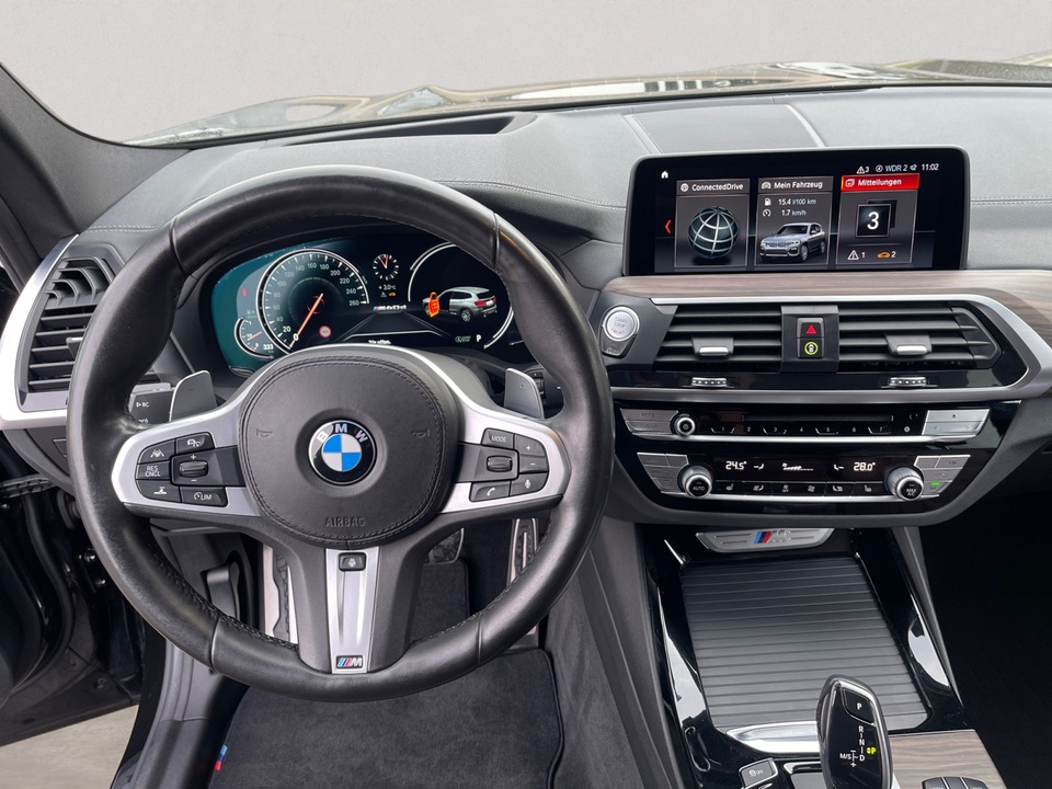 Business Package in Verbindung mit Navigationspaket ConnectedDrive Driving Assistant Plus (inkl. Notbremsassistent) Innovationspaket Navigationspaket ConnectedDrive Panorama-Glasdach Leder Vernasca 21' BMW Individual Leichtmetallräder V-Speiche 726 orbitgrau mit Mischbereifung und Notlaufeigenschaften Anhängerkupplung mit elektrisch schwenkbarem Kugelkopf Parking Assistant Plus Head-Up Display Metallic-Lackierung Driving Assistant Sitzheizung vorn und hinten Parking Assistant Komfortzugang (Keyless Entry) Telefonie mit Wireless charging Alarmanlage Sonnenschutzverglasung Multifunktionales Instrumentendisplay Sitzheizung für Fahrer und Beifahrer Adaptiver LED-Scheinwerfer DAB-Tuner Innen- und Außenspiegel Paket Apple CarPlay vorbereitung Lordosenstütze für Fahrer Garagentüröffner, integriert Concierge Services Lenkradheizung Edelholzausführung Fineline Cove matt, offenporig Real Time Traffic Information (RTTI) Galvanikapplikationen für Bedienelemente (mit 710 Multtifunktionstasten nicht in Galvanik) Sitzlehnenverstellung im Fond Fernlichtassistent Modellschriftzug Entfall Bereifung mit NotlaufeigenschaftenSonderausstattung ab Werk Größerer Kraftstofftank - um 10 Liter vergrößertes Volumen des Kraftstofftanks M Sportbremse Radschraubensicherung M Sportdifferenzial Steptronic Sport Getriebe Performance Control Variable Sportlenkung Entfall Lines-Schriftzug außen BMW Individual Dachreling Hochglanz shadow line Gepäckraum-Trennnetz Fußmatten in Velours Innenspiegel automatisch abblendend mit Memory Sportsitze für Fahrer und Beifahrer Ablagenpaket Instrumententafel in Sensatec Ambientes Licht Klimaautomatik mit erweiterten Umfängen LED-Nebelscheinwerfer Beifahrerairbag-Deaktivierung Navigationssystem Professional CD-Laufwerk WLAN Hotspot M Sportfahrwerk M Lederlenkrad M Aerodynamikpaket BMW Individual Hochglanz Shadow Line BMW Individual Dachhimmel anthrazitSerienaustattung Fünf Sitzplätze mit Sitzkonfiguration: 2+3 Sechs Lautsprecher 4 Scheibenbremsen (4 innenbelüftet) ABS Fernbedienbare Heckklappenfernentriegelung Elektrische Heckklappen-Zuziehhilfe Elektr. Sitz-Memory Geschwindigkeitsregelanlage Leseleuchten vorne und hinten Beleuchteter Make-up-Spiegel für Fahrer und Beifahrer Einparkhilfe vorne, hinten Radar Permanenter Vierradantrieb mit Bergabfahrhilfe Sperrdifferential mit begrenztem Schlupf elektronisches und hinten Antriebs-Schlupf-Regelung Doppellte Turboaufladung Kraftstoffsystem mit Common Rail Kraftstoff : Diesel Tankinhalt 65 Liter Außentemperaturanzeige Bordcomputer mit Durchschnittsgeschwindigkeit, Durchschnittskraftstoffverbrauch und Reichweite Abbiegelicht Tagfahrlicht Kopf-/Dach Airbag vorn und hinten Zentralverriegelung mit Schließung der elektr. Fenster Motorleistung nach EEC : Maximalleistung in KW: 240 , Maximalleistung in PS: 326 bei 4.400 U/min , Maximales Drehmoment in Nm: 680 bei 1.750 U/min Dachreling Chrom/silber Fahrer-Airbag intelligent, Beifahrer-Airbag mit Deaktivierung für Beifahrerairbag intelligent Seiten-Airbag vorne 2 höhenverstellbare aktive Kopfstützen vorne, 3 höhenverstellbare Kopfstützen hinten Sicherheitsgurte vorn für Fahrer und Beifahrer , Gurtstraffer vorne Sicherheitsgurte hinten links, Sicherheitsgurte hinten rechts, Dreipunkt-Gurt hinten Mitte : Armlehne für Vordersitze Armlehne für Rücksitze Fahrersitz Sportsitz mit fünf elektr. Verstellmöglichkeiten, Lehnenneigungsverstellung mit Memory, Längsverstellung mit Memory, Längsverstellung mit Memory, Sitzflächenneigungsverstellung mit Memory und mechanischer Oberschenkelauflage, Beifahrersitz Sportsitz mit fünf elektr. Verstellmöglichkeiten, elektrischer Lehnenneigungsverstellung, elektrischer Längsverstellung, elektrischer Höhenverstellung, elektrischer Sitzflächenneigungsverstellung und mechanischer Oberschenkelauflage Multifunktions-Alu & Lederlenkrad höhenverstellbar und längsverstellbar Unabhängige Ein-Gelenk-Federbeinachse mit Stabilisator und Schrauben-Federung vorne, Unabhängige Mehrlenkerachse mit Stabilisator und Schrauben-Federung hinten Sportfahrwerk 8-Gang Automatikgetriebe mit manueller Gangwahl und Schalthebel am Lenkrad Automatik mit manuellem Modus und Schaltwippen Windschutzscheiben-Wisch-Wasch-Anlage mit Regensensor Elektrische Fensterheber mit Impulsschaltung für zwei Fenster vorn und hinten Gewichte: Zulässiges Gesamtgewicht (kg): 2.550, Leergewicht (kg): 1.970, Anhängelast gebremst (kg): 2.000 und Anhängelast ungebremst (kg): 750Weitere Ausstattung inkl Sommer- und Winterräder 12 Monate Gebrauchtwagengarantie inklusive!Irrtümer und Zwischenverkauf vorbehalten.(CRCO 20.02.2026 13.11)
