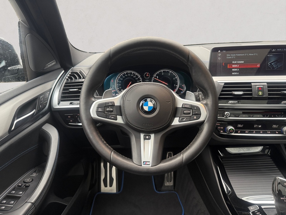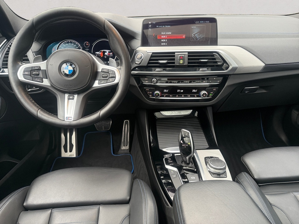 Business Package in Verbindung mit Navigationspaket ConnectedDrive Navigationspaket ConnectedDrive BMW Individual erweiterte Lederausstattung Leder Merino Innovationspaket Entertainment Paket Panorama-Glasdach Leder Vernasca Schwarz/Kontraststeppung Blau für M Sport Sitzverstellung elektrisch mit Memory 20' M Leichtmetallräder Doppelspeiche 699 M Ferricgrau mit Mischbereifung und Notlaufeigenschaften Anhängerkupplung mit elektrisch schwenkbarem Kugelkopf Harman Kardon Surround Sound System Head-Up Display Metallic-Lackierung Driving Assistant Sitzheizung vorn und hinten Parking Assistant Komfortzugang (Keyless Entry) Instrumententafel in Sensatec schwarz mit Kontrastnaht Telefonie mit Wireless charging Alarmanlage Sonnenschutzverglasung Multifunktionales Instrumentendisplay Sitzheizung für Fahrer und Beifahrer Adaptiver LED-Scheinwerfer DAB-Tuner Innen- und Außenspiegel Paket Apple CarPlay vorbereitung Lordosenstütze für Fahrer und Beifahrer Concierge Services Online Entertainment Lenkradheizung Real Time Traffic Information (RTTI) Fernlichtassistent CD-Laufwerk Interieurleisten Aluminium Feinschliff Bereifung mit NotlaufeigenschaftenSonderausstattung ab Werk Größerer Kraftstofftank - um 10 Liter vergrößertes Volumen des Kraftstofftanks M Sportbremse Radschraubensicherung Steptronic Sport Getriebe Performance Control Variable Sportlenkung BMW Individual Dachreling Hochglanz shadow line Gepäckraum-Trennnetz Fußmatten in Velours Innenspiegel automatisch abblendend Sportsitze für Fahrer und Beifahrer Ablagenpaket Ambientes Licht Klimaautomatik mit erweiterten Umfängen LED-Nebelscheinwerfer Beifahrerairbag-Deaktivierung Navigationssystem Professional WLAN Hotspot M Sportfahrwerk M Lederlenkrad M Aerodynamikpaket BMW Individual Hochglanz Shadow Line BMW Individual Dachhimmel anthrazitSerienaustattung Fünf Sitzplätze mit Sitzkonfiguration: 2+3 Sechs Lautsprecher 4 Scheibenbremsen (4 innenbelüftet) ABS Fernbedienbare Heckklappenfernentriegelung Elektrische Heckklappen-Zuziehhilfe Geschwindigkeitsregelanlage Leseleuchten vorne und hinten Beleuchteter Make-up-Spiegel für Fahrer und Beifahrer Einparkhilfe vorne, hinten Radar Permanenter Vierradantrieb mit Bergabfahrhilfe Sperrdifferential mit begrenztem Schlupf elektronisches und hinten Antriebs-Schlupf-Regelung Turboaufladung Kraftstoffsystem mit Common Rail Kraftstoff : Diesel Tankinhalt 68 Liter Außentemperaturanzeige Bordcomputer mit Durchschnittsgeschwindigkeit, Durchschnittskraftstoffverbrauch und Reichweite Abbiegelicht Tagfahrlicht Kopf-/Dach Airbag vorn und hinten Zentralverriegelung mit Schließung der elektr. Fenster Motorleistung nach EEC : Maximalleistung in KW: 195 , Maximalleistung in PS: 265 bei 4.000 U/min , Maximales Drehmoment in Nm: 620 bei 2.000 U/min Dachreling Chrom/silber Fahrer-Airbag intelligent, Beifahrer-Airbag mit Deaktivierung für Beifahrerairbag intelligent Seiten-Airbag vorne 2 höhenverstellbare aktive Kopfstützen vorne, 3 höhenverstellbare Kopfstützen hinten Sicherheitsgurte vorn für Fahrer und Beifahrer , Gurtstraffer vorne Sicherheitsgurte hinten links, Sicherheitsgurte hinten rechts, Dreipunkt-Gurt hinten Mitte : Armlehne für Vordersitze Armlehne für Rücksitze Fahrersitz und Beifahrersitz Sportsitz mit einer elektr. Verstellmöglichkeit, mechanischer Lehnenneigungsverstellung, mechanischer Längsverstellung, mechanischer Höhenverstellung, mechanischer Sitzflächenneigungsverstellung und mechanischer Oberschenkelauflage Multifunktions-Alu & Lederlenkrad höhenverstellbar und längsverstellbar Unabhängige Ein-Gelenk-Federbeinachse mit Stabilisator und Schrauben-Federung vorne, Unabhängige Mehrlenkerachse mit Stabilisator und Schrauben-Federung hinten Sportfahrwerk 8-Gang Automatikgetriebe mit manueller Schalthebelbetätigung und Schalthebel am Lenkrad Automatik mit manuellem Modus und Schaltwippen Windschutzscheiben-Wisch-Wasch-Anlage mit Regensensor Elektrische Fensterheber mit Impulsschaltung für zwei Fenster vorn und hinten Gewichte: Zulässiges Gesamtgewicht (kg): 2.500, Leergewicht (kg): 1.895, Anhängelast gebremst (kg): 2.000 und Anhängelast ungebremst (kg): 750 Elektr. Bremskraftverteilung Isofix Telematik mit automatischem Notruf, mit SIM im Fahrzeug und Tracking System Partikelfilter Kraftstoffverbrauch ECE 99/100, 6,8 l/100 km Stadt, 5,5 l/100 km Überland, 6,0 l/100 km kombiniert und EU6d-TempWeitere Ausstattung kein Verkauf an privat in EU, NO SALE TO PRIVAT PEOPLE IN THE EUROPEAN UNIONIrrtümer und Zwischenverkauf vorbehalten.(CRCO 25.02.2026 18.16)