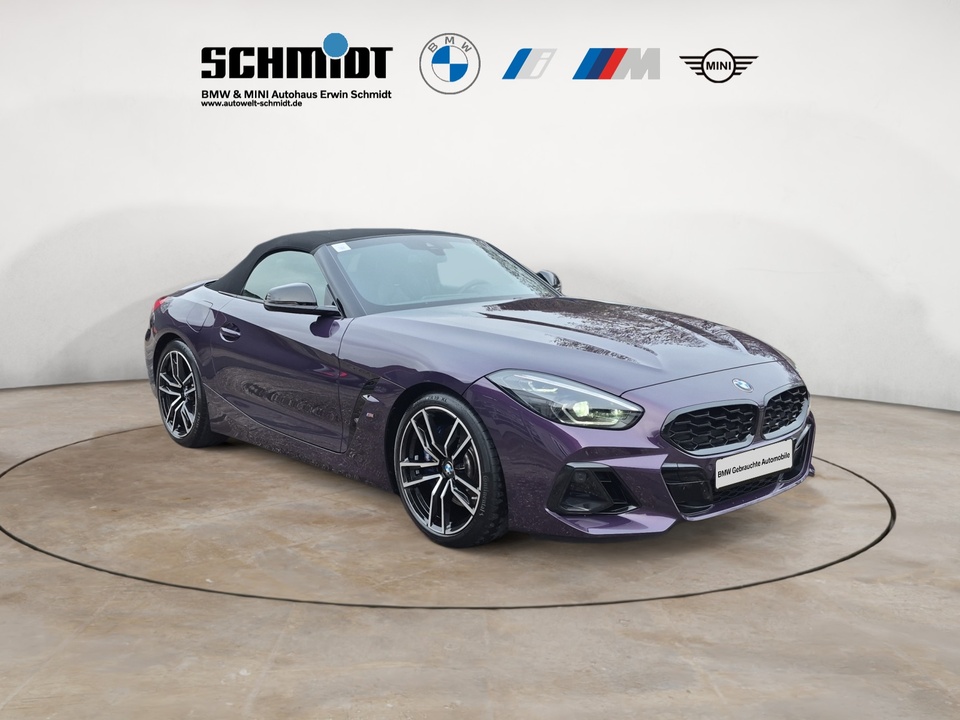 Innovationspaket Adaptiver LED-Scheinwerfer Sitzverstellung, elektrisch, mit Memory für Fahrersitz Head-Up Display Metallic-Lackierung Driving Assistant 19' M Leichtmetallräder Doppelspeiche 799 M Bicolor Jetblack mit Mischbereifung Komfortzugang (Keyless Entry) Parking Assistant M Hochglanz Shadow Line mit erweiterten Umfängen Harman Kardon Surround Sound System Innen- und Außenspiegelpaket M Sicherheitsgurte Lenkradheizung Lordosenstütze für Fahrer und Beifahrer Fernlichtassistent Spiegelkappen schwarz Reifenpannenset Leder Vernasca mit Dekorsteppung Interieurleisten Schwarz hochglänzendSonderausstattung ab Werk Radschraubensicherung Alarmanlage Ambientes Licht Sitzheizung für Fahrer und Beifahrer BMW Connected Package Professional BMW Live Cockpit Professional M Sportbremse 18' Steptronic Sport Getriebe M Sportdifferenzial Adaptives Fahrwerk Windschutz Instrumententafel in Sensatec schwarz mit Kontrastnaht Innenspiegel automatisch abblendend Durchladesystem Ablagenpaket Klimaautomatik mit 2-Zonen-Regelung Geschwindigkeitsregelung mit Bremsfunktion Lichtpaket M Lederlenkrad M Sportsitze für Fahrer und Beifahrer M Aerodynamikpaket M Hochglanz Shadow LineSerienaustattung Zwei Sitzplätze mit Sitzkonfiguration: 2+0 Zehn Lautsprecher Subwoofer 4 Scheibenbremsen (4 innenbelüftet) und lackierte Bremssättel ABS Fernbedienbare Heckklappenfernentriegelung Geschwindigkeitsregelanlage Beleuchteter Make-up-Spiegel für Fahrer und Beifahrer Einparkhilfe vorne, hinten Sensor Heckantrieb Sperrdifferential mit begrenztem Schlupf elektronisches und hinten Antriebs-Schlupf-Regelung Turboaufladung Kraftstoffsystem mit direkter Benzineinspritzung Kraftstoff : bleifrei, 95 Oktan Tankinhalt 52 Liter Bordcomputer mit Durchschnittskraftstoffverbrauch Tagfahrlicht Zentralverriegelung mit Schließung der elektr. Fenster Alarmanlage mit Innenraumüberwachung Motorleistung nach EEC : Maximalleistung in KW: 250 , Maximalleistung in PS: 340 bei 5.000 U/min , Maximales Drehmoment in Nm: 500 bei 1.600 U/min Elektrisch Softtopes mit Heckfenster aus Glas Fahrer-Airbag intelligent, Beifahrer-Airbag mit Deaktivierung für Beifahrerairbag intelligent Seiten-Airbag vorne und Kopfschutz 2 integrierte Kopfstützen vorne Sicherheitsgurte vorn für Fahrer und Beifahrer , Gurtstraffer vorne Armlehne für Vordersitze Fahrersitz und Beifahrersitz Sportsitz mit Sitzheizung, mechanischer Lehnenneigungsverstellung, mechanischer Längsverstellung und mechanischer Höhenverstellung Multifunktions-Alu & Lederlenkrad höhenverstellbar und längsverstellbar Unabhängige Ein-Gelenk-Federbeinachse mit Stabilisator und Schrauben-Federung vorne, Unabhängige Mehrlenkerachse mit Stabilisator und Schrauben-Federung hinten Sportfahrwerk Aktive Radaufhängung mit wählbarer Einstellung elektronisch 8-Gang Automatikgetriebe mit manueller Gangwahl und Schalthebel am Lenkrad Automatik mit manuellem Modus und Schaltwippen Windschutzscheiben-Wisch-Wasch-Anlage mit Regensensor Elektrische Fensterheber mit Impulsschaltung für zwei Fenster vorn Gewichte: Zulässiges Gesamtgewicht (kg): 1.860, Leergewicht (kg): 1.630, Anhängelast gebremst (kg): 0 und Anhängelast ungebremst (kg): 0 Navigationssystem mit Bedienung über Touch Screen, Datenquelle: Internet (Farbe), 10,30 Zoll-Bildschirm, Verkehrsinformation und Verkehrsinfo Monate inklusive: 24 Windschott hinter Sitzen Vorbereitung Featrues on demand Isofix Sprachbedienung andere Telematik mit automatischem Notruf, mit SIM im Fahrzeug, Tracking System, Concierge Service Monate inkl.: und Pannenhilfe Partikelfilter Kraftstoffverbrauch ECE 99/100, 9,1 l/100 km Stadt, 5,9 l/100 km Überland, 7,1 l/100 km kombiniert und Euro 6d, Kraftstoffverbrauch WLTP ICE und 8,1 l/100 km kombiniert Bluetooth Start/Stop Multi-Funktions-Monitor mit 10,30 Zoll Bildschirm Instrumente 1, Bildschirmgröße (cm): 26,2, Drehknopf und Wahlrad, Multi-Funktions-Monitor mit 10,30 Zoll Bildschirm und Touch-Bedienung Armaturenbrett 1, Bildschirmgröße (cm): 26,2, fix, Drehknopf und nein Energie Rückgewinnung Motor Interner Speicher/Festplatte 320,00 GB Fahrereinstellungen Motorcharakteristik, Lenkung, Fahrwerk, Stabilitätskontrolle und Traktionskontrolle Fernbedienung Klimaanlage per Telefon, Zeitvorwahl, mit Heizen und mit Kühlen Installierte Apps App-Steuerung Text - Sprache/Sprache - Text 4 AirbagsWeitere Ausstattung inkl. 24 Monate BMW Premium Selection Garantie, ohne jegliche Selbstbeteiligung im Schadensfall!GarantieBMW Premium SelectionIrrtümer und Zwischenverkauf vorbehalten.(CRCO 20.02.2026 16.54)